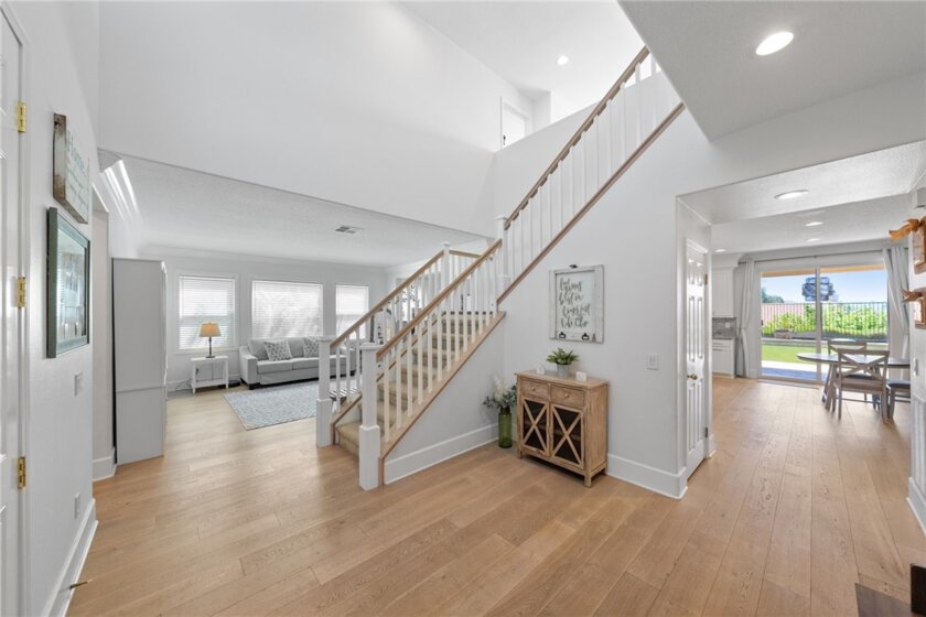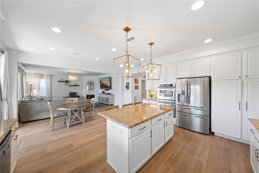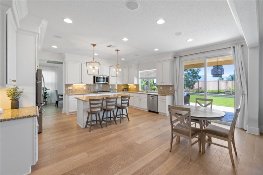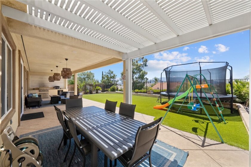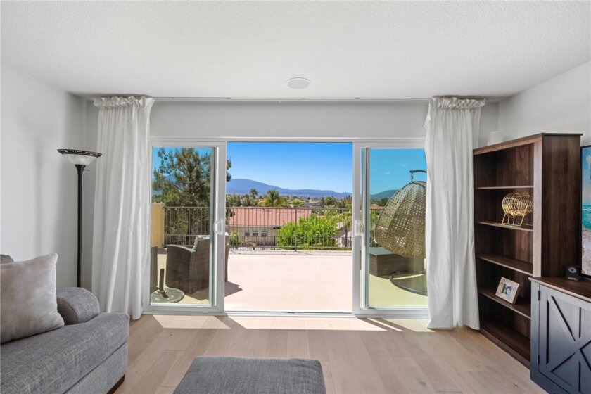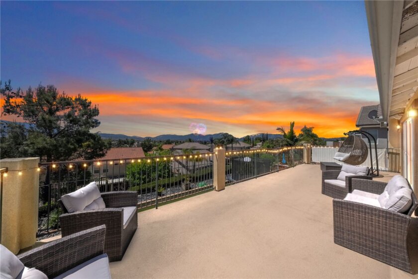 HUGE $50,000 PRICE IMPROVEMENT!! SELLERS ARE READY TO GET THIS HOME INTO ESCROW. Perched on an elevated cul-de-sac lot with breathtaking southern views of Temecula Valley, this stunning 5-bedroom, 3,200 sq ft home is the perfect blend of elegance, comfort, and thoughtful upgrades. With tremendous curb appeal thanks to its craftsman-style exterior, manicured front lawn, and charming double-door entry, this home makes a bold first impression. Inside, you're welcomed by soaring vaulted ceilings and an abundance of natural light that highlights the European white oak hardwood floors, 7" baseboards, 6" crown molding, and a grand open staircase. Just off the entry, a spacious downstairs guest bedroom and full bath provide a perfect setup for guests or multi-gen living. The chef’s kitchen features a large central island with granite countertops, stainless steel appliances, white cabinetry with satin brass hardware, and stylish pendant lighting. The kitchen seamlessly opens to the family room, complete with a corner gas fireplace and a clean, modern aesthetic. The formal living and dining rooms offer additional space to gather and entertain, with direct access to the backyard. Upstairs, a massive loft with double sliding glass doors opens to a sprawling rear deck with panoramic views of the valley. The primary suite also enjoys direct access to the deck and is appointed with a coffered ceiling and custom built-ins. Three additional bedrooms and a full bathroom round out the upper level. The backyard is an entertainer's dream featuring a newly installed turf lawn, a large covered patio, and a fully equipped outdoor kitchen with granite countertops, Built in BBQ, under-counter fridge, sink, and storage. There’s even ample room for your future dream pool. Additional highlights include a 4-car tandem garage, whole-house surround sound system with independent volume controls in every room and outdoor space, Smart irrigation, reverse osmosis water filtration system, tankless water heater, and a Nest smart home system with thermostats. And to top it all off there is a fully paid off solar system, offering immediate electricity savings. Located in the highly desirable community of Crowne Hill, just minutes from Wine Country, top-rated Temecula schools, Hospitals & Shopping. This is truly a one-of-a-kind home you won’t want to miss.