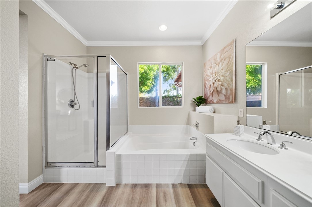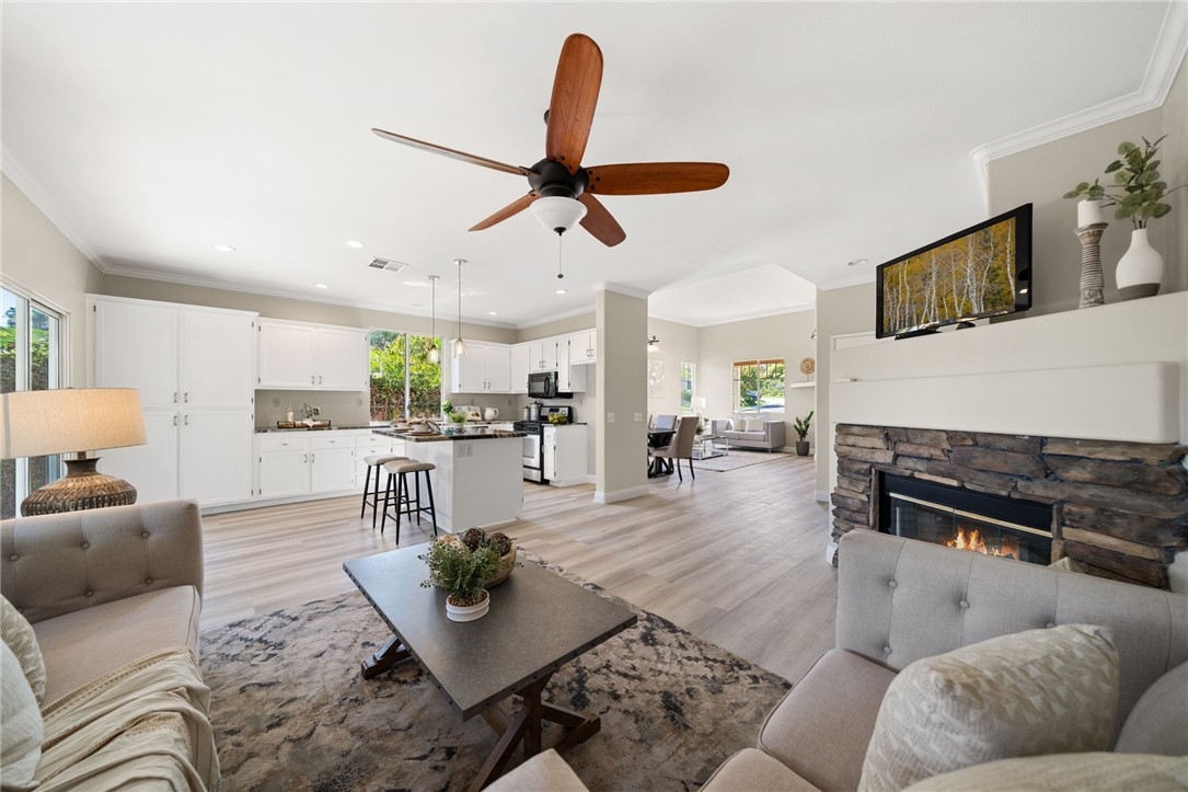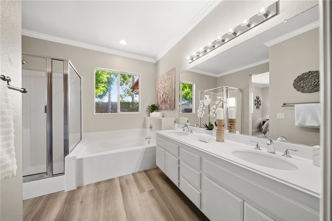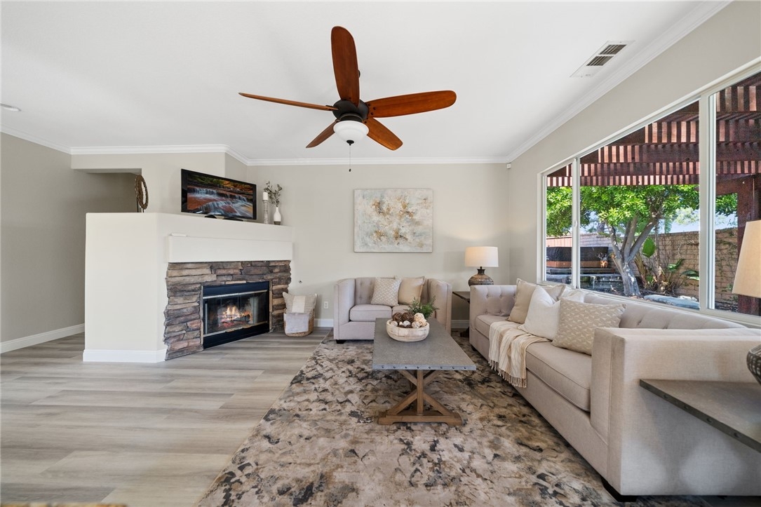 Nestled in the heart of Temecula's desirable neighborhoods, Crown Hill, this home is a stunning testament to modern family living. This beautifully appointed single story home offers a harmonious blend of comfort, style, and functionality, making it an ideal place to call home. Fresh neutral paint throughout, new LVP flooring throughout, new fixtures , 5 inch baseboards, crown-molding, recessed lighting, abundance of natural light, and so much more! Recently renovated, this home offers an open floor plan, with a formal living and dinning area. Freshly painted kitchen cabinets are beautifully accented by granite counter tops. The kitchen offers plenty of counter space, ample storage, and a kitchen island perfect for meal prep or a place to sit up and enjoy a meal. The family room is located directly off of the kitchen, and offers the perfect cozy atmosphere to watch television while sitting by the fire and sharing memories. Located on a large corner lot and on a cul-de-sac, this home offers plenty of privacy and adorable curb appeal. Sit in your spacious backyard under your covered patio and enjoy the sunrise, or relax in your outdoor jacuzzi while watching the sunset. The possibilities are endless. Bring your toys, or multiple cars, this home offers a spacious 3 car garage with plenty of storage. Conveniently located close to shopping, wineries, and award winning schools. Low taxes, fantastic location, this is a home you don't want to miss!
