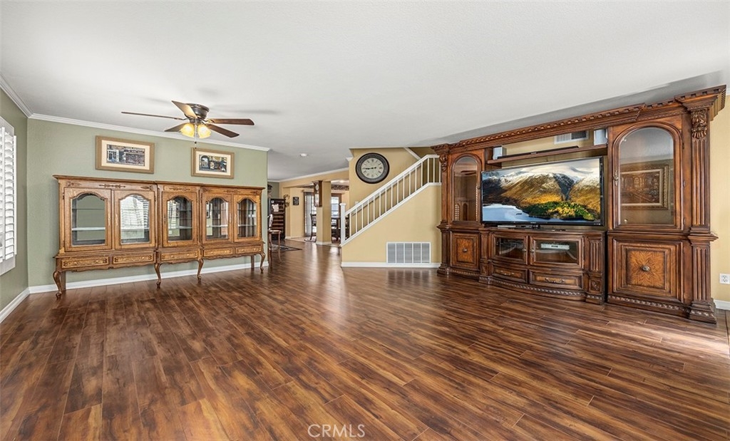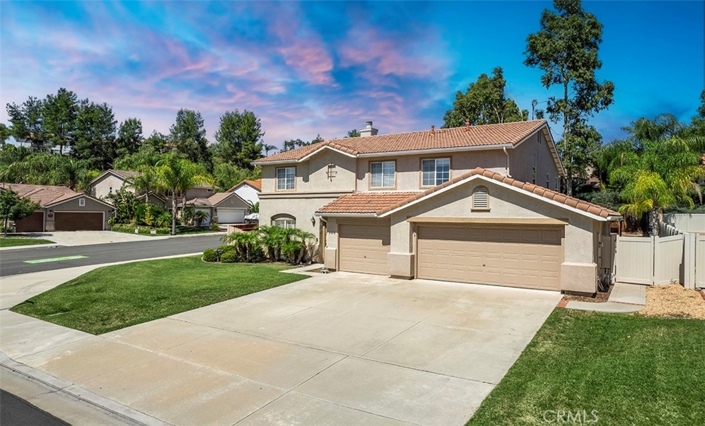 Welcome to this exquisite 4 bedroom, 2.5 bathroom gem nestled in the prestigious Crowne Hill community of Temecula, CA. With 2,800 square feet of living space on an expansive lot spanning over 9,000 square feet, this home offers a spacious and comfortable lifestyle for families of all sizes. Step inside to discover an inviting living environment filled with natural light and modern amenities. Downstairs you will find a living room as well as a formal dining room featuring a fireplace, laminate flooring and plantation shutters. The well-appointed kitchen features sleek corian countertops, stainless steel appliances, ample cabinetry, and a convenient kitchen island. The upper level hosts a serene master suite complete with an ensuite bathroom. Three additional bedrooms offer comfort and flexibility as well as a loft for additional living space. Positioned as a corner lot on a peaceful cul-de-sac, this residence exudes both privacy and community charm. Less than 10 minutes away, you'll find yourself in the renowned Temecula wine country, where you can savor world-class wineries and breathtaking vineyard landscapes. For families, Crowne Hill Elementary is a mere two blocks away, making school drop-offs and pick-ups a breeze. Come see all that Temecula has to offer!