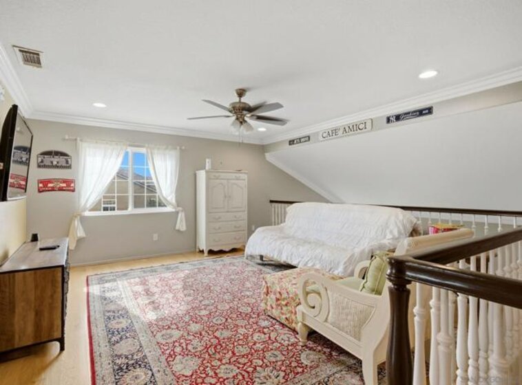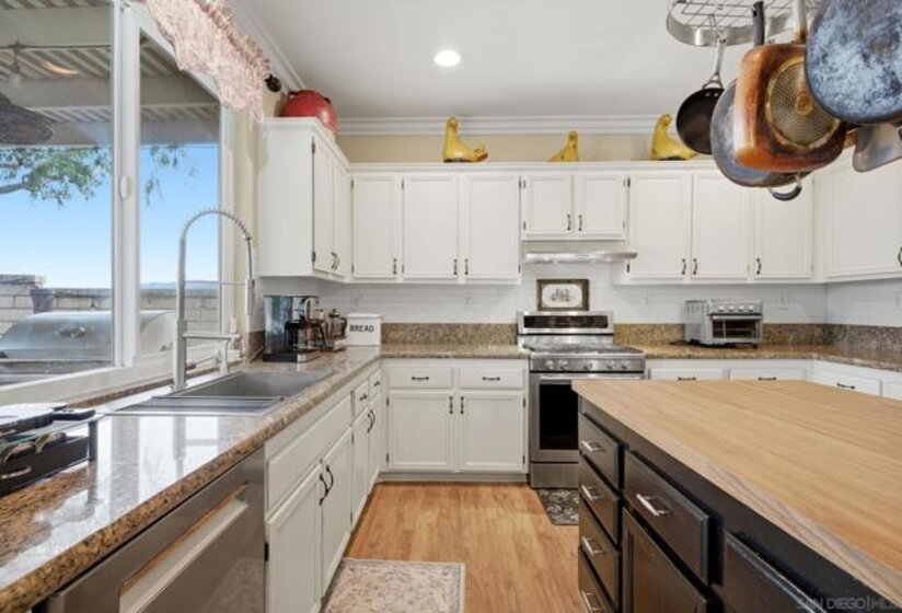 Situated on a premium corner lot with scenic views in the highly sought after Crowne Hill community of South Temecula, this move in ready five bedroom three bath home offers 3,395 square feet of beautifully upgraded living space designed to impress from the moment you arrive. Wood floors flow throughout the home, creating warmth and continuity, while natural light fills the open living and dining areas. The remodeled kitchen anchors the home with upgraded appliances, abundant cabinetry, and an oversized butcher block island that invites gatherings and everyday connection. Just off the main living space, the outdoor kitchen sits beneath a stunning Alumawood patio cover and overlooks the heated pool and spa, transforming the backyard into a true resort style oasis ideal for entertaining, relaxing, or watching the game. The first floor features a full bathroom and a dedicated office, perfect for working from home or creating a quiet retreat. Upstairs you will find oversized bedrooms, generous storage, and a spacious loft style bonus room ideal for a media room, playroom, or secondary living area. A fully paid twenty panel solar system adds exceptional energy efficiency. Located near award winning schools, shopping, dining, freeway access, Temecula wineries, and Pechanga Casino, this home delivers the lifestyle, layout, and upgrades buyers are searching for.