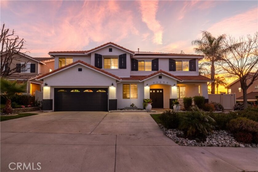 Well-executed and thoughtfully upgraded, this nearly 4,000 sq ft home in Crowne Hill includes paid solar—a meaningful advantage from day one—and is conveniently located in South Temecula. Inside, the home carries a custom feel with detailed wall treatments, millwork, and exposed beam ceilings that add depth and character beyond the typical. The layout offers a balance of defined spaces and open flow, including formal living and dining areas plus a separate office/den. The kitchen is designed for real use—featuring extensive white cabinetry, generous granite workspace, a functional center island with bar seating, upgraded appliances, and a double oven. It opens to the dining area and an oversized family room with fireplace and media niche, creating a natural hub for daily living and entertaining. A main-floor bedroom and full bath offer flexibility for guests or multi-generational living, along with a laundry room that includes added storage and a utility sink. Upstairs, you’ll find five additional bedrooms and a large bonus room behind double doors—well-suited for a media room, game room, or second living space. The primary suite is set apart with a private balcony and retreat area. The ensuite includes dual vanities, a soaking tub, separate shower, and a spacious walk-in closet. The backyard brings both function and setting with a built-in pool and spa (chlorine with optional salt conversion) and open views stretching toward Wine Country. Located near Crowne Hill Elementary, parks, shopping, and dining, this home offers scale, flexibility, and thoughtful upgrades in one of Temecula’s most established communities.