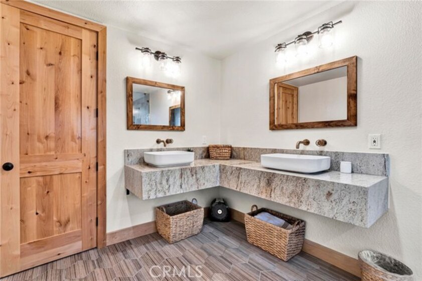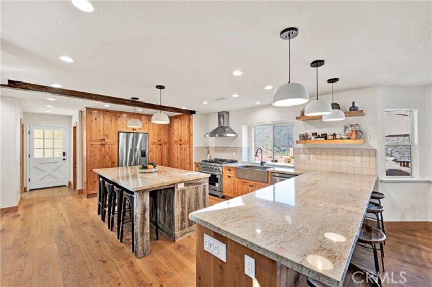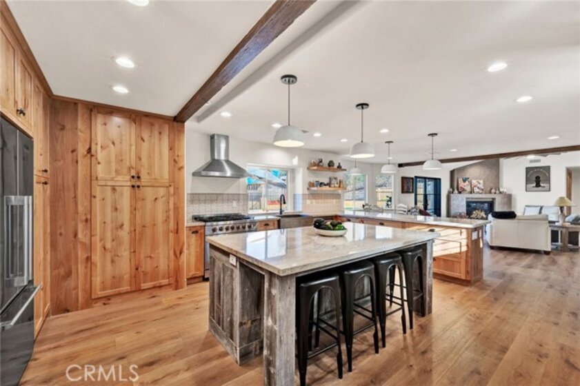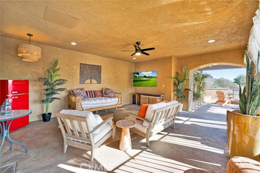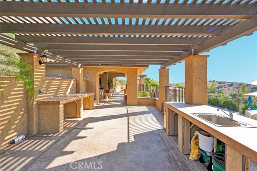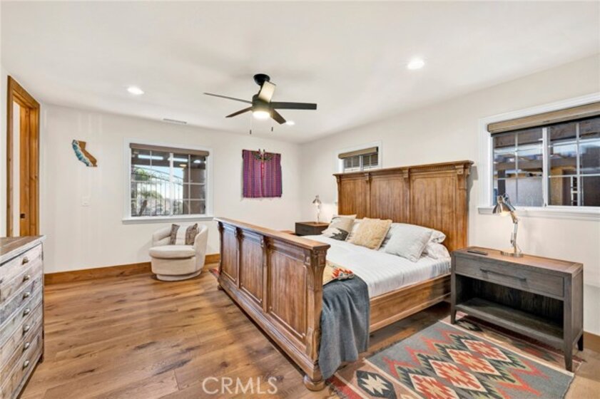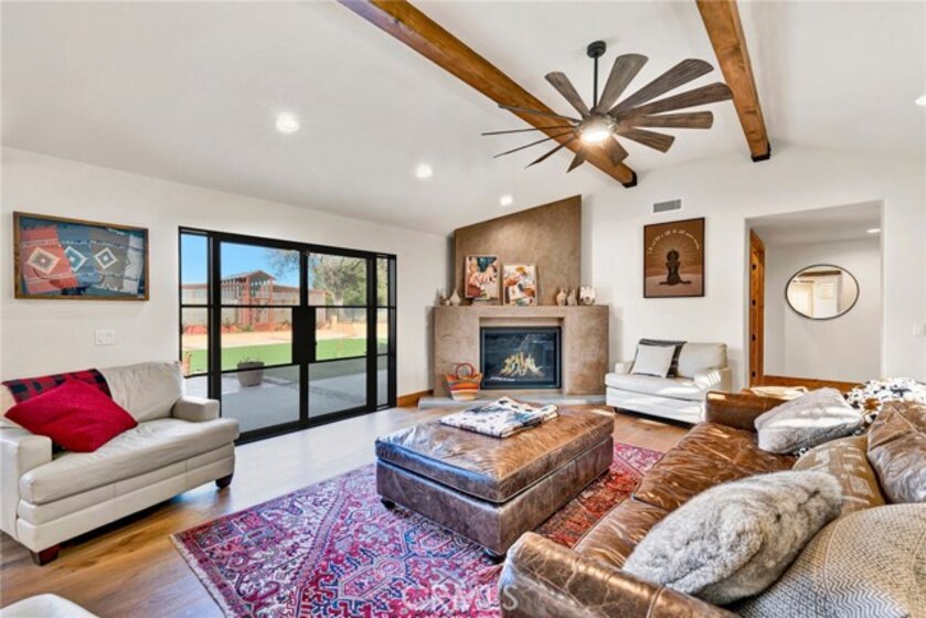 Welcome home to this stunning Mediterranean-inspired estate, set amidst the breathtaking views of Temecula Wine Country. Nestled on 8.63 peaceful acres of rolling land, this property offers the perfect balance of tranquility and luxury. The main home spans a generous 3,579 square feet and has recently undergone an extensive, high-end remodel. It features a beautifully appointed main-level primary suite, a junior suite, a guest bathroom, and a separate laundry room with ample storage. Upstairs, you’ll find an additional suite with two bedrooms, each with its own closet, and a shared full bathroom. The heart of the home is the chef’s kitchen, complete with top-of-the-line appliances, stunning "Knotty Alderwood" cabinetry, sleek granite countertops, and a cozy breakfast nook. The great room boasts a stately Venetian plaster-style fireplace, while the formal dining area offers the perfect setting for dinner parties. Step into the living room with a second fireplace, adding elegance to the living spaces. Throughout the home, you’ll enjoy beautiful engineered hardwood flooring, complemented by gorgeous tile and stone accents in the bathrooms. Multiple patios, including an expansive covered patio system, provide plenty of space for outdoor living. The outdoor cabana-style room with a mounted TV is perfect for entertaining, while the uncovered firepit patio overlooks your sparkling pool and spa—ideal for relaxing and unwinding. For extra versatility, an attached bonus room near the covered carport offers a great space for additional sleeping quarters, a gym, or a flexible room to suit your needs. The detached, two-story, 6-car garage is a true standout, featuring roll-up doors, a bonus/office space with a beautiful cabinet and sink, and an additional upstairs studio. The amazing backyard has panoramic views, multiple patios, planter boxes and pots around the backyard, along with a pickleball area and putting green. Additionally, there is a spacious chicken and small animal coop, plus 2 more small animal stalls on the lower level. With its stunning outdoor spaces, captivating views, and quality upgrades throughout, this property offers everything you could want in a home. There’s truly no place like it!