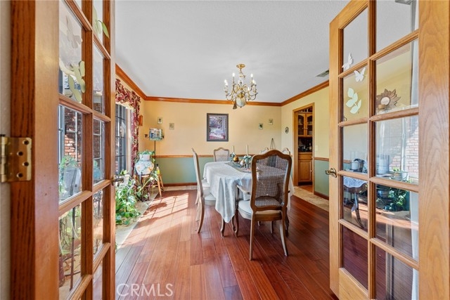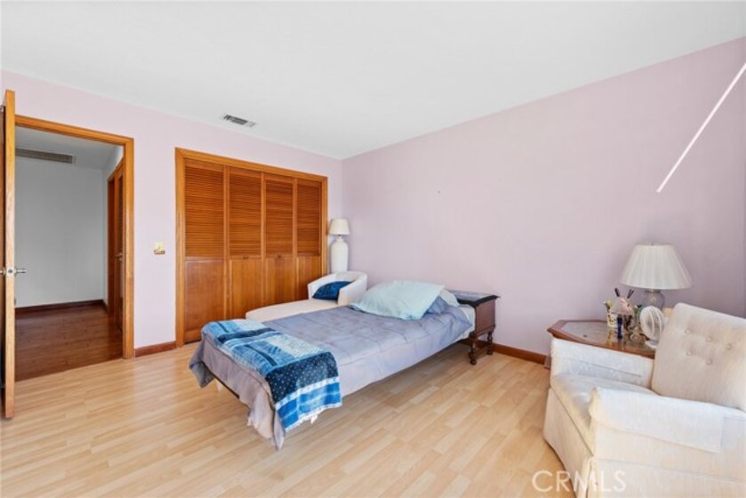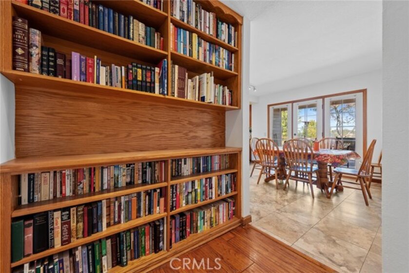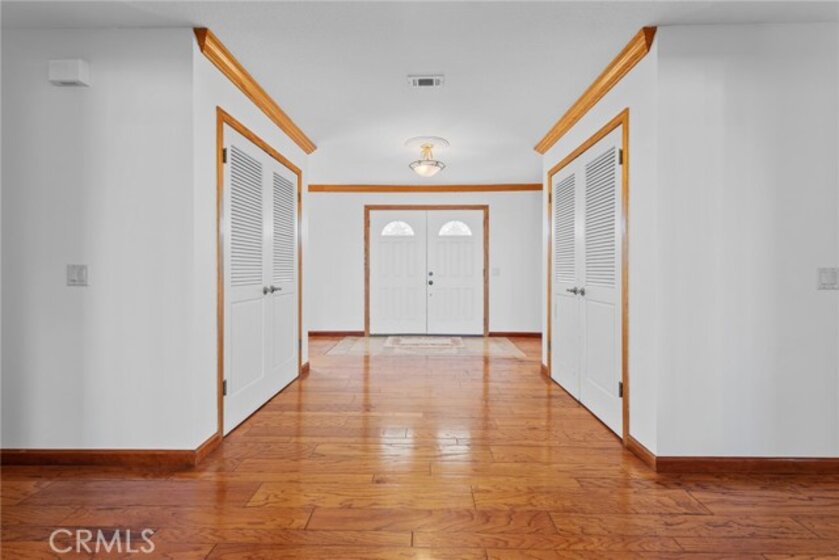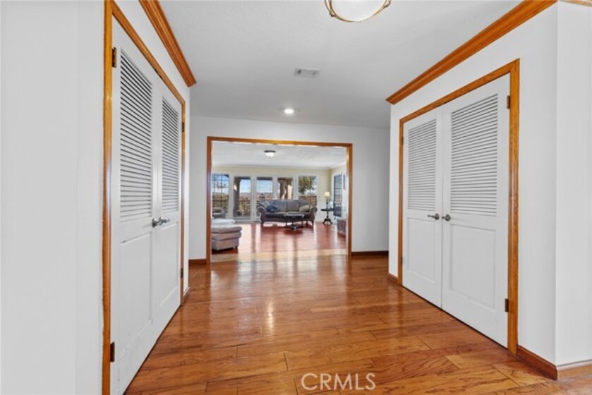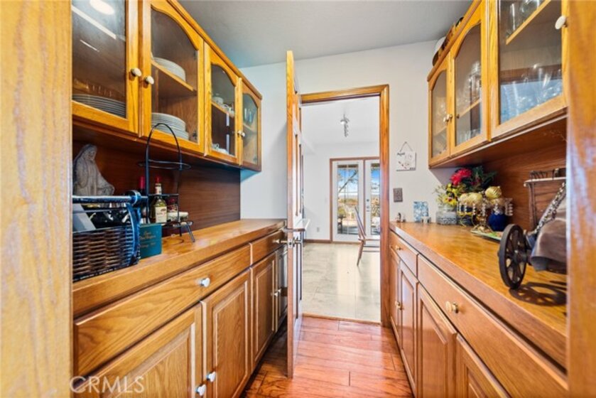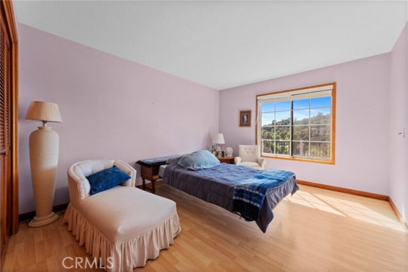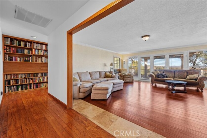 Nestled on a sprawling 5.15-acre lot in a desirable area of Temecula, this scenic single-story residence offers a tranquil, large-lot lifestyle with exceptional potential. The main level of the home provides a comfortable layout featuring 3 bedrooms and 2.5 bathrooms. The inviting, open-concept design flows through expansive living areas, including a formal dining room and a large family room. Elegant details abound, such as Brazilian Cherry engineered flooring, classic wainscoting, and French doors leading to the exterior. The large kitchen is the heart of the home, featuring oak wood cabinetry, travertine tile flooring, and a convenient butler’s pantry. The adjacent dedicated dining area is perfect for casual meals. Utility spaces include a spacious laundry room with a large porcelain sink, upper and lower cabinets, and matching travertine tile. The luxurious Primary Suite offers a walk-in closet, a dedicated fireplace, and an en-suite bathroom complete with double basins and a relaxing Jacuzzi tub. A unique opportunity exists in the upper level, which features two rooms and a loft—perfect for extra storage or flexible space. Outside, the backyard features extensive brick paving and a 7-foot Jacuzzi-brand hot tub, ideal for enjoying the quiet acreage.