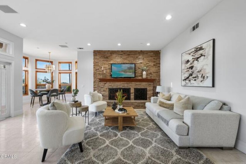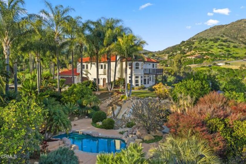 Nestled in the picturesque hills of De Luz, this stunning Mediterranean villa spans 9 acres of breathtaking landscape and offers the ultimate hilltop retreat. A private gated entry and charming circular driveway welcome you home, surrounded by lush, professionally designed grounds.De Luz is celebrated for its serene beauty & close-knit community, making it one of the most desirable areas in Temecula. Enjoy the tranquility of rural living while conveniently located near the vibrant charm of Old Town Temecula & the renowned Temecula wine country. Whether you're indulging in local wines or exploring quaint shops and eateries, everything you love is within close proximity. Inside, soaring ceilings and a beautifully tiled entryway bathed in natural light from elegant arched windows create a grand first impression. A unique sitting area with built-in bench seating and a statement chandelier provides a perfect place to unwind while gazing at the stunning property views. The formal living room features a cozy fireplace with ornate details and flows seamlessly into the distinctive dining that frames calm, scenic views with architectural windows.The spacious kitchen is a chef's dream, equipped with Viking and Wolfe appliances, onyx countertops, a center island with vegetable sink. It opens beautifully to the expansive family room with a stacked-stone fireplace and window-lined dining nook overlooking the lush backyard. A versatile downstairs office with French doors can easily function as a 5th bedroom, and the updated bathroom features a walk-in shower, new vanity, and modern finishes. A laundry room with utility sink adds convenience. Ascend the sweeping staircase to the luxurious primary suite and additional bedrooms. The oversized master retreat offers its own fireplace and sitting area, built-ins, and French doors opening to a private veranda with serene views. The spa-inspired bathroom includes dual sinks, soaking tub with sweeping view, separate shower, and walk-in closet. Three additional bedrooms and a guest bath with quartz countertops complete the upper level. Outside, enjoy a resort-style pool and spa area, mature trees, garden beds, a built-in gas fire pit, perfect for entertaining family and friends. With a three-car garage and paid solar, this home is functional as it is beautiful. This Mediterranean villa is more than a residence - it's a lifestyle, offering privacy, beauty, and the best of California living.