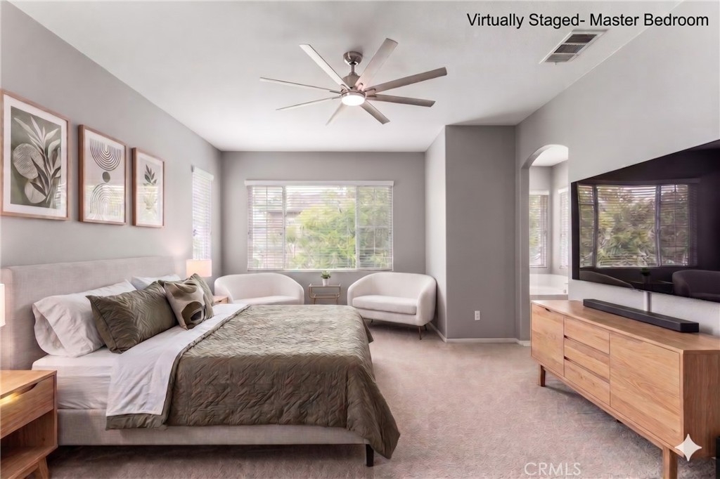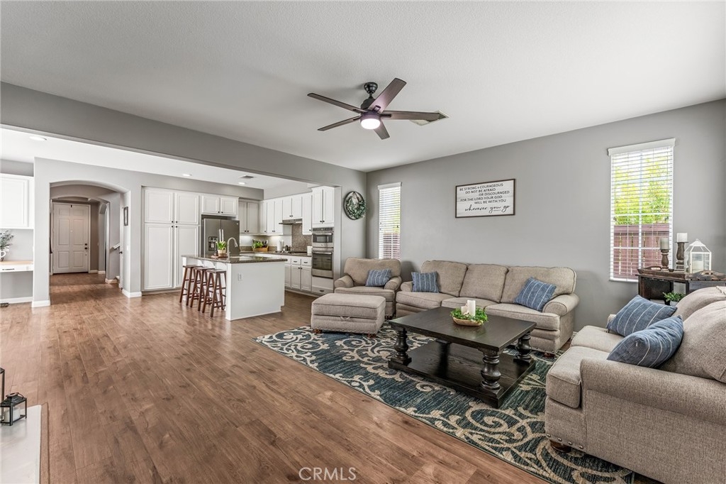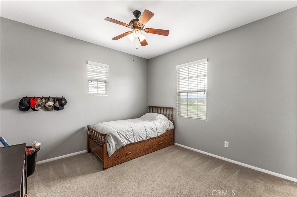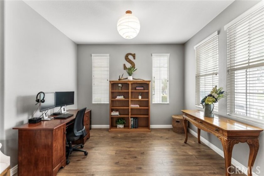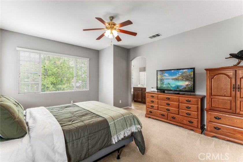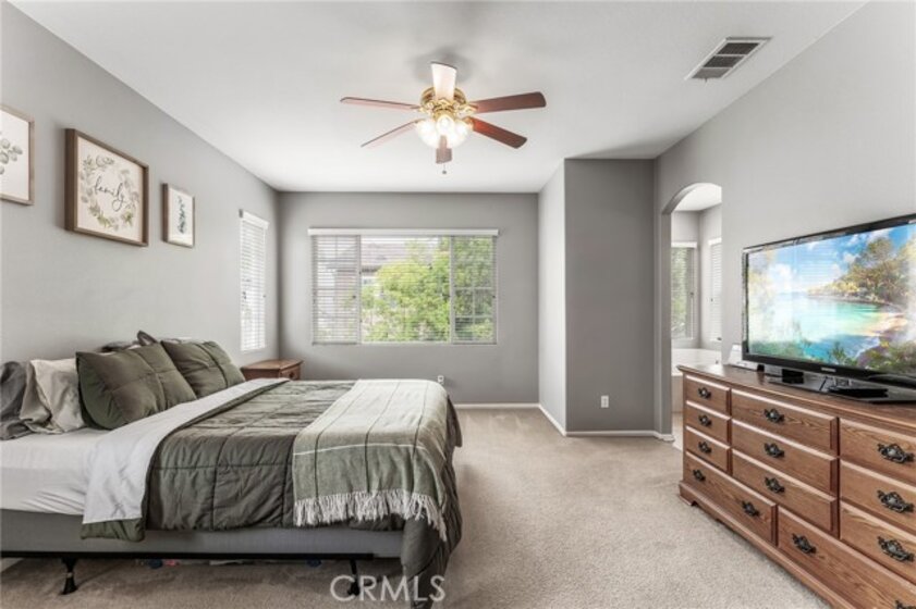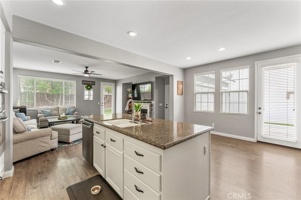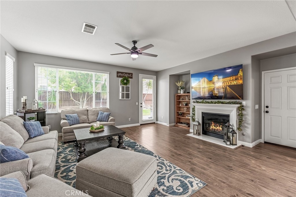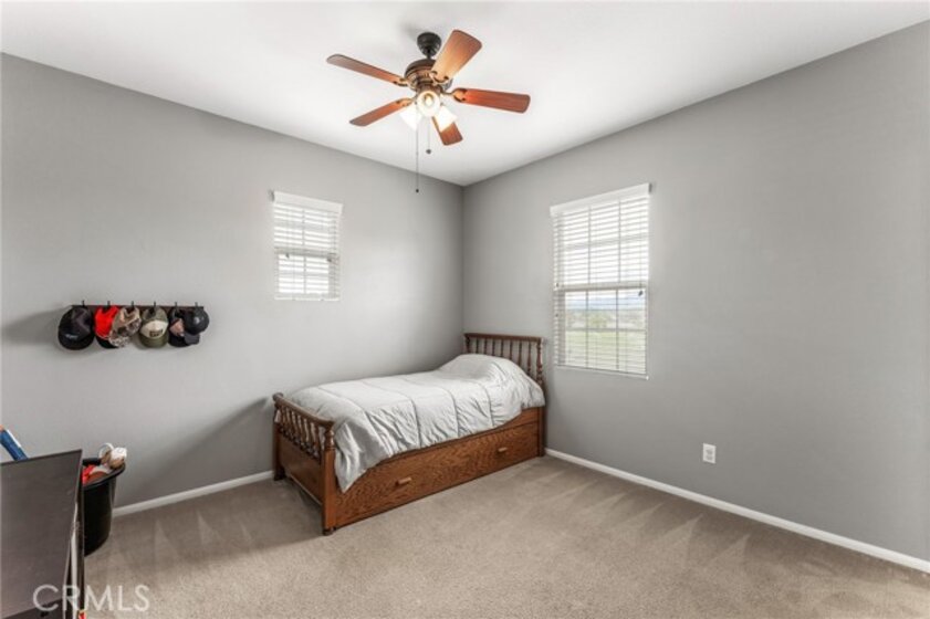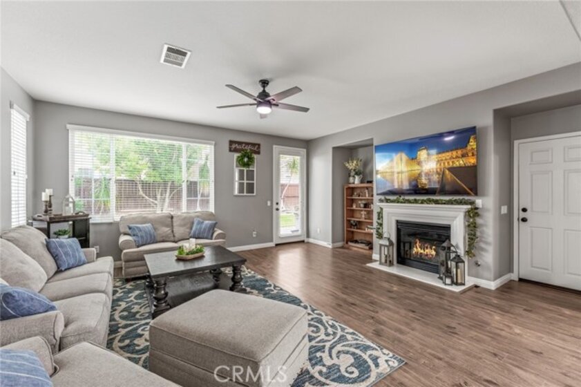 Turnkey 4-bedroom, 2.5-bath home in the welcoming Harveston Lake community of Temecula. This rare home faces the 19-acre Sports Park—one of only seven with this special view—perfect for enjoying sunrises and open green space. Tucked on a quiet cul-de-sac, it offers an extended driveway with extra parking. The bright entry leads to flexible front rooms, ideal for a home office, playroom, or family gathering space. The kitchen features a granite island and opens to a spacious family room with a cozy fireplace and ceiling fan—perfect for relaxing and making memories. Upstairs, all bedrooms and the laundry room add convenience. The primary suite includes dual sinks, a soaking tub, separate shower, and walk-in closet. A secondary bedroom also has a walk-in closet. Enjoy community amenities including walking trails, a 17-acre lake park, pool, splash park, and playgrounds. Close to schools, shopping, dining, and family-friendly activities. Virtual tour available.