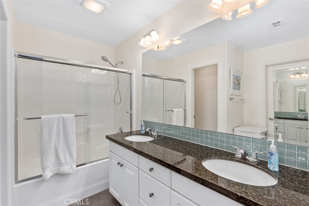 This lovely upgraded and turnkey home is located in the desirable Harveston Lake community. It has a flowing open floor plan with high ceilings and lots of natural light. It has two bedrooms both with en suite bathrooms, one on the main level and the other located on the lower level making it a separate private suite with its own entry french slider door opening into the courtyard, so is perfect for guests. Both bedrooms have a good size walk in closet. There is also a separate loft area that can be used as an office, exercise area or a second living area to sit and relax. One of the many upgrades includes the exquisite Asian Koa hardwood flooring in the main living area, dining area and kitchen. The kitchen features granite countertops with a custom tile backsplash, white cabinetry with custom glass front accents and stainless steel GE profile appliances including a separate gas cook top and refrigerator. Other upgrades include the granite countertops and custom tile flooring in both bathrooms, window shades, plus a sculpted carpet inlay in the main living area. Another great feature is that there is tons of storage cabinets throughout the home. The good size powder room is on the main level and has built in storage cabinets. The laundry room is on the lower level and also has lots of storage cabinets. There is a two car garage plus there are also guest parking spaces. The private courtyard has stamped concrete, a wrought iron entry gate plus landscaping and sprinkler system. It is a lovely area to sit and relax or BBQ. The home is located very close to both the community clubhouse and pool and the beautiful Harveston lake where you can walk around. The HOA plan activities throughout the year for residents to enjoy. Enjoy all the amenities that Harveston has to offer including a Jr. Olympic Pool, Spa, and Children''s Splash Park. Harveston is also one of Temecula''s most conveniently located neighborhoods, close to shops, schools and restaurants, plus a short drive to Temecula Old Town and Wine County. Harveston, a great place to call home!