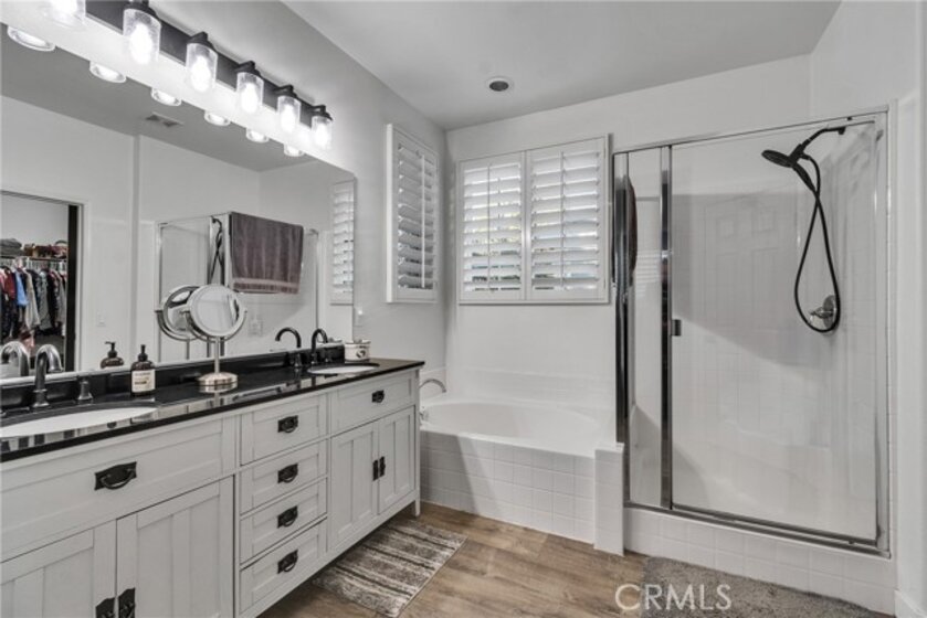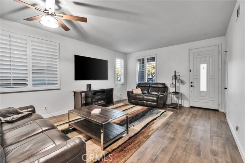 This lovely turnkey fully upgraded 3-bedroom, 3 baths with 2037 sq ft offers a good size loft/bonus room, which is perfect for an office, gym or media room or can easily be a 4th bedroom located in the very desirable Harveston Lake community. It has a formal living room and dining area plus a family room with built-in media cabinet and fireplace off the kitchen which is currently just used as a dining room. Beautiful new luxury vinyl flooring throughout, neutral designer paint and plantation shutters. Custom designed kitchen has granite countertops, updated backsplash, Whirlpool stainless steel appliances including a dishwasher, microwave, a farmhouse sink with upgraded faucets, and a teardrop sink light. There is an abundance of cabinets and storage space. Custom designed powder room includes a new vanity, new mirror and new updated light fixture. Master/primary bedroom suite has its own private balcony to relax on and a large walk-in closet with a custom shoe cabinet. Master/primary bathroom has a large walk-in shower, separate soaking tub, new custom vanity with double sinks, new faucets and new light fixtures. Both additional bedrooms two and three are spacious shown with queen size beds and have nice size walk in closets. The guest or hall bathroom has also been remodeled with upgraded dual sink countertop, new faucets and light fixture. Additional upgrades include ceiling fans and LED lights throughout the home. Quiet garage door opener has been added and the whole exterior has been painted. Backyard is private with no neighbor behind you, nicely landscaped and surrounded by trees with covered patio and cement walkways for minimal care. PAID OFF SOLAR is transferrable and means less cost for all things electric. The amazing Harveston community has a 17-acre lake for all to enjoy with lighted walking paths, gorgeous green belt and park areas, an Olympic size swimming pool/spa and community clubhouse where there are so many planned activities throughout the year for ALL ages you won't want to miss. Conveniently located close to schools, shops and freeways. A great place to call home for all stages of life! Note that Buyer pays for one time Harveston enhancement transfer fee which is 1/4 of 1% of the agreed sales price.