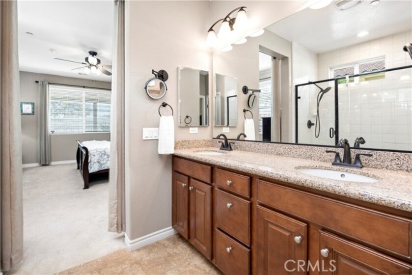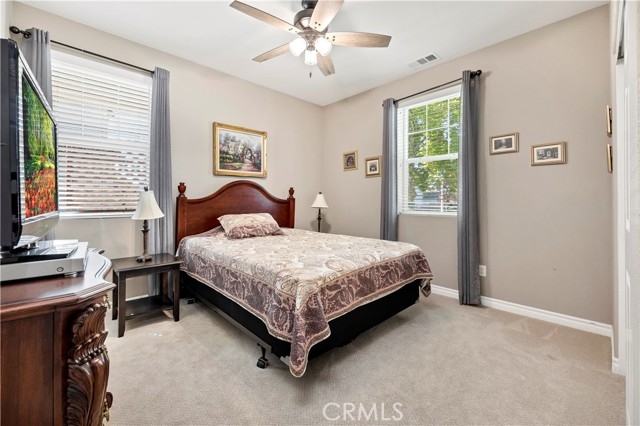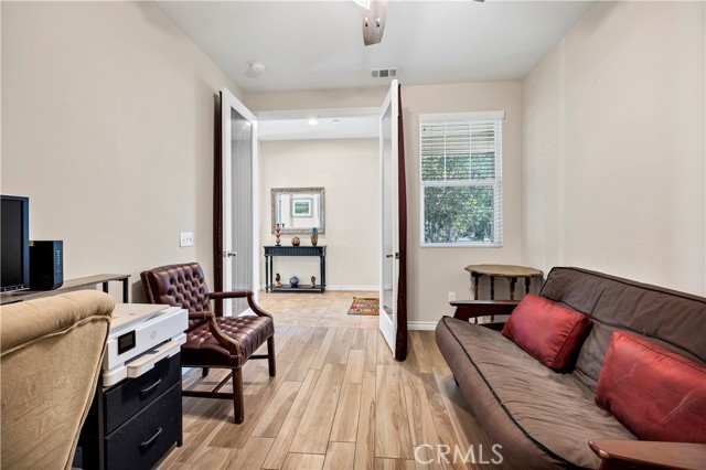 Gorgeous Single-Story Home with Solar in the Sought-After Community of Harveston! This beautiful 3-bedroom, 2.5-bath home plus office offers an open and inviting floor plan designed for both comfort and entertaining. The office, complete with French doors, can easily serve as a 4th bedroom. The large gourmet kitchen features granite countertops, stainless steel appliances, soft-closing drawers, pendant lighting, a spacious walk-in pantry, and ample cabinet space. The kitchen opens seamlessly to the family room with a built-in entertainment center and surround sound. Upgrades include ceramic tile flooring, wood-look tile in the office, and plush carpet in the bedrooms. Enjoy the convenience of indoor laundry, a whole-house central vacuum system, and granite countertops in all bathrooms. The primary suite features an upgraded shower with a sitting bench and an added linen closet for extra storage. Step outside to your private backyard retreat with no rear neighbors—complete with an extended Alumawood patio cover with fan, a cozy fire pit, stamped concrete, fruit trees, and a relaxing Jacuzzi. The 2 car garage offers rafters for additional storage and a utility sink. Harveston is one of Temecula's most desirable communities, favored by so many for the amenities, olympic sized community pool and splash pad, sports parks, easy commuting, shopping, Ysabel Barnett Elementary and Chaparral High School, and of course the LAKE activities! Close to wine country, Promenade Mall, Old Town Temecula, and the 15 Freeway, come and see why Harveston is at the top of the list for buyers looking for communities to live in Temecula!