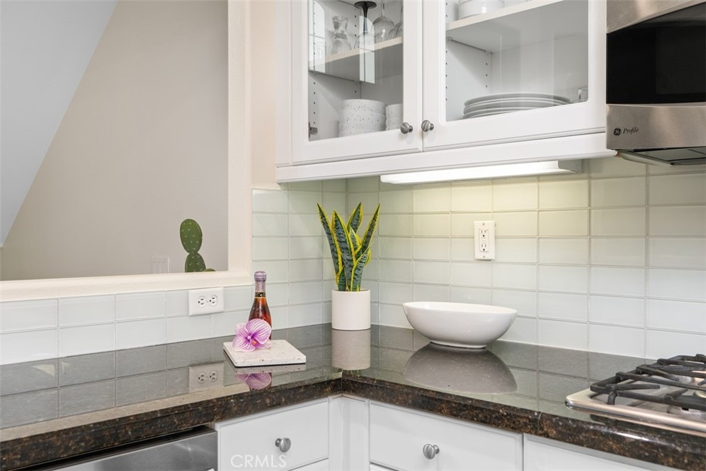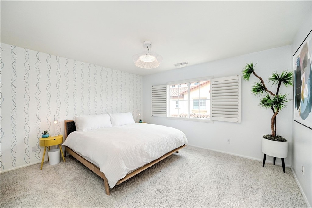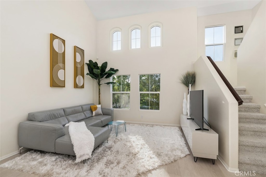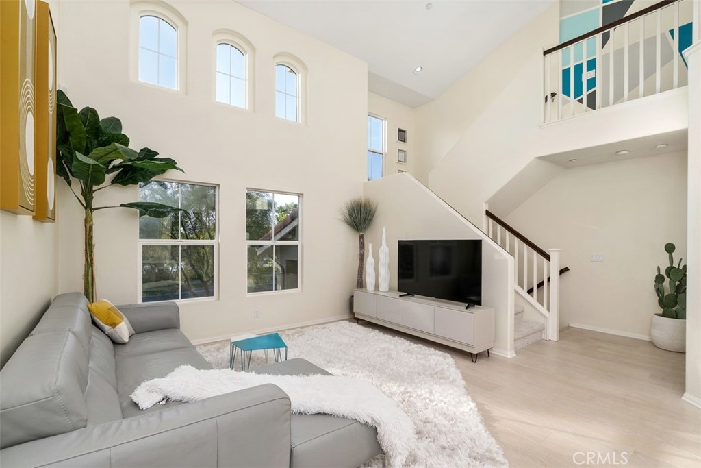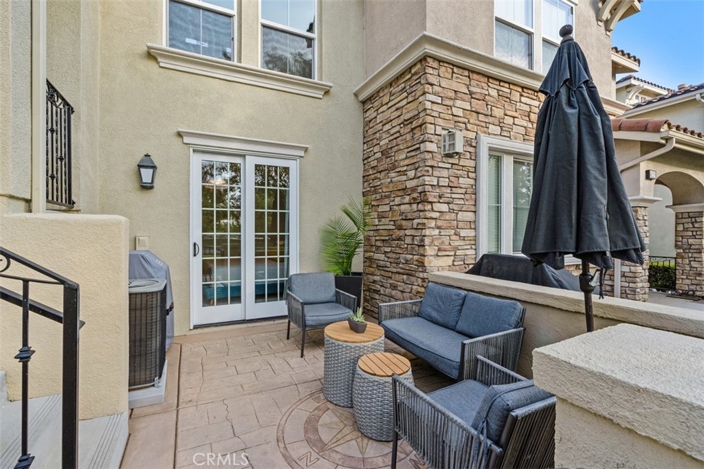 This stunning and fully remodeled condo with a beautiful lake view is located in the highly desirable Harveston lake community. Designed by an Award winning Interior Designer, reflecting the exquisite style and finest quality of the $90K in upgrades throughout this lovely home. It has a flowing open floor plan with 18' ceilings and lots of natural light. It has dual master bedrooms, both with ensuite bathrooms, one on the main level and the other located on the lower level making it a separate private suite perfect for guests with its own entry French slider door opening into a cozy gated courtyard. Both bedrooms have a good size walk-in closet.There is also a separate loft flex area that can be used as an office,exercise area or a second living space to sit and relax. Numerous upgrades throughout including; beautiful authentic European white oak hardwood flooring and newer plush shag carpet throughout the home including a inlayed white shag area rug in the family room. The whole home has been freshly painted throughout, complimented with a stunning mural on the loft wall. The kitchen boasts white cabinetry with custom glass front accents and black granite countertops with gorgeous glass tile backsplash.Stainless steel appliances including gas cooktop, a newer dishwasher and upgraded white glass refrigerator.Other upgrades include the granite countertops in both bathrooms, new tile flooring in all bathrooms and laundry room, new faucets and Kohler toilets upstairs,new modern tub with modern tub with upgraded tile enclosure upstairs, new shower systems plus upgraded designer light fixtures. The list goes on including a new instant hot water delivery system,new garage door opener, painted interior garage and upgraded lighting, ring security system and doorbell. Another great feature is that there is tons of storage cabinets. The good size powder room is on the main level and has built in cabinets. The laundry room is on the lower level. There is a DOUBLE car garage, plus there are also also guest parking spaces. The private gated courtyard which has an amazing view of the Harveston lake has stamped concrete and is a lovely area to sit and relax and BBQ and enjoy your amazing rare view.The home is across the street from the beautiful community clubhouse, pool and spa and Harveston lake where you can enjoy walking around. The HOA plans activities throughout the year for residents to enjoy. Harveston is close to schools and shops. Furniture was included.