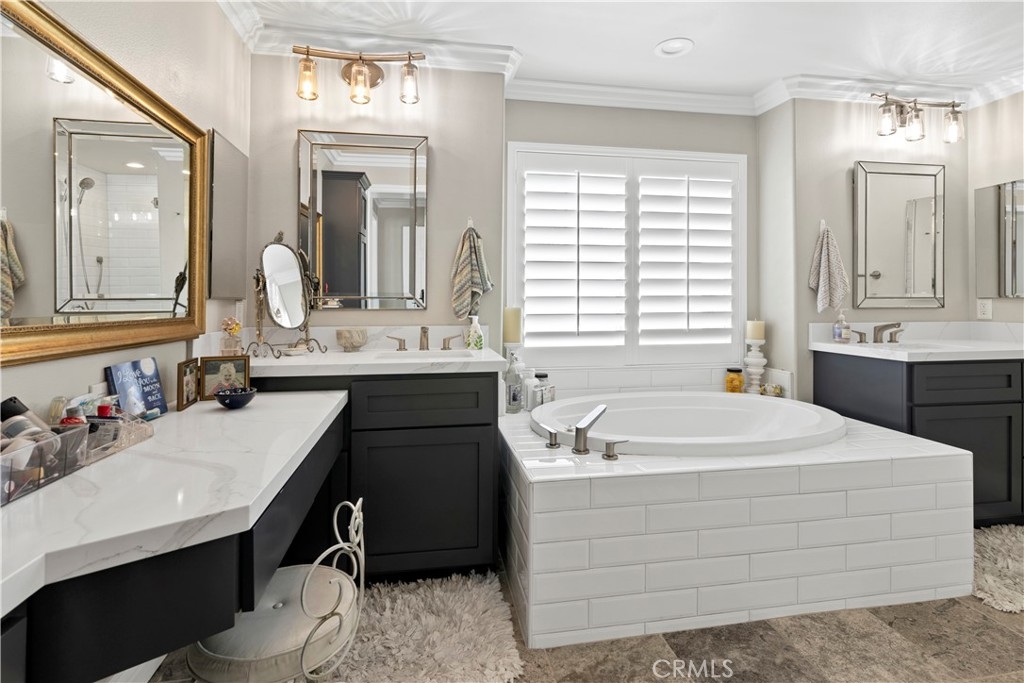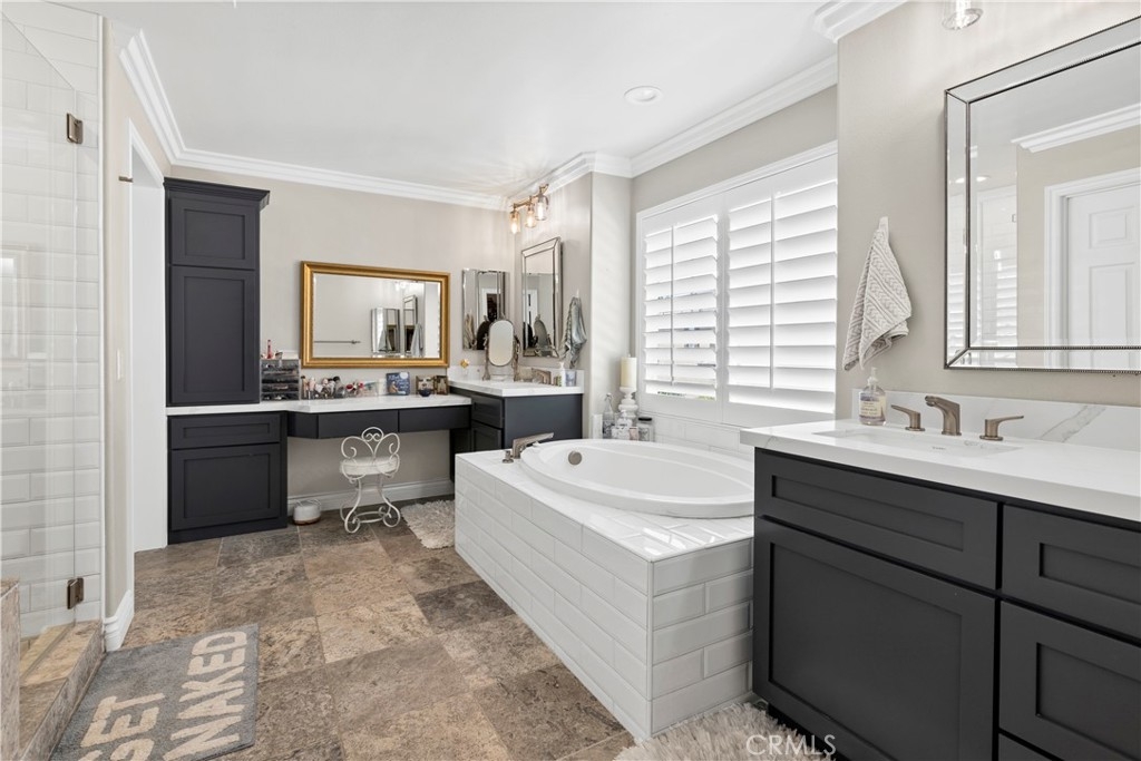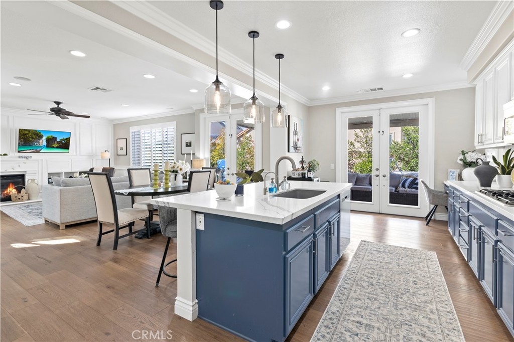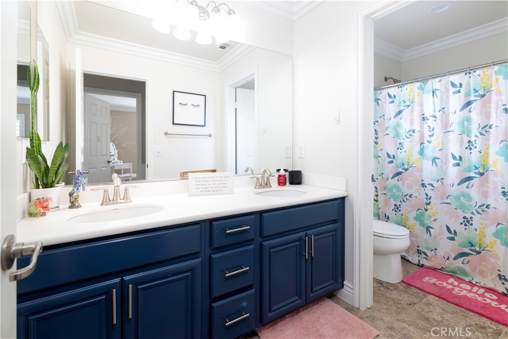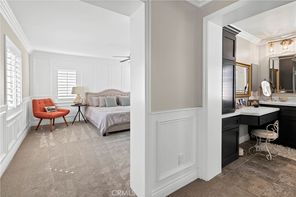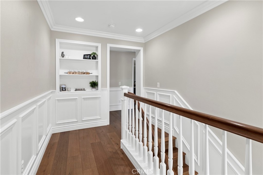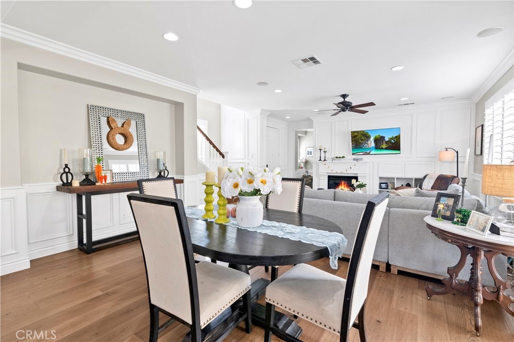Welcome to this stunning Harveston home with all the upgrades you could dream of! Salt Water Pool, Spa and PAID Solar. This 4 bedroom, 3 bath home features a main floor bedroom and bathroom, perfect for guests or multi-generational living. As you enter the home, you'll notice the beautiful wainscoting, custom door casing, and European Oak flooring throughout. The living room and downstairs bedroom boast custom built-in cabinets, while crown molding and plantation shutters add an elegant touch. The kitchen is a chef's dream with quartz countertops, marble backsplash, pendant lighting, and stainless steel appliances. The open concept living space includes a dining room and family room with fireplace, perfect for entertaining. Upstairs you'll find the primary suite with a completely remodeled bathroom featuring dual sinks, a walk-in shower, and a large soaking tub. Two additional bedrooms and a laundry room complete the upstairs living space. Custom French doors lead you outside to your own private paradise with a salt water pool and spa, covered patio with fans and TV, and a putting green on the side yard. The block wall and Carolina Cherry Trees add extra privacy. This home is zoned for award-winning Temecula schools and walking distance to Ysabel Barnett Elementary and Chaparral High School. Enjoy all the amenities Harveston has to offer, including a Jr. Olympic pool, spa, and children's splash park. Conveniently located near shopping, restaurants, Old Town, Wine Country, and the freeway, this home truly has it all. Don't miss your chance to own this beautiful Harveston property!