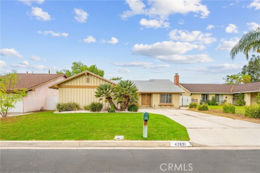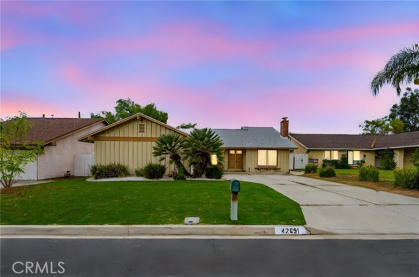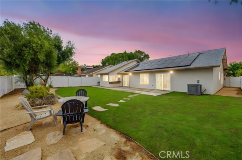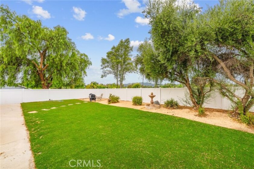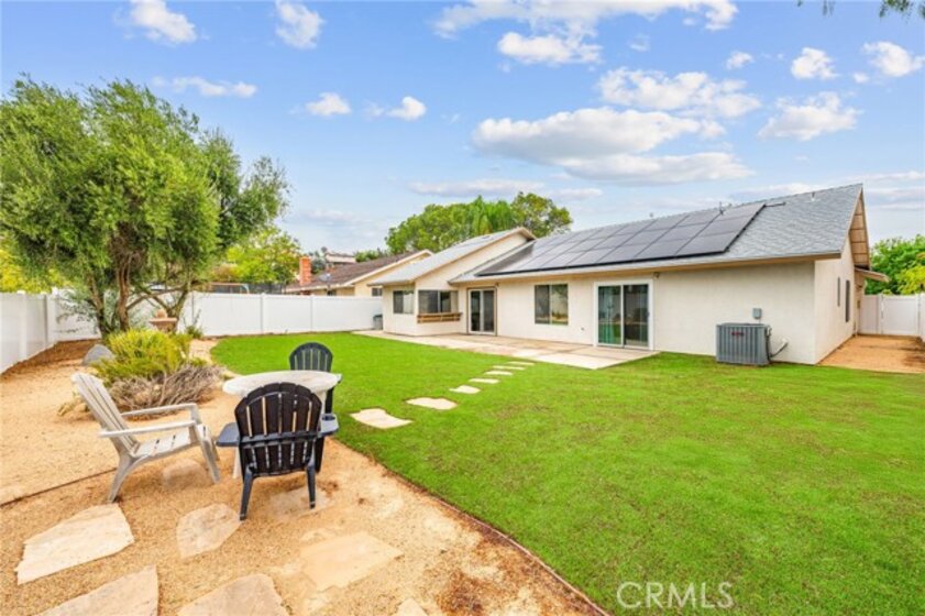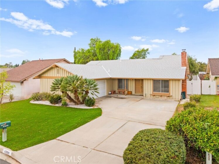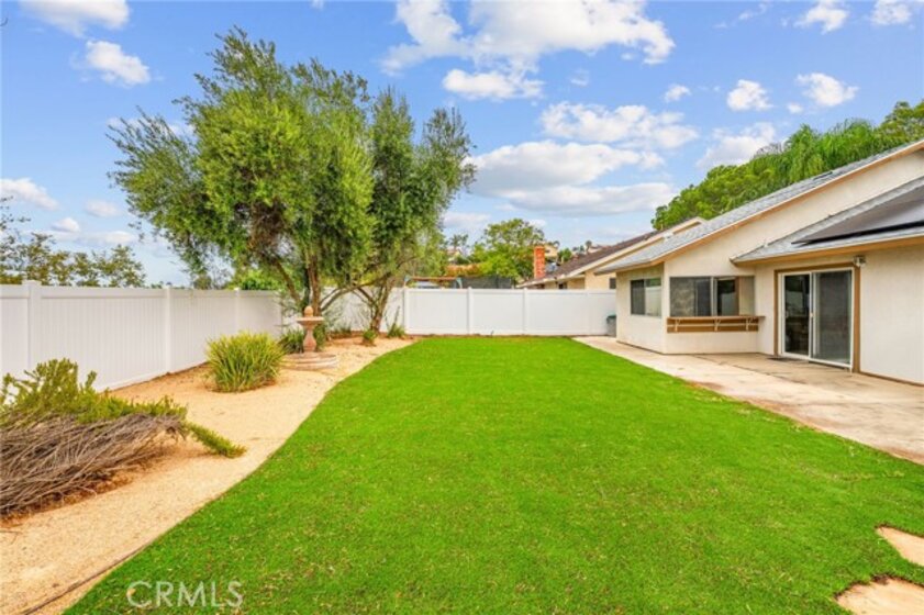 Welcome to this single-story home located in the desirable Lake Village community of Temecula. Tucked away on a quiet cul-de-sac, this 4-bedroom, 2-bathroom residence offers 1,645 sq. ft. of comfortable living space, perfect for those seeking simplicity, convenience, and charm. As you step inside, you're greeted by a spacious living room with vaulted ceilings and a cozy brick fireplace, creating a warm space for relaxing or entertaining. The adjacent dining area connects to a bright, airy kitchen, complete with Spanish tile flooring, a gas range, and tile countertops. Large windows flood the space with natural light, offer views of the backyard, and fill the common areas with sunshine throughout the day. The primary suite is generously sized with vaulted ceilings and its own sliding door that opens to the backyard. It includes an ensuite bathroom with a step-in shower and a walk-in closet. Three additional bedrooms offer flexibility for guests, a home office, or creative space, and the second full bathroom includes a convenient shower/tub combination. Set on a 7,400 sq. ft. lot, the backyard offers a concrete patio space, low-maintenance turf, and stone pavers perfect for outdoor gatherings or room for future customizations like a pool, garden, or play area. The recently replaced roof adds long-term value, durability, and peace of mind. Additional improvements include a tankless water heater, new vinyl fence, fresh sod, low-maintenance turf, and power purchase solar panels, enhancing both function and efficiency for day-to-day living. Lake Village residents enjoy access to fantastic community amenities, including a swimming pool, tennis and pickleball courts, basketball, fishing, lake boating, and hiking trails. This home is conveniently located within walking distance of Ronald Reagan Sports Park and close to local schools, shopping, and dining. With quick access to the 15 freeway, you're also just minutes from all that Temecula has to offer: charming wineries, historic Old Town, and vibrant year-round community events. This is a fantastic opportunity to own a charming home in a prime Temecula location with space to grow and enjoy the lifestyle the area is known for!