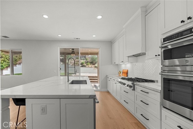 Spacious South Temecula Updated Home with Private Casita/ADU and Mountain Views! This stunning 6 bedroom 4 bath residence features 3,529 sqft of serene living space, maximizing comfort and style. Situated on a generous 8,276 sqft lot, the property offers an exceptional blend of elegance and versatility. Located in the quiet, peaceful neighborhood of Morgan Heights with no neighbors behind, enjoy breathtaking mountain and walnut orchard views while being just minutes from wineries, top-rated schools, dining, and shopping. The remodeled main kitchen shines with modern finishes including quartz countertops, expansive island with bar stool seating, and stainless appliances. More updates include hardwood flooring, custom staircase railings, new lighting, and custom stained glass windows. An attached private casita/ADU—complete with its own remodeled kitchen, laundry, walk-in closet, and large ensuite bathroom—offers endless possibilities for multigenerational living, premium guest accommodations, or rental income. The newly landscaped front and back yard features new turf, new drainage, custom BBQ area, olive, peach, avocado, and multiple citrus trees, plus garden beds for fresh herbs and vegetables. The oversized three-car garage boasts epoxy floors for a polished finish. This property is a rare combination of luxury, privacy, and natural beauty—perfect for those who value both serenity and convenience. The backyard is wired for a jacuzzi tub or swim spa. Located in the prestigious Great Oak High School District!