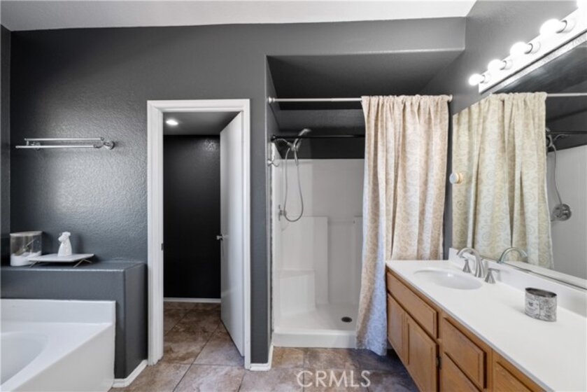 Welcome to this beautifully upgraded five-bedroom, three and half bath home offering 1,946 sq. ft. of living space and exceptional amenities throughout. Nestled in a desirable location with no neighbors behind, this property features a sparkling pool and spa, along with an outdoor kitchen and built-in barbecue, perfect for entertaining. The primary suite includes a private deck with stairs leading directly to the backyard oasis. Two bedrooms are conveniently located on the first floor, while the home also showcases updated bathrooms, fresh interior paint, and turf landscaping in the backyard for easy maintenance. The remodeled kitchen boasts granite countertops and newer stainless-steel appliances. Additional highlights include a three-car garage, potential gated boat/RV parking, solar panels with Tesla charging stations. Beat the power company's rate with the leased solar. Also included in sale are the mounted TVs, plus washer and dryer. Located near shopping, and restaurants this property is part of an HOA community offering multiple amenities, low taxes, and no Mello-Roos.