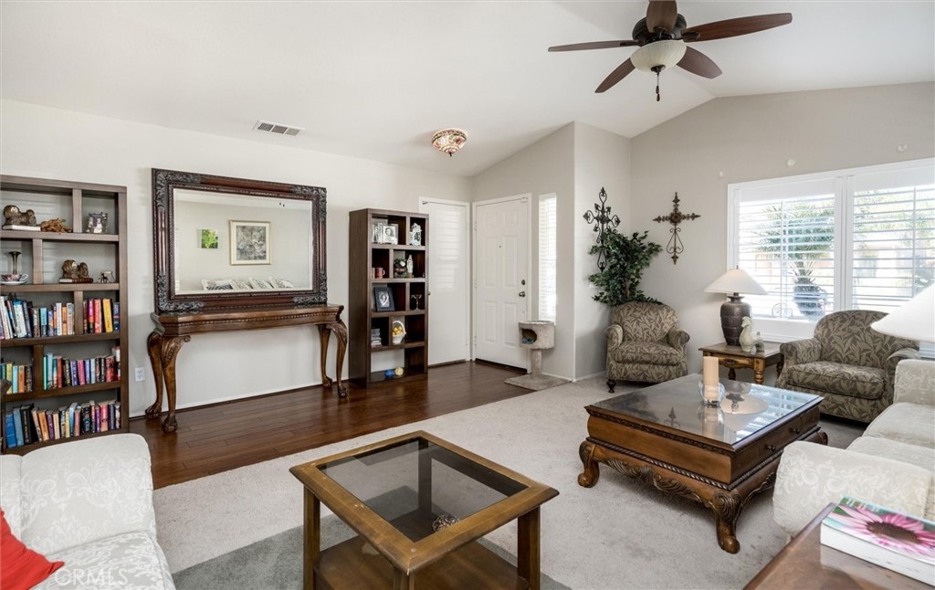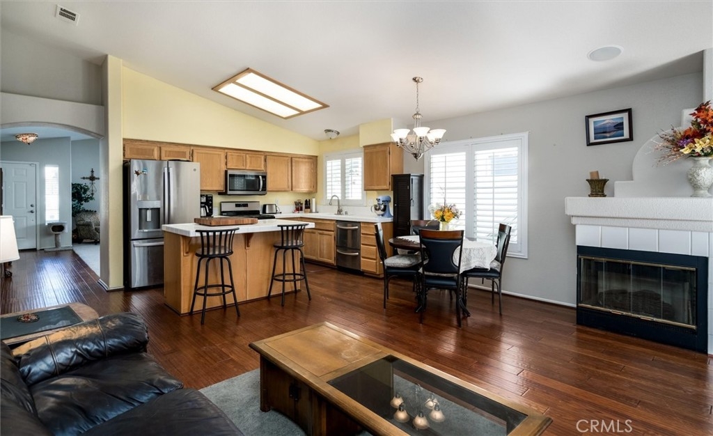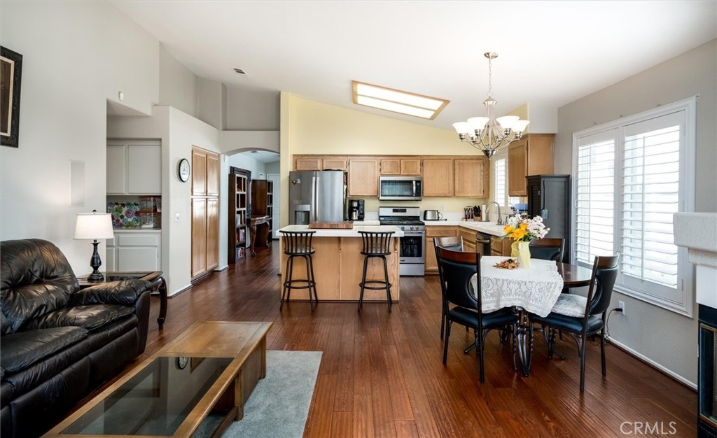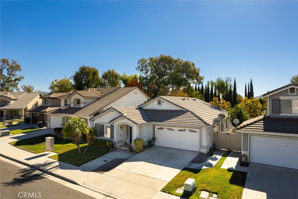 MASSIVE PRICE REDUCTION for a fast sale! Sellers have found their next home and want a fast offer! CHARMING 1 STORY VIEW HOME!! Welcome to desirable Paloma Del Sol! A well-established master planned community, well-located in the center of Temecula with 5 POOLS/SPAS, parks, bike paths and city amenities are so close!! This home is ready for the next family and offers so much - a wide open great room/kitchen/family room area, tall ceilings, large front living room. The kitchen has so much storage and a large kitchen island for prep space, storage and informal seating. You will love the double dishwasher! There is an eat-in dining area in the kitchen also. Neutral paint colors throughout, beautiful laminate floors in the great room and hallways. Fireplace in the family room for a cozy feel. Slider access to the back yard from the family room and primary bedroom. Plantation shutters throughout! The front door has a security door installed. The primary bedroom has TALL ceilings and the tub/shower has been removed to make way for an updated step in shower. Storage cabinets and work table was added to the garage. No neighbors directly behind! Backyard overlooks a green belt/walking path, which sits below the house. New vinyl fences on each side of the back yard and newer patio cover with gutter and downspouts. Enjoy the apple tree, grapefruit tree and all the roses in the garden! Outdoor BBQ, fire pit and the BBQ area has a built-in radio and also a new fridge! The garage workbenches and storage closets and also the outdoor umbrella can all stay with the home! Won't last long!! Great community, lots of amenities, LOW TAXES, NO MELLO ROOS! Hurry and schedule a showing before it's too late!!