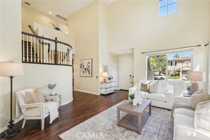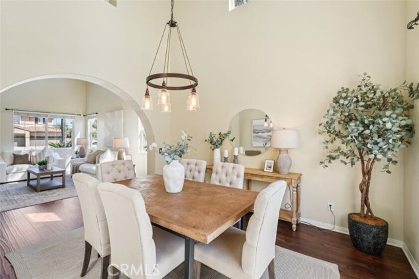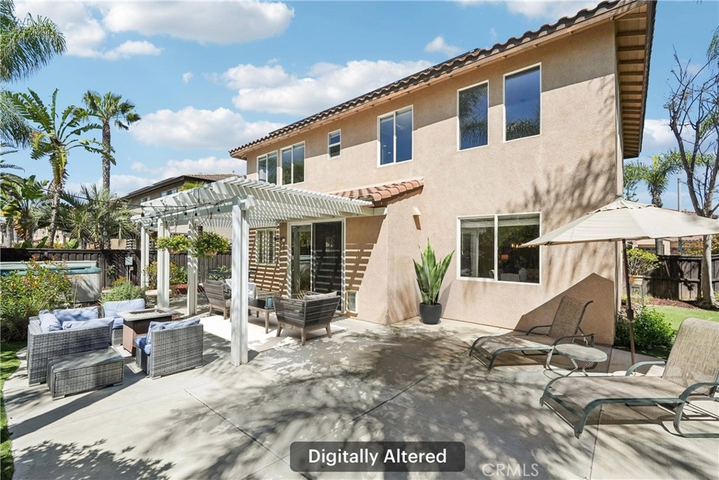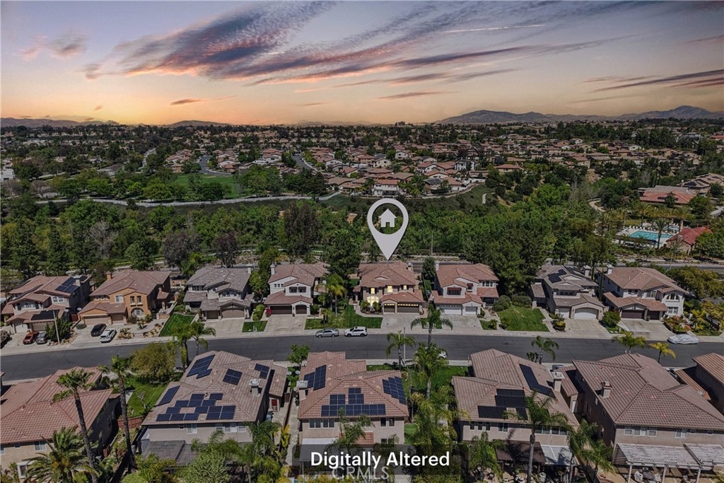 Welcome to this stunning two-story home located in the highly desirable Paseo del Sol community. Showcasing fantastic curb appeal, this home features an attached 3-car garage and leased solar panels for enhanced energy efficiency and long-term savings! Before stepping inside enjoy the front porch area great for relaxing. The spacious interior offers a thoughtfully designed floor plan highlighted by recessed lighting, a neutral paint scheme, and stylish laminate wood-look flooring throughout. The formal living room impresses with soaring two-story ceilings and an abundance of natural light, creating a bright and airy ambiance. Adjacent, the formal dining room is elevated by a modern industrial-style chandelier, this space is perfect for hosting! The open-concept great room seamlessly combines comfort and functionality, featuring a cozy fireplace in the family room, a charming breakfast nook, and a well-appointed kitchen that is equipped with granite countertops, a center island with breakfast bar seating, ample cabinet storage space, a pantry, and stainless steel appliances which include the refrigerator. Convenience meets flexibility with a main floor bedroom and full bathroom, ideal for guests or multi-generational living. There is also a dedicated laundry room. Upstairs, you’ll find a spacious bonus loft that can easily serve as a 5th bedroom, home office, or media room, along with three additional bedrooms including the large primary suite with private spa-like ensuite bathroom featuring dual sinks, a soaking tub, a separate shower, and a large walk-in closet. A full hall bathroom serves the secondary bedrooms. Also, step outside to enjoy your private backyard oasis, designed for both relaxation and entertaining with pergola to relax under, concrete hardscaping, turf accents, and a garden perimeter with mature plants. There is also large community, sparkling lap pool and kids pool directly across the street plus an included hot tub in the backyard! Also conveniently located near the gym, park, pond/trails, as well as a close proximity to schools including Temecula Middle School (0.2 miles away), Abby Reinke Elementary School, and Temecula High School, plus there are grocery stores (Barons 1.1 miles away and Sprouts 1.4 miles away). This exceptional home offers the perfect blend of comfort, style, and community living, schedule your private tour today!