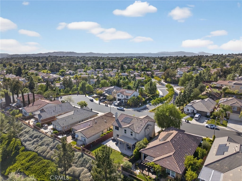 Enjoy incredible mountain and South Temecula views from this stunning four-bedroom, three-bathroom home in the highly desirable Paseo Del Sol community. Thoughtfully upgraded and meticulously maintained, this residence offers a perfect blend of comfort and style. This energy efficient home features an owned solar system, a tankless hot water heater, a Puragain whole-house water system, an Aluma-wood patio cover, and stamped concrete to optimize the outdoor living space on this pool-sized lot. The fully landscaped front and back yards are enhanced with custom exterior lighting and irrigation, providing year-round beauty and ease of maintenance. Inside, the kitchen features custom glass inset cabinets, granite countertops, and stainless-steel appliances. Neutral paint throughout the home creates a warm, inviting atmosphere, complemented by window blinds and elegant shutters that accentuate the view. This home is located on a cul-de-sac, has single-level homes at each side, and does not have a home immediately below it. Residents of Paseo Del Sol enjoy an exceptional lifestyle with access to scenic walking trails, multiple pools and spas, sports courts, and beautiful parks. This is a rare opportunity to own a view home in one of South Temecula’s most sought-after communities.