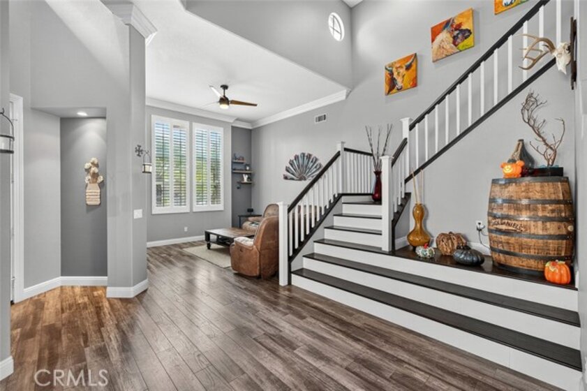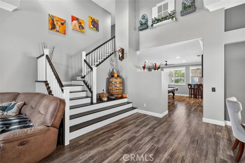 One of the more beautiful homes in Temecula, this 4-bedroom, 3-bathroom home has it all! Boasting fresh designer paint inside and out, this home absolutely "WOW'S" you upon entry with its high-soaring ceilings, new luxury vinyl plank flooring, a spacious living room, and a separate family room that opens to the kitchen, where you'll find new stainless steel appliances and a breakfast dining area. There is a separate large dining room for hosting gatherings, and a luxurious primary suite to retreat to and escape it all. Rarely improved this nicely, the 3-car garage is absolutely pristine, with a high-end custom floor finish, a new garage door, a built-in work bench, excellent lighting, and tons of storage space. The backyard is the perfect size for entertaining yet still low-maintenance, featuring a fire pit, a large covered patio for gathering, dining, BBQ'ing, or just relaxing in the hot tub while basking in the SoCal sunset and privacy provided by the lush tropical landscape and new vinyl fencing. Available as a complete turnkey package, many of the home furnishings are available for purchase separately. Ideally located close to Temecula’s best amenities, such as top-rated schools, parks, golf courses, wine country, shopping, dining, and more! As part of Paseo Del Sol, residents enjoy sprawling greenbelts, miles of walking paths, multiple swimming pools, tennis courts, basketball courts, and neighborhood parks. It’s a community designed for an active, convenient, and connected lifestyle. You won't want to miss this one!