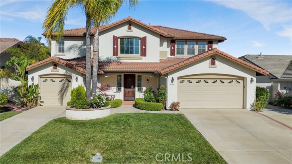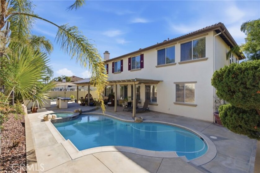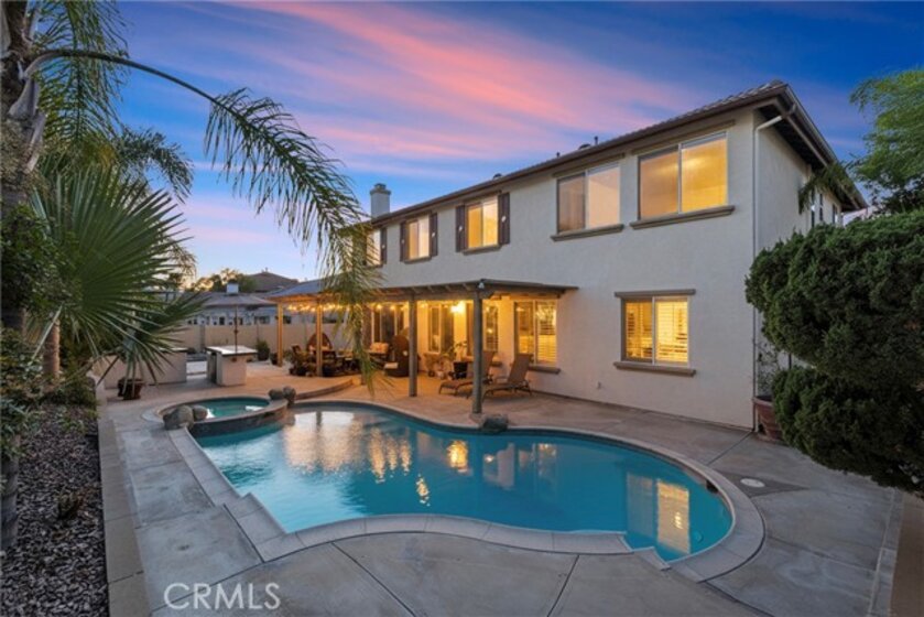 Paseo Del Sol POOL & SPA home with gorgeous curb appeal! This home welcomes you with a huge grand entrance with vaulted ceilings and a stunning medallion tile inlay. This 5-Bedroom, 3-Bathroom residence offer an exceptional blend of sophisticated and tranquil living. The expansive 3,432 sqft floor plan with grand formal spaces and a gourmet kitchen with granite countertops and new ovens that flows into the inviting family room with a cozy brick fireplace. A rare downstairs bedroom and full bathroom downstairs that is perfect for guests or an office. Thoughtfully designed floor plan with the primary suite privately situated on one side of the home, while three secondary bedrooms are located on the opposite wing - providing ideal separation and privacy for family or guests. The spacious primary features a private retreat just off the bedroom perfect for a cozy sitting area, home office, reading nook, nursery, or personal fitness space. This versatile bonus area offers the ideal place to unwind and enjoy a quiet escape within your own suite. This home also stands out for its high-value mechanical updates, including a newer water heater, a newer sprinkler controller and manifold for the lush grounds, and a newer pool pump to service the private backyard oasis. Step outside to find a paradise for entertaining, complete with a sparkling pool and heated spa, a built-in barbecue island, and a full patio cover. Additional highlights include ceiling fans throughout, a 3-car garage with dual driveways, and access to the highly desirable Paseo Del Sol community amenities including pools, spas, clubhouses, exercise rooms, sports courts, and parks. All of this in the heart of Temecula where you are just minutes from shopping, restaurants, award-winning schools, Wine Country, and much more! A home that is truly a must-see!