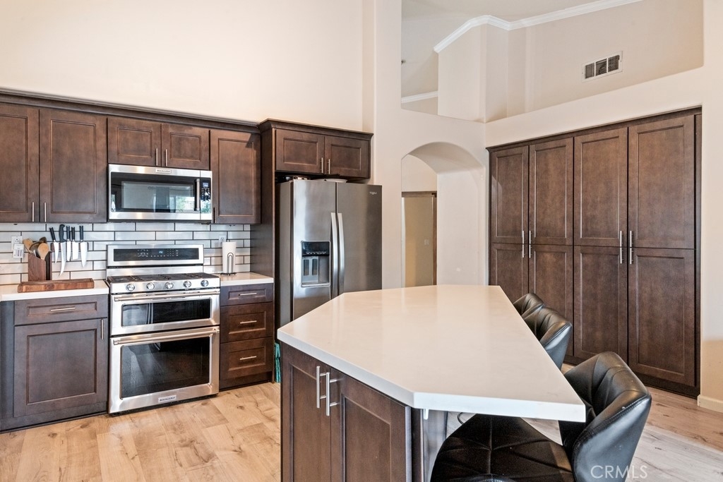 Cozy Single story home located in south Temecula. Upon entry, you're greeted by a formal living and dining room that flows seamlessly into the beautifully upgraded kitchen. An abundance of upgrades include luxury vinyl flooring in the main living areas and kitchen, a double freestanding stove and oven, and stainless steel appliances. The upgraded kitchen flows into a bright and airy family room, highlighted by a stunning stacked-stone fireplace that serves as a striking focal point. This home features 3 spacious bedrooms and 2 bathrooms with newer vanities and mirrors. Enjoy fantastic view from your private backyard with no rear neighbors. Low HOA and Low taxes!