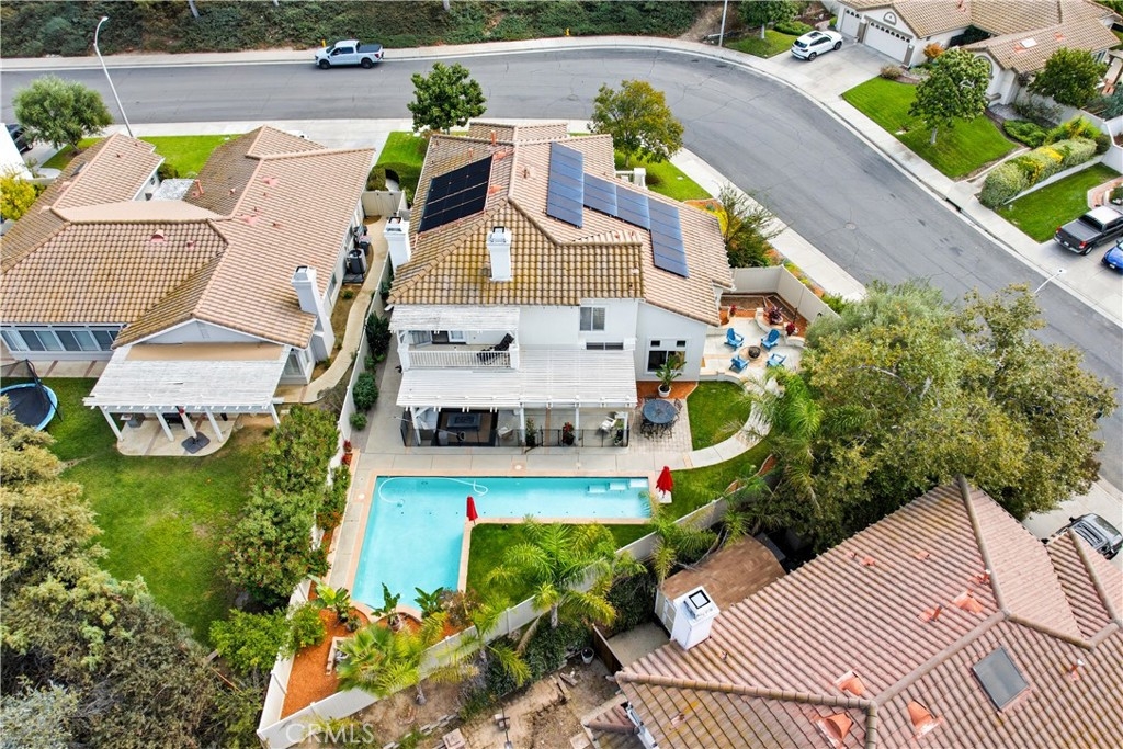 Beautifully remodeled 4 bedroom, 3 bathroom home with a pool, downstairs bedroom and full bathroom in the highly sought-after Redhawk community of South Temecula. The first floor includes a full bedroom and bathroom — ideal for guests or a private home office. Upstairs, the primary suite offers a cozy fireplace, deck with a view of the Temecula Valley and a spa-like bathroom retreat with walk in closet. Two additional bedrooms and a full bath provide plenty of flexibility. Set on a private corner lot, the backyard is an entertainer’s dream with a sparkling pool, covered patio, and ample room for outdoor dining and relaxation. Soaring ceilings, abundant natural light, and an open floor plan designed for both everyday living and entertaining. The remodeled kitchen includes stylish finishes and flows effortlessly into the spacious family room. Gorgeous wood floors add warmth and sophistication throughout the main living areas. Additional highlights include a 3-car garage, low HOA dues, and proximity to award-winning schools (including Great Oak High), shopping, dining, and Temecula Wine Country. This turnkey home is move-in ready and waiting for its next owner to enjoy the best of California living.