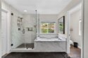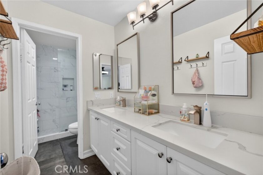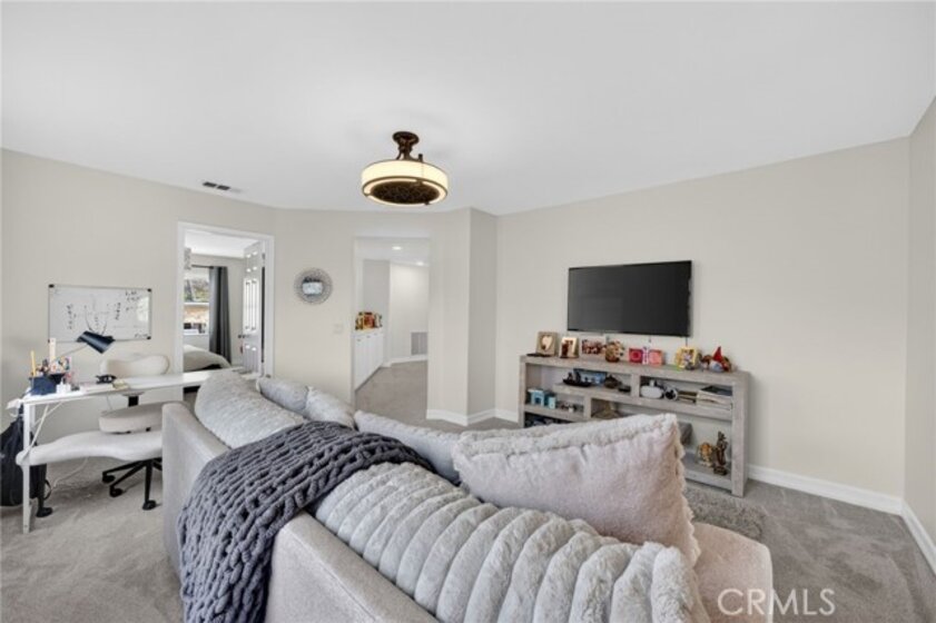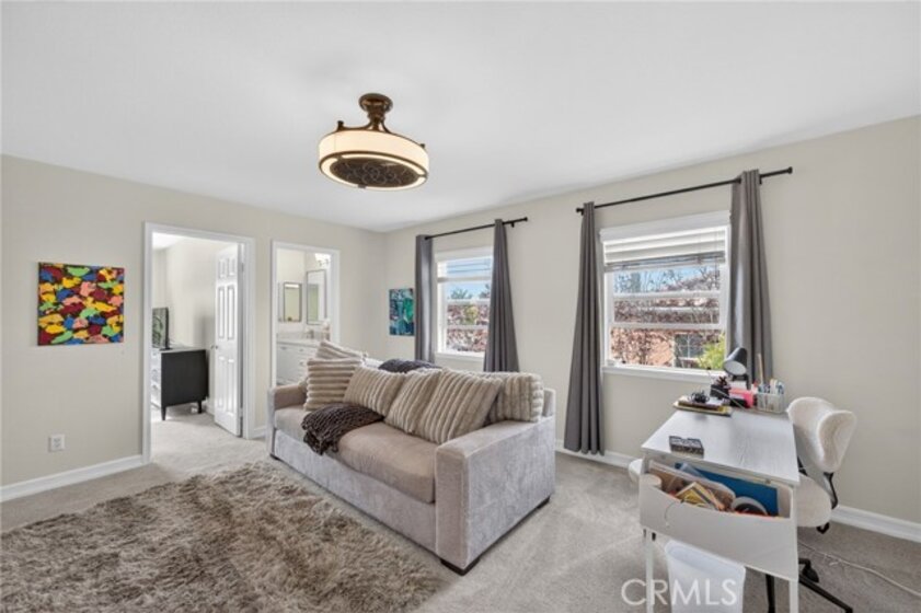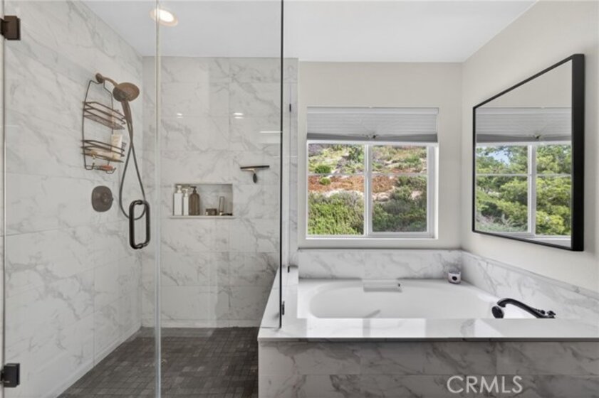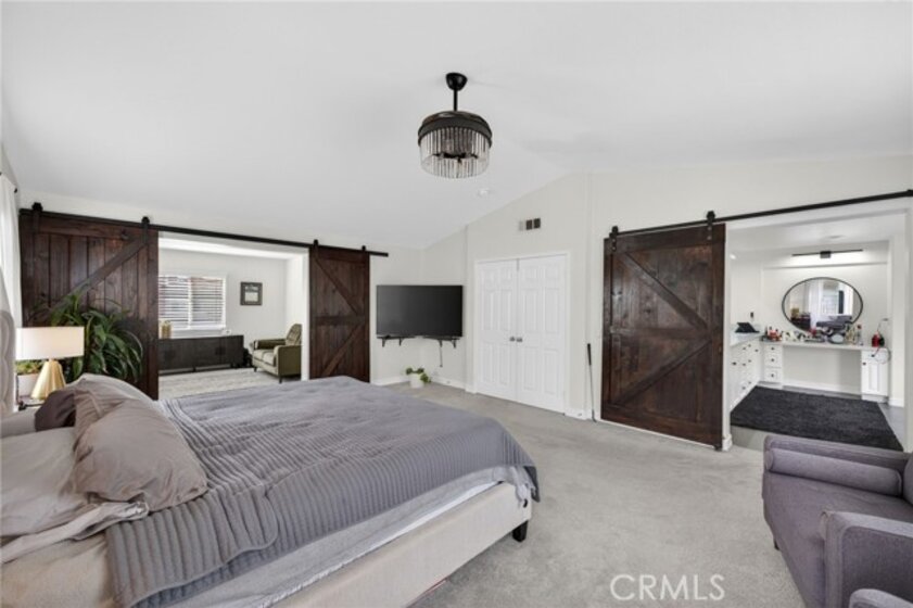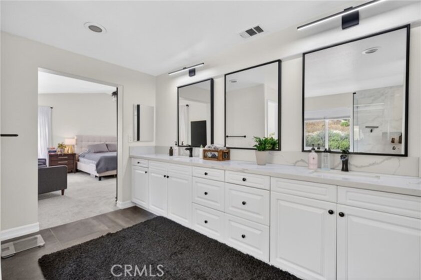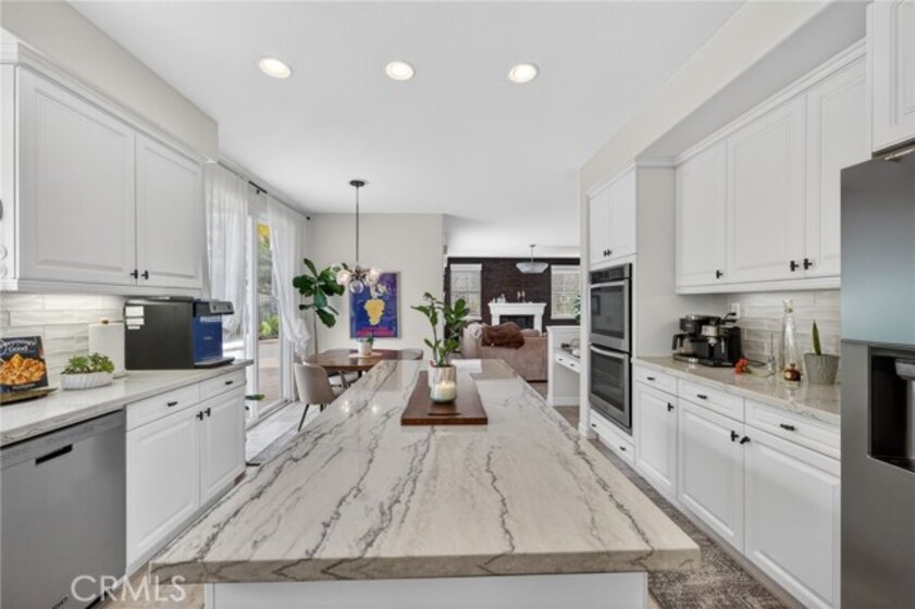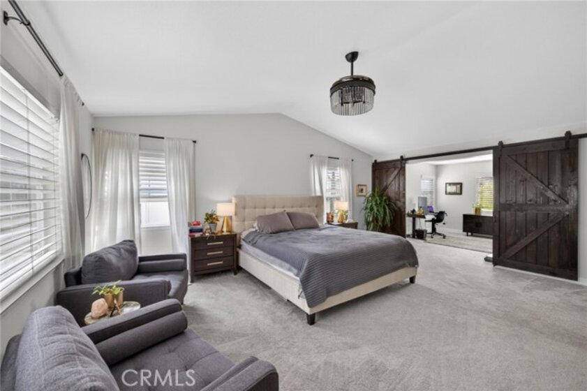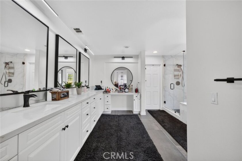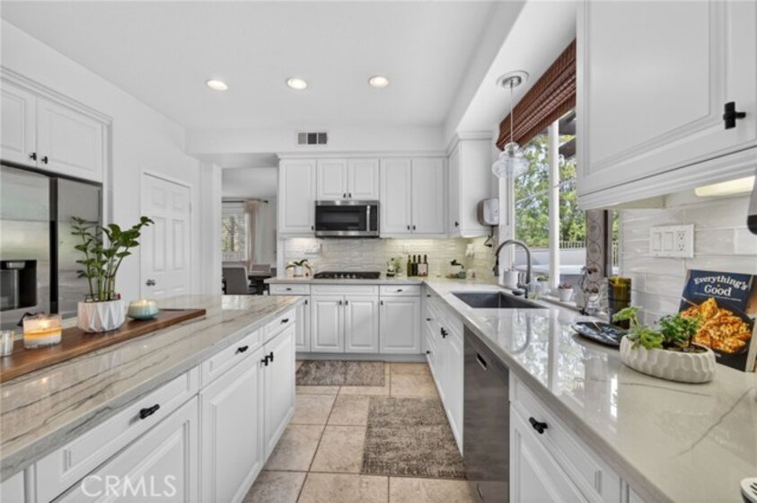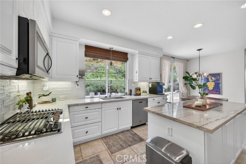 Welcome to The Fairways at Redhawk, Temecula's premier gated golf course community. This 4-bedroom, 3-bath home offers 3,545 square feet of bright, thoughtfully designed living space with neutral finishes and upgraded touches throughout. The remodeled kitchen features white raised-panel cabinetry, a large center island with dramatic stone countertops, gas cooktop, double oven, stainless steel appliances, and subway tile backsplash. A bright breakfast nook opens to the backyard through a sliding glass door and flows into the family room, making it a comfortable space for everyday living and entertaining. The master suite is a true retreat. Vaulted ceilings and dual barn doors set the tone, with one opening to a private attached office and the other to a fully remodeled spa-style bath. The ensuite features dual vanities with stone countertops, a dedicated makeup vanity, frameless glass walk-in shower with floor-to-ceiling marble tile, a soaking tub with marble surround, and a spacious walk-in closet. Black hardware and designer lighting complete the look. The flexible floor plan also includes a main-level bedroom and full bath, ideal for guests or multigenerational living, plus three additional bedrooms upstairs and a large bonus room ready to serve as a media room, playroom, or gym. Step outside and unwind in your own private oasis, complete with an above-ground jacuzzi spa, perfect for Southern California evenings after a round on the course. Families will love the award-winning schools serving this neighborhood, consistently ranked among the best in Riverside County. A split 3-car garage includes a detached single bay that works equally well as a home office, gym, or extra storage. Just off Redhawk Parkway with easy access to the 79, you're minutes from shopping, dining, wine country, and everything South Temecula has to offer.