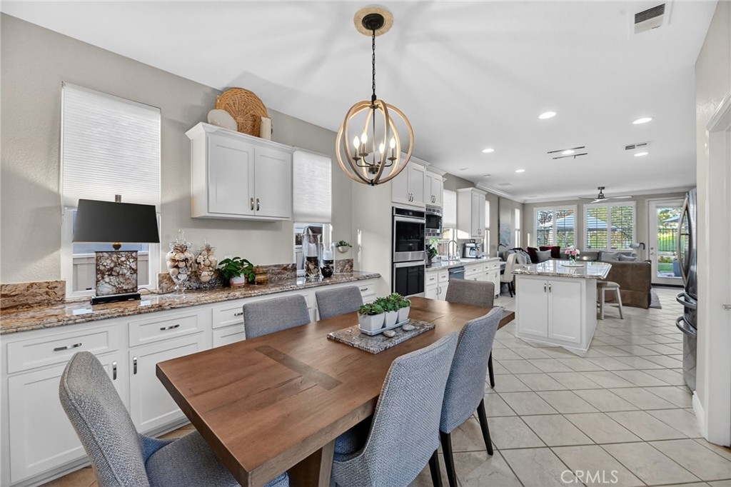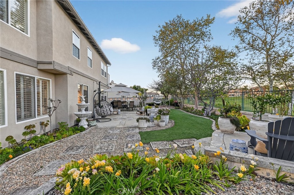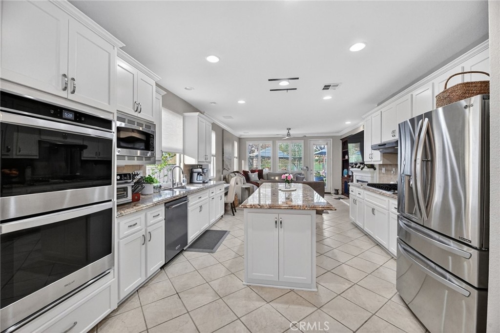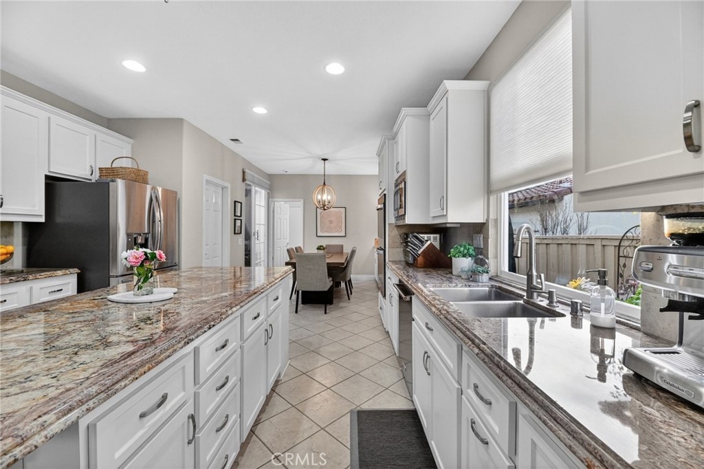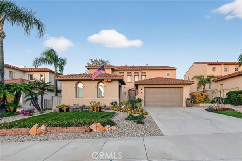Welcome to this beautifully appointed 4-bedroom, 3-bathroom home with an option for a 5th bedroom, offering 2,849 sq ft of spacious living in the highly sought-after Redhawk community of Temecula. Ideally situated near the Redhawk Golf Course and within the boundaries of award-winning Great Oak High School, this home blends comfort, functionality, and timeless style. From the moment you enter, you’re greeted by soaring ceilings, expansive windows, and a seamless open-concept layout designed for both everyday living and entertaining. The formal living and dining areas connect effortlessly and are filled with natural light, enhanced by inviting golf course views. The chef’s kitchen is the heart of the home, featuring slab granite countertops, abundant cabinetry, a walk-in pantry, stainless steel appliances, recessed lighting, and a 6-burner Viking cooktop, all opening to the spacious family room with a cozy gas fireplace and custom built-in entertainment center. The home has been thoughtfully updated with roughly $75,000 in recent upgrades, including refreshed kitchen cabinetry, a remodeled upstairs bathroom, fresh interior paint, updated landscaping, elegant chandelier lighting, electronic window shades, new retractable door screens, and added security lighting and cameras. The main level includes a full bedroom and bath, ideal for guests or a home office, along with a laundry room offering a sink and extra cabinetry. The 3-car garage provides ample storage plus a dedicated workshop area with built-in cabinets. Upstairs, a versatile loft offers space for a media room or optional bedroom conversion. The expansive primary suite captures peaceful golf course views and includes dual closets, granite vanities, and a relaxing soaking tub. The secondary bedrooms are generously sized and filled with natural light. Outside, enjoy a covered patio perfect for relaxing or entertaining, surrounded by drought-tolerant landscaping with turf in the front and back yards for low-maintenance living. Conveniently located near top-rated schools, shopping, dining, Pechanga Resort & Casino, and Temecula Wine Country, this home offers an exceptional lifestyle in one of Temecula’s most desirable communities.