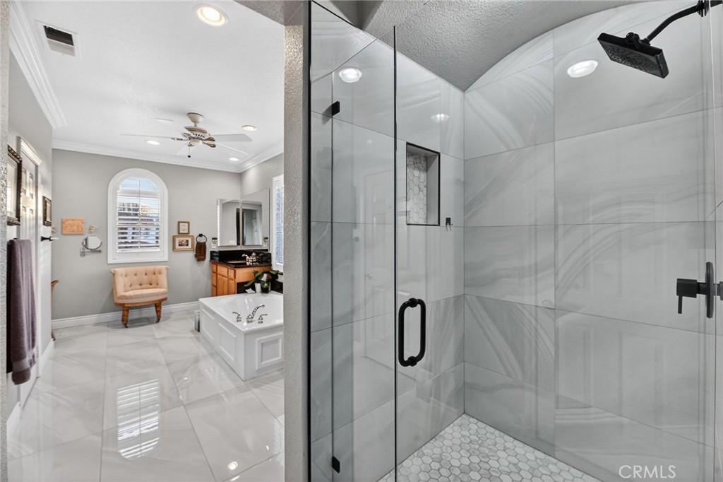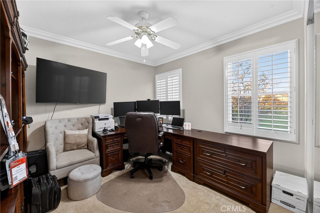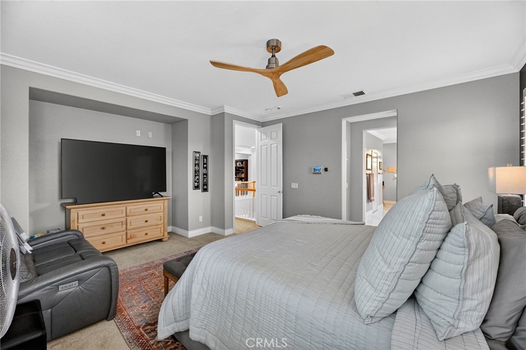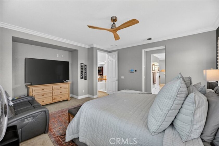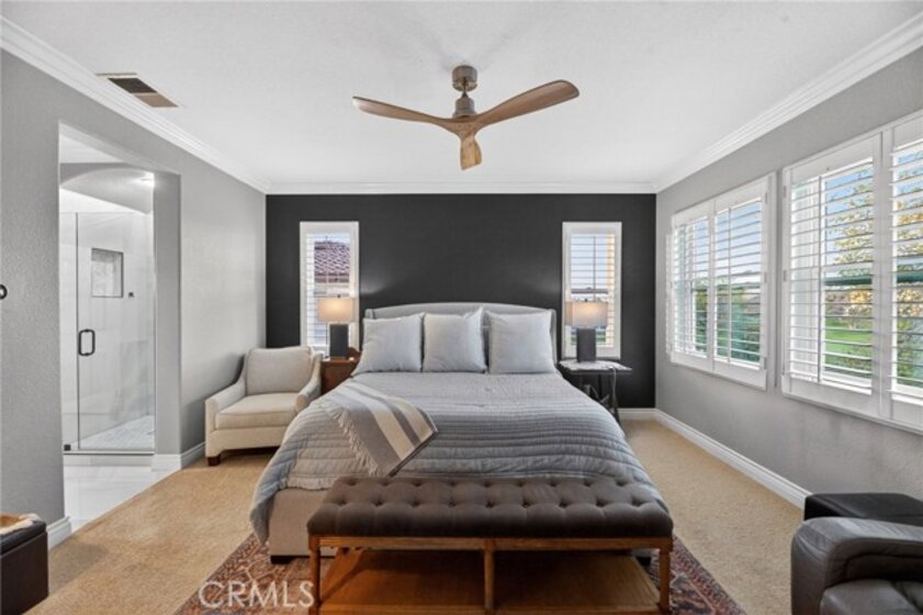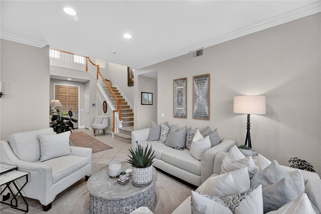 Welcome to this beautifully appointed 4-bedroom, 3-bathroom home with an option for a 5th bedroom, offering 2,849 sq ft of spacious living in the highly sought-after Redhawk community of Temecula. Ideally situated near the Redhawk Golf Course and within the boundaries of award-winning Great Oak High School, this home blends comfort, functionality, and timeless style. From the moment you enter, you’re greeted by soaring ceilings, expansive windows, and a seamless open-concept layout designed for both everyday living and entertaining. The formal living and dining areas connect effortlessly and are filled with natural light, enhanced by inviting golf course views. The chef’s kitchen is the heart of the home, featuring slab granite countertops, abundant cabinetry, a walk-in pantry, stainless steel appliances, recessed lighting, and a 6-burner Viking cooktop, all opening to the spacious family room with a cozy gas fireplace and custom built-in entertainment center. The home has been thoughtfully updated with roughly $75,000 in recent upgrades, including refreshed kitchen cabinetry, a remodeled upstairs bathroom, fresh interior paint, updated landscaping, elegant chandelier lighting, electronic window shades, new retractable door screens, and added security lighting and cameras. The main level includes a full bedroom and bath, ideal for guests or a home office, along with a laundry room offering a sink and extra cabinetry. The 3-car garage provides ample storage plus a dedicated workshop area with built-in cabinets. Upstairs, a versatile loft offers space for a media room or optional bedroom conversion. The expansive primary suite captures peaceful golf course views and includes dual closets, granite vanities, and a relaxing soaking tub. The secondary bedrooms are generously sized and filled with natural light. Outside, enjoy a covered patio perfect for relaxing or entertaining, surrounded by drought-tolerant landscaping with turf in the front and back yards for low-maintenance living. Conveniently located near top-rated schools, shopping, dining, Pechanga Resort & Casino, and Temecula Wine Country, this home offers an exceptional lifestyle in one of Temecula’s most desirable communities.
