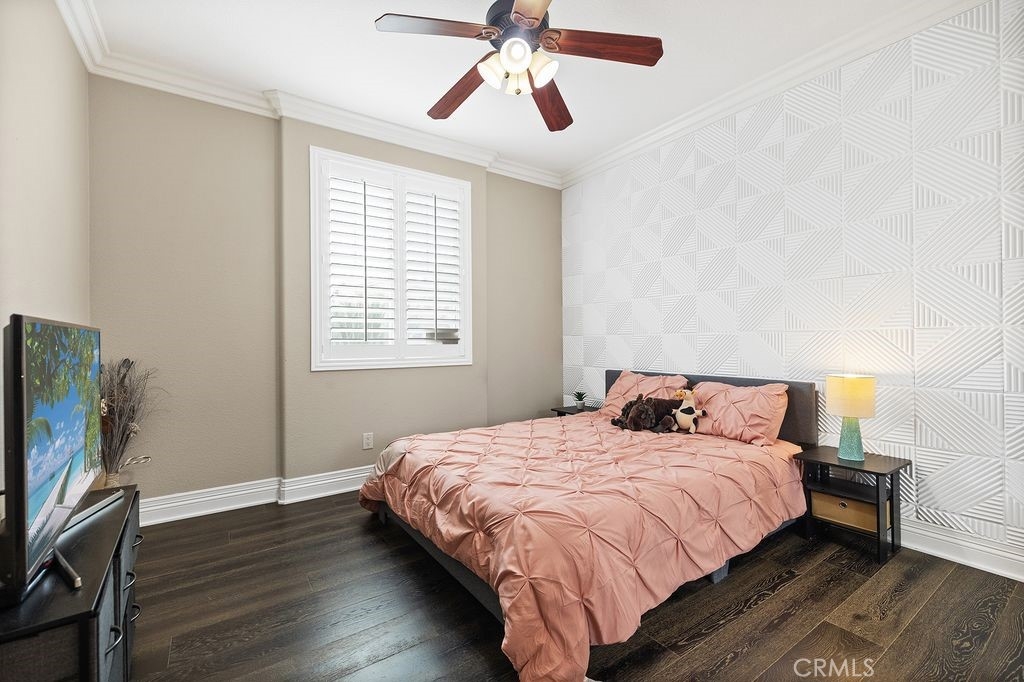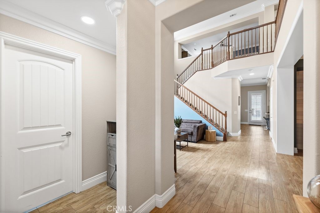 Live the Ultimate California Dream with Golf Course and Mountain Views! This incredible, well-maintained Residence is designed to enjoy and entertain - with 5 bedrooms (1 Bedroom DOWNSTAIRS), and 4 Full bathrooms (1 DOWNSTAIRS), it has rooms for kids, parents, in-laws and guests, and comfort and privacy are part of the package. Starting with extraordinary curb appeal, this Home welcomes you into a Two-story Living Room space connected to an elegant Dining Room; The Heart of the Home is a generously sized Family room connected to an Open Kitchen with upscale Rye-color Cabinets and modern white Quartz countertops that offers Peninsula Bar seating, an Island, and a Breakfast nook, with two sets of Sliding doors leading to the spacious Backyard with a View of the Golf Course. Huge Alumawood Patio Cover and abundant ambient outdoor Lighting are designed for al fresco dining pretty much year-round, in the mild Southern California Climate. Come for a Visit and be wowed by the Huge Owners' Suite, Oversized Loft, Tall ceilings, Crown Molding, Walk-in Pantry and Closet, Epoxy-floored Garage with Overhead storage, and peaceful location on a beautiful Street where Neighbors take pride in maintaining their Homes. Low HOA, low utility costs (Solar at only $170/month), abundant space and storage, and the Best Schools the City has to offer - Congratulations, your Wishlist is complete!