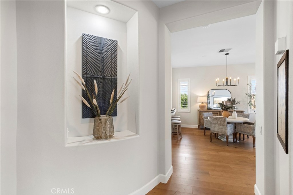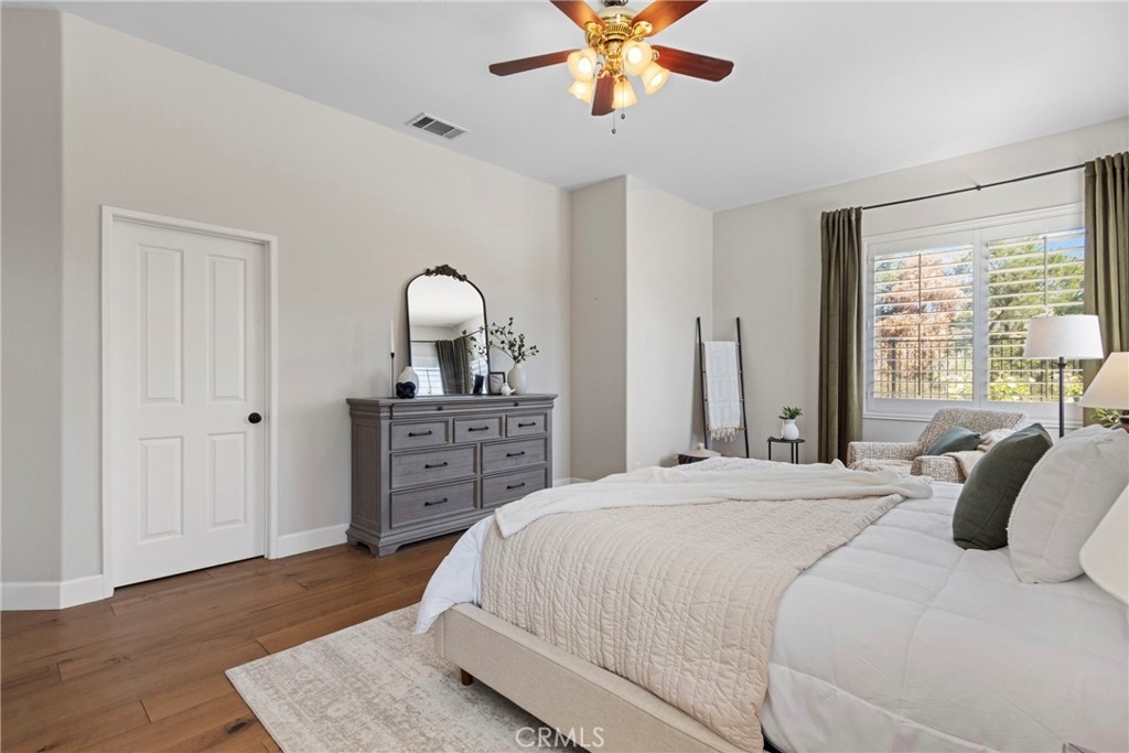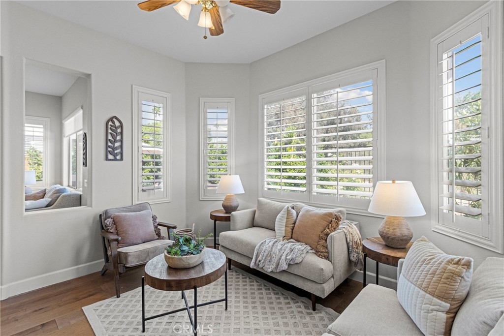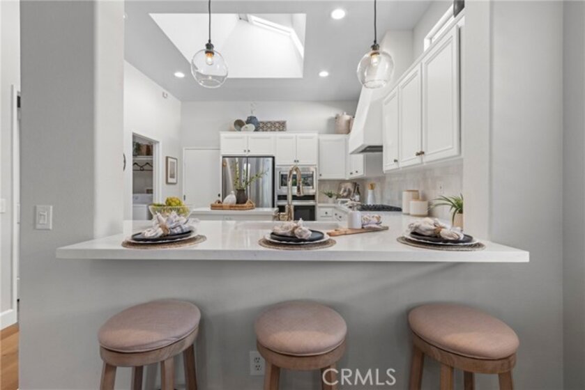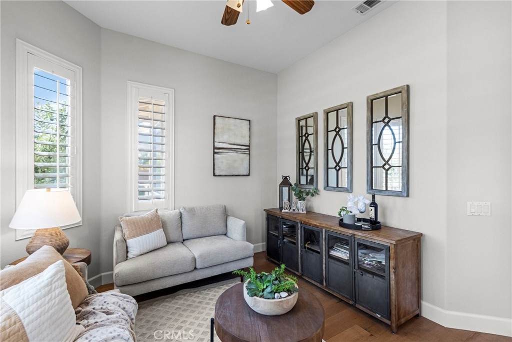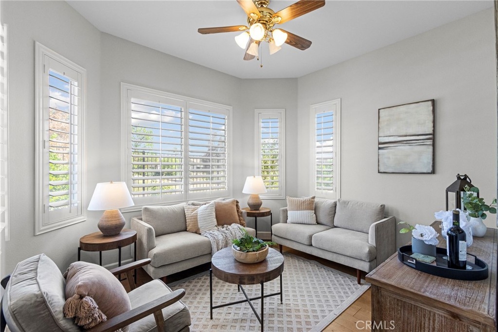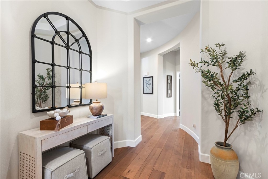 Splendor awaits in this rare, turnkey single-story home in the highly desirable Temeku Hills community! Ideally situated at the end of a quiet cul-de-sac with no rear neighbors, this property offers peaceful mountain views, exceptional privacy, and wonderful proximity to all that Temecula living has to offer. Enjoy easy freeway access and be just minutes from Wine Country, Pechanga Resort & Casino, Old Town, and top-tier shopping and dining. Step inside and instantly feel the warmth and sophistication of this pristine home, where pride of ownership shines throughout. Rich maple hardwood flooring, plantation shutters, and abundant natural light—enhanced by lovely kitchen skylights—create a bright, welcoming ambiance. A spacious den/flex room flows effortlessly into the open-concept great room, framing beautiful backyard and mountain views. The gourmet kitchen is a showpiece, boasting quartz countertops, elegant zellige tile backsplash, stainless steel appliances, a center island with storage, large walk-in pantry, and barstool seating—perfect for gatherings. Through elegant French doors, the primary suite is a serene retreat offering a custom-designed walk-in closet, an ensuite bath with dual sinks, vanity area, separate tub and shower, and a private water closet. The large laundry room with storage cabinets adds everyday convenience, while the secondary bedroom enjoys a charming view of the front garden and easy access to the full guest bath. Step outside to a low-maintenance backyard designed for relaxation and entertaining—complete with mountain views, open space behind the home, and a built-in gas line ready for your BBQ. Residents of Temeku Hills enjoy a premier resort-style lifestyle with access to a grand clubhouse, Olympic-size pool and spa, fitness center, sports courts, golf, tot lots, and beautifully maintained grounds.