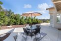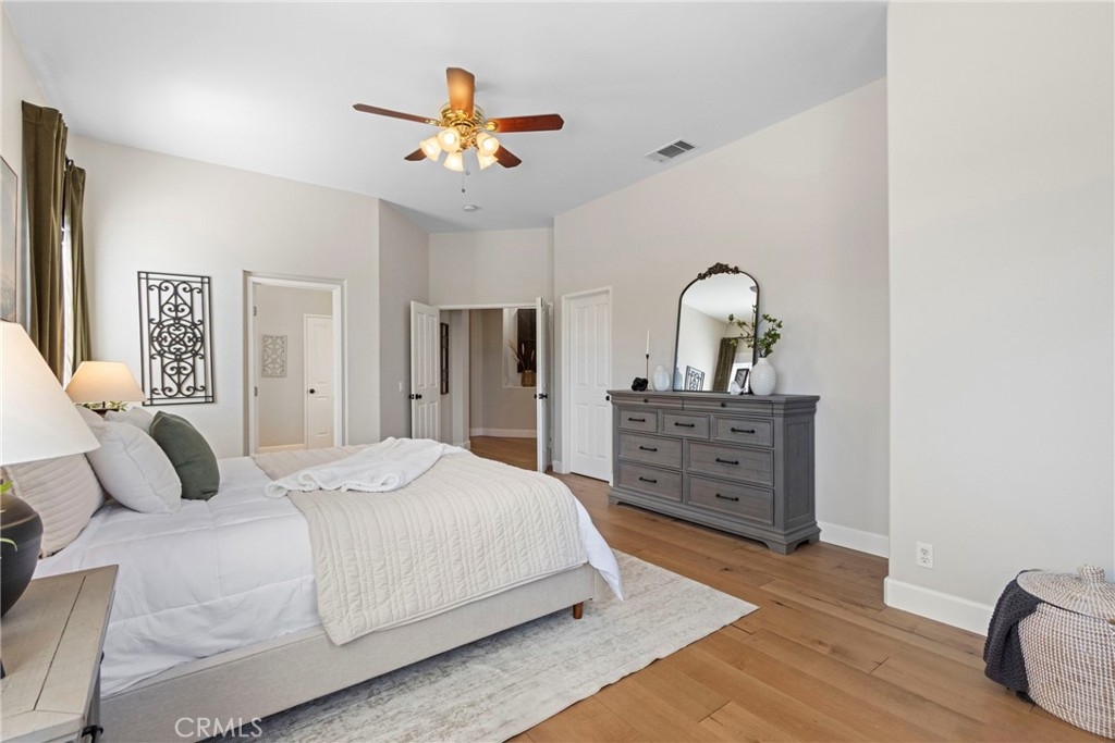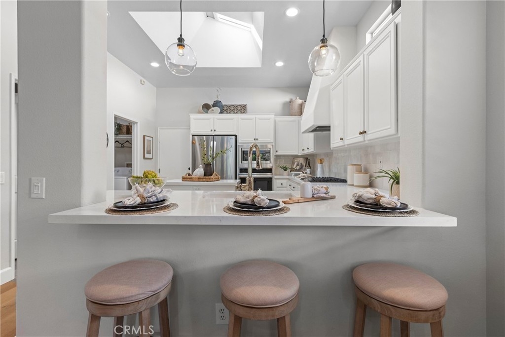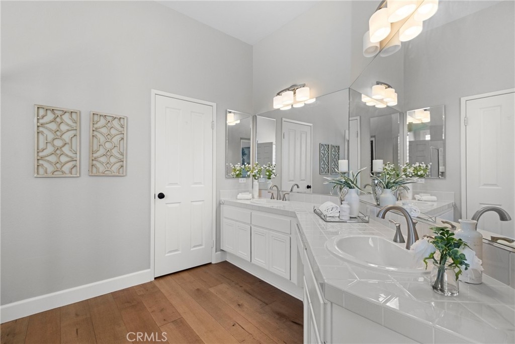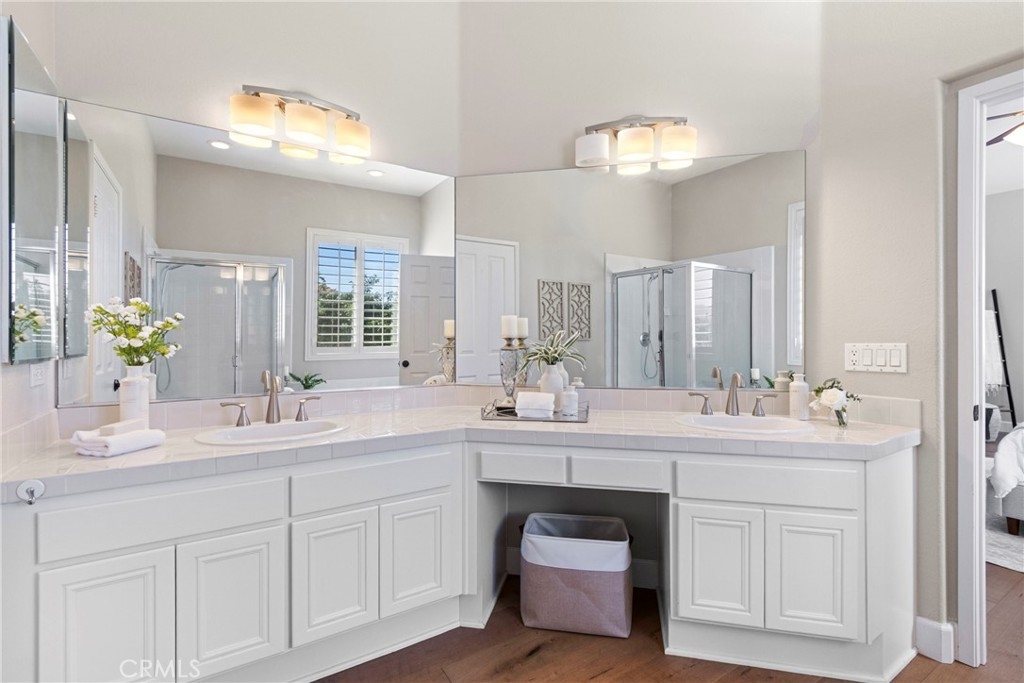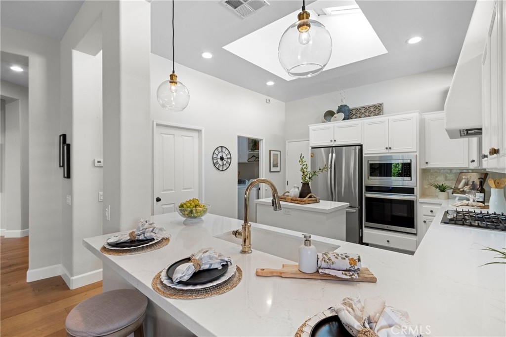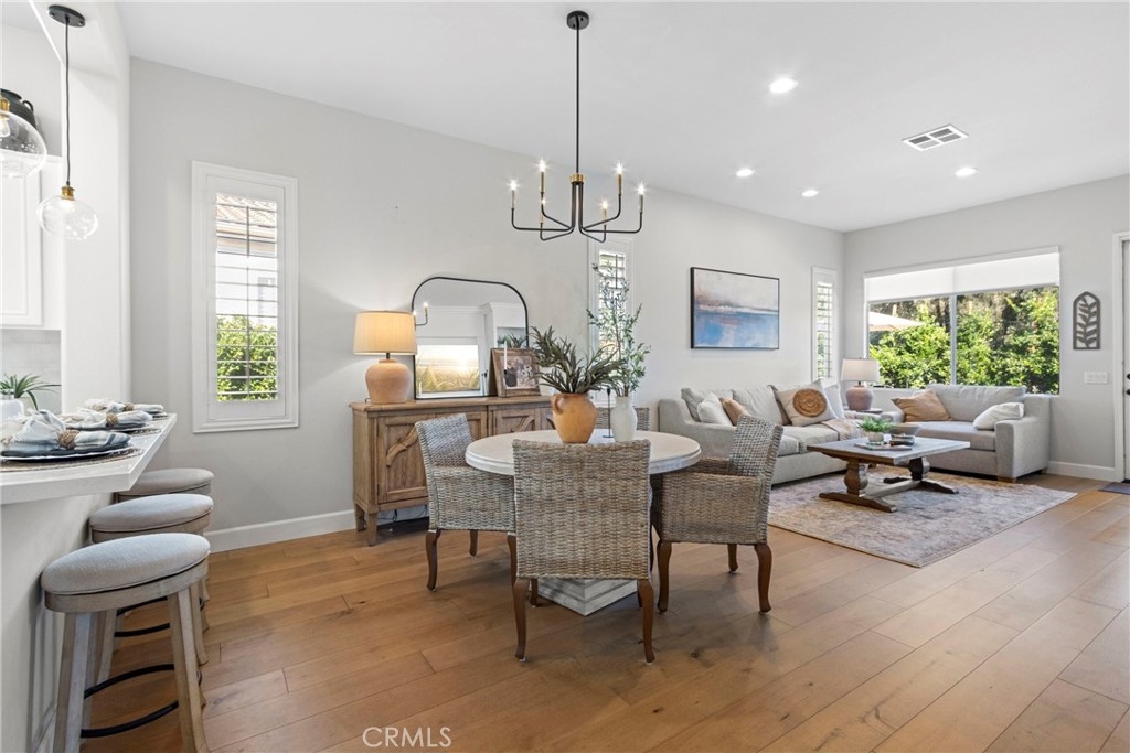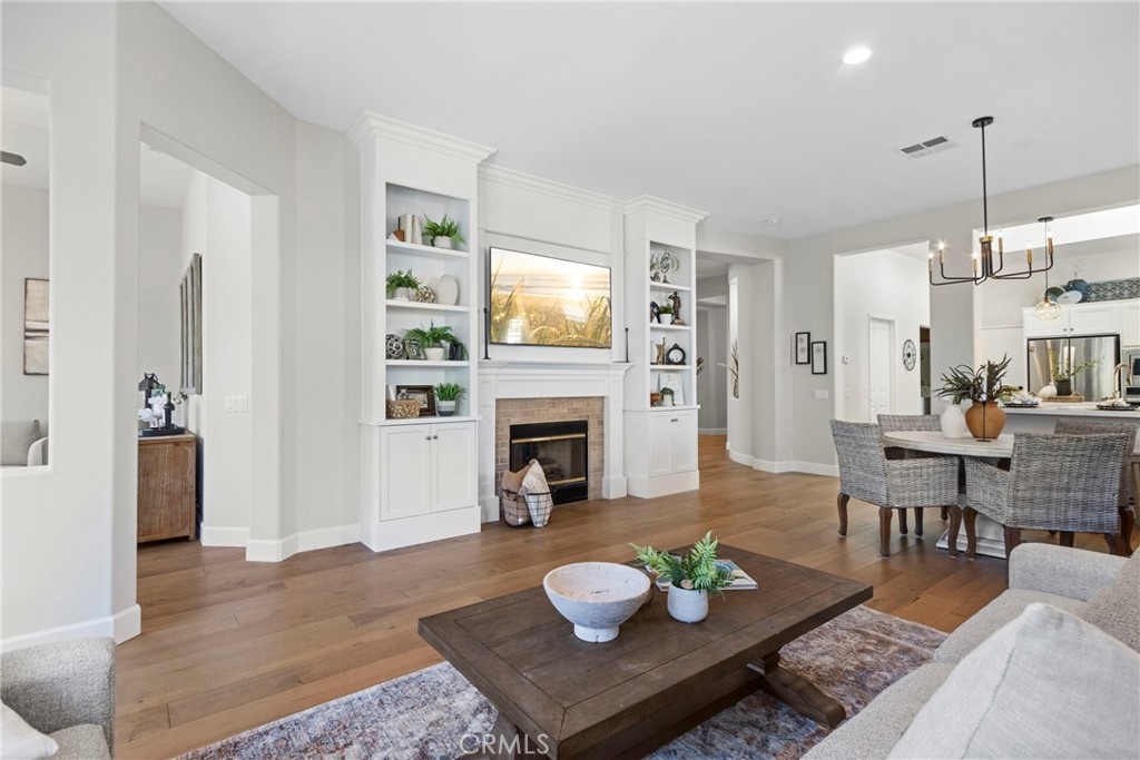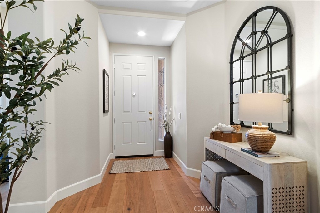Splendor awaits in this rare, turnkey single-story home in the highly desirable Temeku Hills community! Ideally situated at the end of a quiet cul-de-sac with no rear neighbors, this property offers peaceful mountain views, exceptional privacy, and wonderful proximity to all that Temecula living has to offer. Enjoy easy freeway access and be just minutes from Wine Country, Pechanga Resort & Casino, Old Town, and top-tier shopping and dining. Step inside and instantly feel the warmth and sophistication of this pristine home, where pride of ownership shines throughout. Rich maple hardwood flooring, plantation shutters, and abundant natural light—enhanced by lovely kitchen skylights—create a bright, welcoming ambiance. A spacious den/flex room flows effortlessly into the open-concept great room, framing beautiful backyard and mountain views. The gourmet kitchen is a showpiece, boasting quartz countertops, elegant zellige tile backsplash, stainless steel appliances, a center island with storage, large walk-in pantry, and barstool seating—perfect for gatherings. Through elegant French doors, the primary suite is a serene retreat offering a custom-designed walk-in closet, an ensuite bath with dual sinks, vanity area, separate tub and shower, and a private water closet. The large laundry room with storage cabinets adds everyday convenience, while the secondary bedroom enjoys a charming view of the front garden and easy access to the full guest bath. Step outside to a low-maintenance backyard designed for relaxation and entertaining—complete with mountain views, open space behind the home, and a built-in gas line ready for your BBQ. Residents of Temeku Hills enjoy a premier resort-style lifestyle with access to a grand clubhouse, Olympic-size pool and spa, fitness center, sports courts, golf, tot lots, and beautifully maintained grounds.