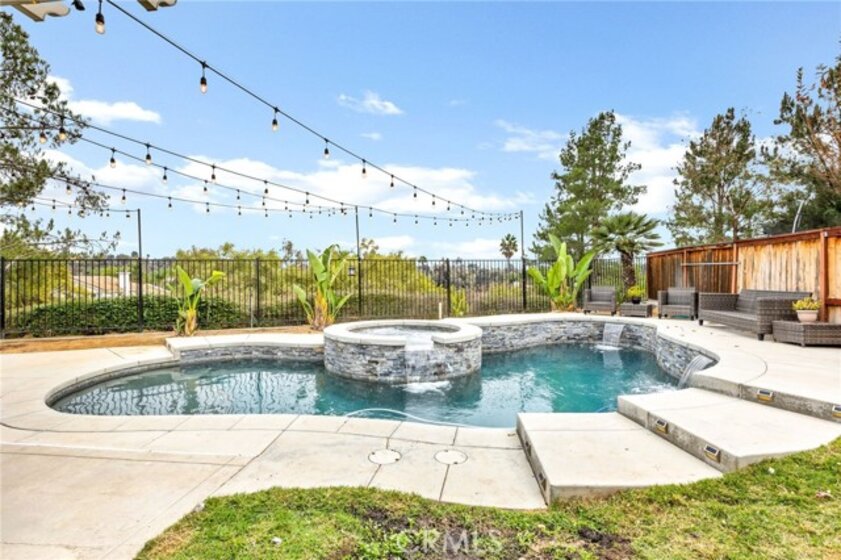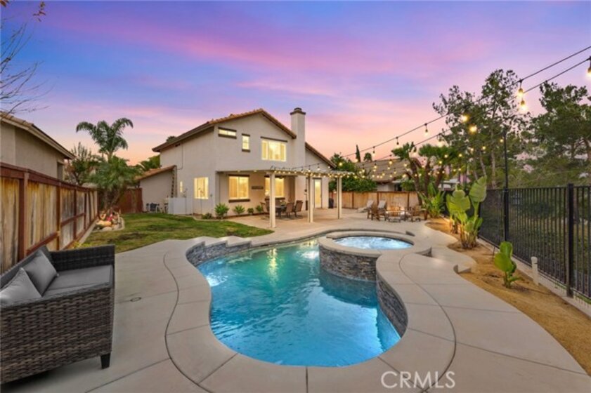 Welcome to resort-style living in the highly sought-after Temeku Hills golf course community — just minutes from the world-class Temecula wineries, dining, and Old Town charm. This beautifully upgraded two-story home offers 4 bedrooms and 3 baths, including a desirable bedroom and full bath on the main level, perfect for guests or multi-generational living. The home features luxury vinyl plank flooring, plantation shutters, granite countertops, and a spacious kitchen with a center island topped with butcher block — ideal for cooking, gathering, and entertaining. Updated bathrooms add a modern touch throughout, while paid-off solar enhances energy efficiency and long-term savings. Step outside to an entertainer’s backyard designed for year-round enjoyment. Relax in the sparkling saltwater pool and spa, unwind around the fire pit, or host evening gatherings under the covered patio accented with charming café string lights. Enjoy peaceful backyard views that create the perfect setting for outdoor entertaining. Additional highlights include a two-car garage, thoughtful upgrades throughout, and a functional layout that blends comfort with style. Residents of Temeku Hills enjoy exceptional HOA amenities including a championship golf course, clubhouse, community pool and spa, sports courts, and a fully equipped fitness center — offering a true resort lifestyle right at home. This is Southern California living at its finest — comfort, convenience, and community all in one exceptional property.