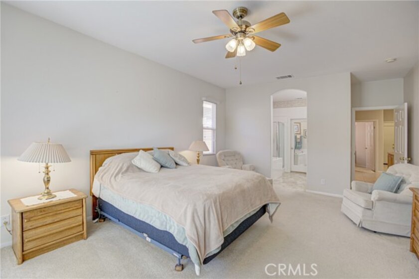 Located on a cul-de-sac in the desirable Temeku Hills community, this well-maintained single-story home offers a spacious open floor plan and the rare advantage of two primary suites. The kitchen features a center island, abundant counter space, and a casual eat-in area, and opens directly to the great room with fireplace, creating a comfortable space for everyday living and entertaining. The great room also provides access to the backyard and a full-length Alumawood covered patio with ceiling fans, ideal for outdoor dining and relaxation. In addition to the great room, the home offers a separate living and dining room combination with large windows that provide abundant natural light. One of the primary suites functions as a junior suite with its own private bathroom featuring a tub and shower combination. The main primary bedroom includes a sliding door to the backyard for added privacy and convenience, along with a spacious bathroom featuring dual sinks, a separate shower and soaking tub, and a large walk-in closet. A third bedroom and additional full bathroom provide flexibility for guests, family members, or a home office.Situated at the top of a quiet cul-de-sac, the property has been well cared for and offers a peaceful residential setting. Residents enjoy access to the many amenities of the Temeku Hills community, along with a convenient location near shopping, the Promenade mall, restaurants, and Temecula’s renowned wineries. The property also benefits from lower taxes and easy freeway acccess.