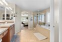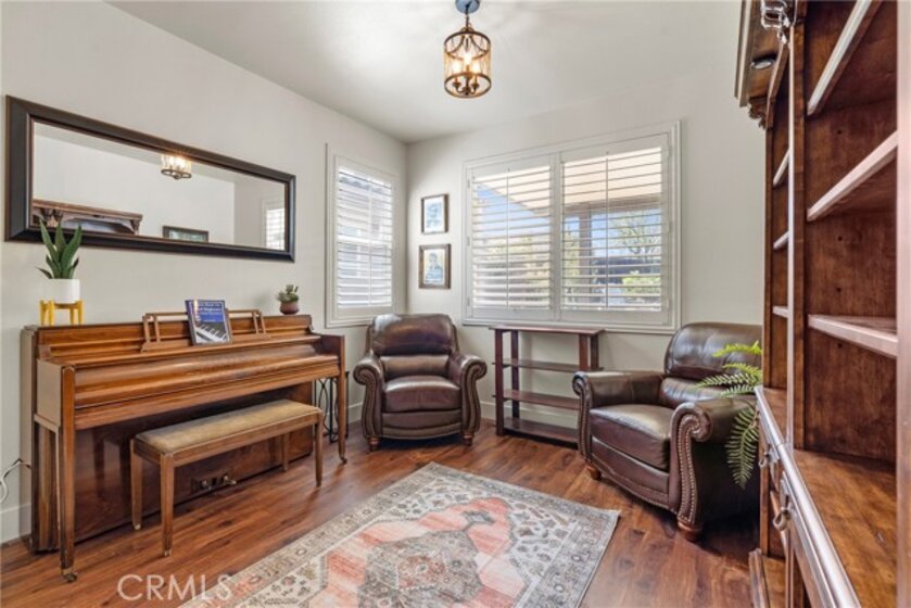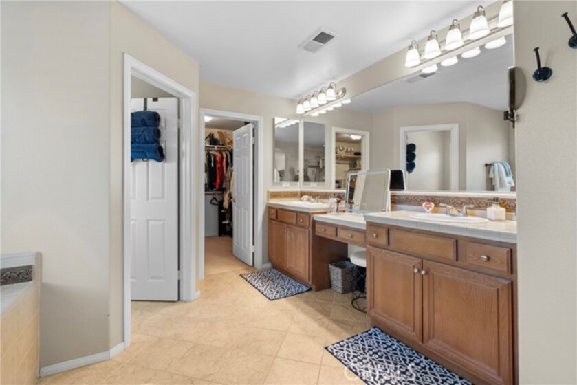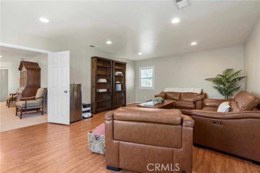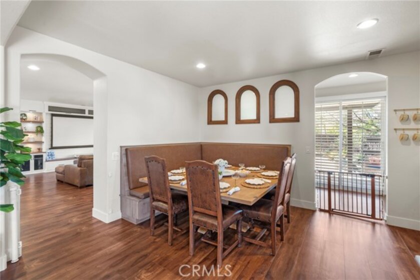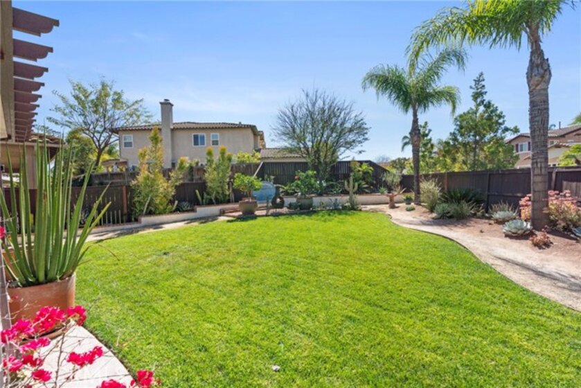 Resort-style living meets designer upgrades in this stunning Temeku Hills home featuring a chef’s kitchen, private home theater, paid solar, and access to golf, pickleball, tennis, pool, spa, and fitness amenities.Welcome to this stunning 5 bedroom, 3 full bath home with a 3-car garage offering resort-style amenities and exceptional upgrades throughout.Step inside to find luxury plank vinyl flooring throughout the first floor, a tiled entry, and vinyl shutters throughout the entire home, creating a warm and polished feel. The living area features custom built-in bookcases and storage with dimmable lighting, along with newly installed French doors and a sliding door that enhance natural light and indoor-outdoor flow. Entertainers will appreciate the private home theater with retractable screen, surround sound system, and Epson short-throw projector, perfect for movie nights or game day.At the heart of the home is the fully remodeled designer kitchen. Features include quartz countertops with a drop-down island, solid wood cabinetry with brushed brass hardware, farmhouse Kohler enameled cast iron sink, and a stunning Italian-made Ilve 8-burner range with griddle topper and double oven. Additional highlights include a brass pot filler, high-flow quiet range hood, under-cabinet lighting, coffee bar with wine fridge, and a four-door smart Samsung TV refrigerator. Custom storage throughout the kitchen includes pull-out pot and baking pan shelves, dual spice pull-outs, lazy susan, hidden storage behind the stove hood corbels, double trash pull-out, and storage beneath the island and banquet seating. The dining space is perfect for gatherings with built-in banquet seating for 8–12 guests and a handcrafted solid wood pedestal dining table from James & James.Additional upgrades include tankless water heater, water softener and purification system, The garage has upgraded doors, epoxy-coated floors, above head storage racks and upper cabinets .Step outside to a backyard designed for relaxation and entertaining, featuring Alumawood patio covers with built-in fans and lighting and a cozy outdoor gas fire pit.Located within the Temeku Hills Master Association, residents enjoy golf, tennis courts, pickleball courts, resort-style pool and spa, fitness center, clubhouse, and beautifully maintained community spaces. Even better, the home includes a fully paid-for solar system, helping reduce energy costs while providing long-term efficiency.