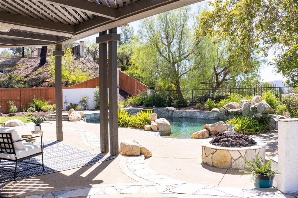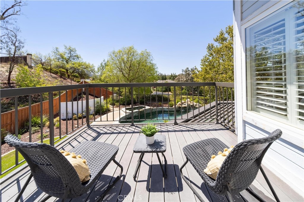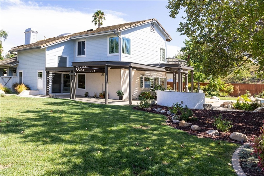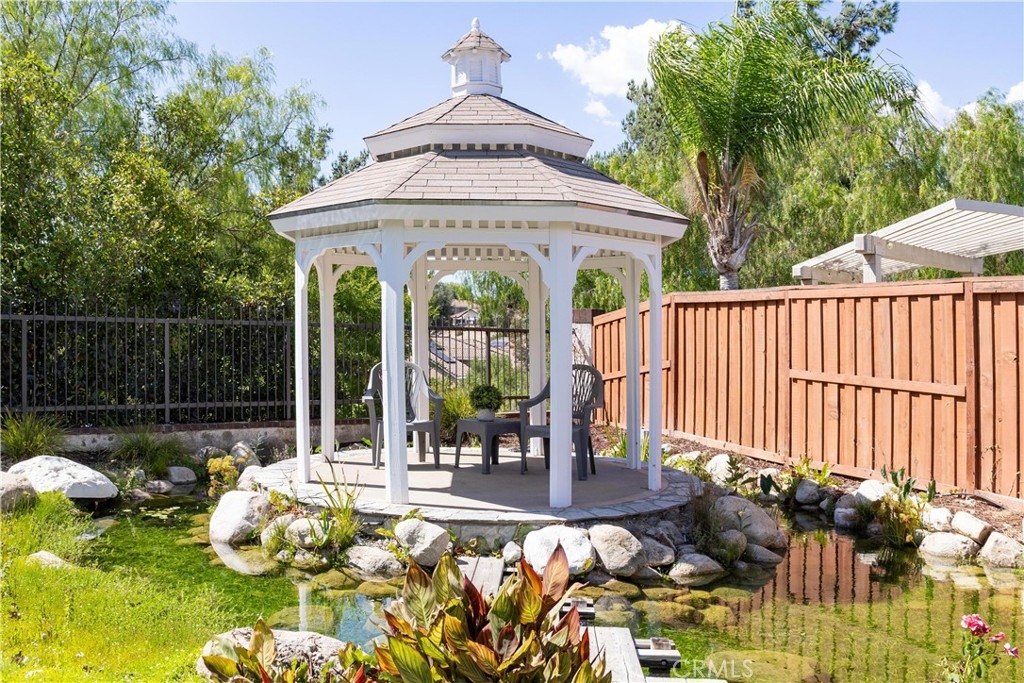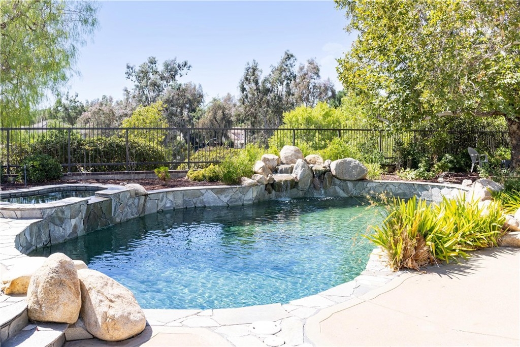 Centrally located in the heart of Temecula, this elegantly remodeled 5-bedroom, 3-bathroom pool home with a 3-car garage offers the perfect blend of style, comfort, and convenience. Inside, you’ll find beautiful tile wood-plank flooring, rich hardwood floors, and brand-new carpet, all accented by fresh paint and modern designer lighting. Every detail has been thoughtfully updated to create a light, welcoming atmosphere. The flexible floorplan includes a main-level bedroom currently set up as a private office, featuring a built-in desk and sliding door to the side yard. With a full bathroom nearby, this space is ideal for remote work, guests, or multi-generational living. Upstairs, the primary suite is a true retreat with a spa-inspired bathroom and a private balcony overlooking the pool and sunsets. One of the upstairs bedrooms is designed as a flex/bonus room, complete with a cozy fireplace, private balcony, and a convenient mini kitchenette with sink—perfect as a guest suite, entertainment lounge, or creative workspace. Additional bedrooms are generously sized, offering comfort and versatility for family or guests. The backyard is where this home truly shines. Set on a large lot with mature trees and lush landscaping, it features a dual waterfall stream that flows around a charming gazebo, creating a tranquil setting to relax and watch the sun go down. A sparkling pool completes the resort-like atmosphere, perfect for summer days, barbecues, and entertaining. All of this, just minutes from Temecula’s top schools, shopping, dining, Old Town, and world-class wineries. This isn’t just a home—it’s the lifestyle you’ve been waiting for.