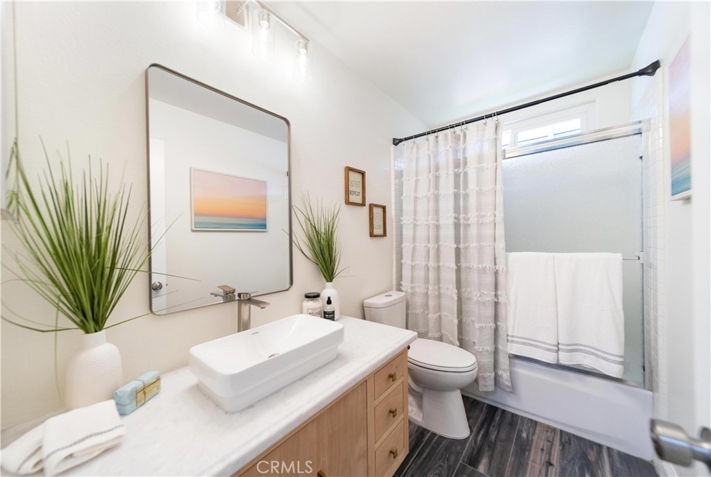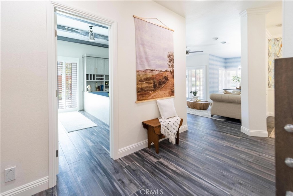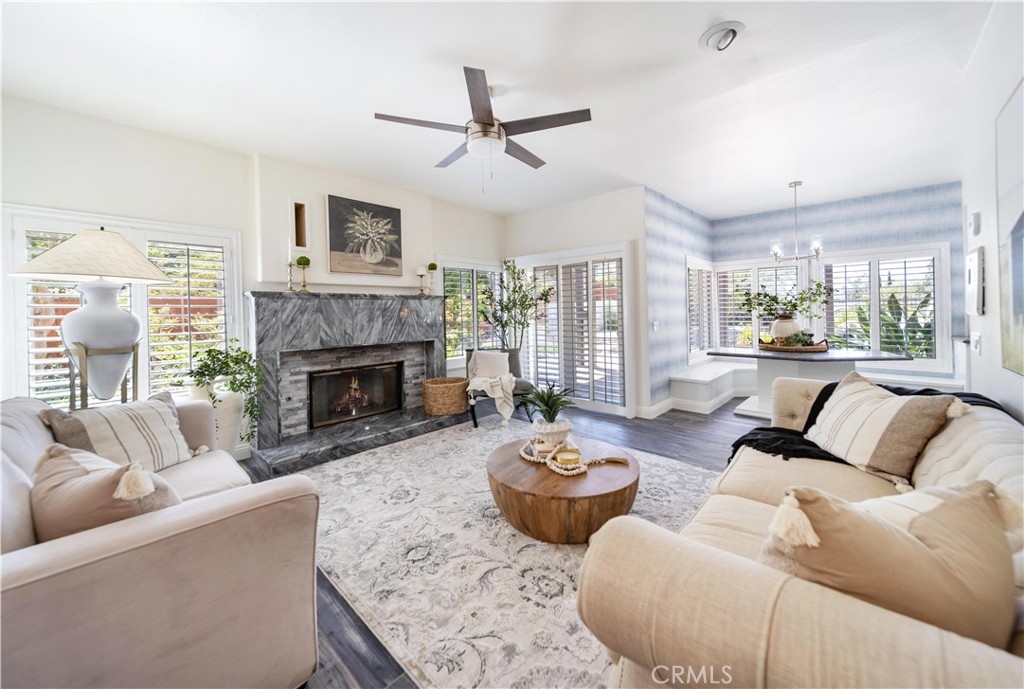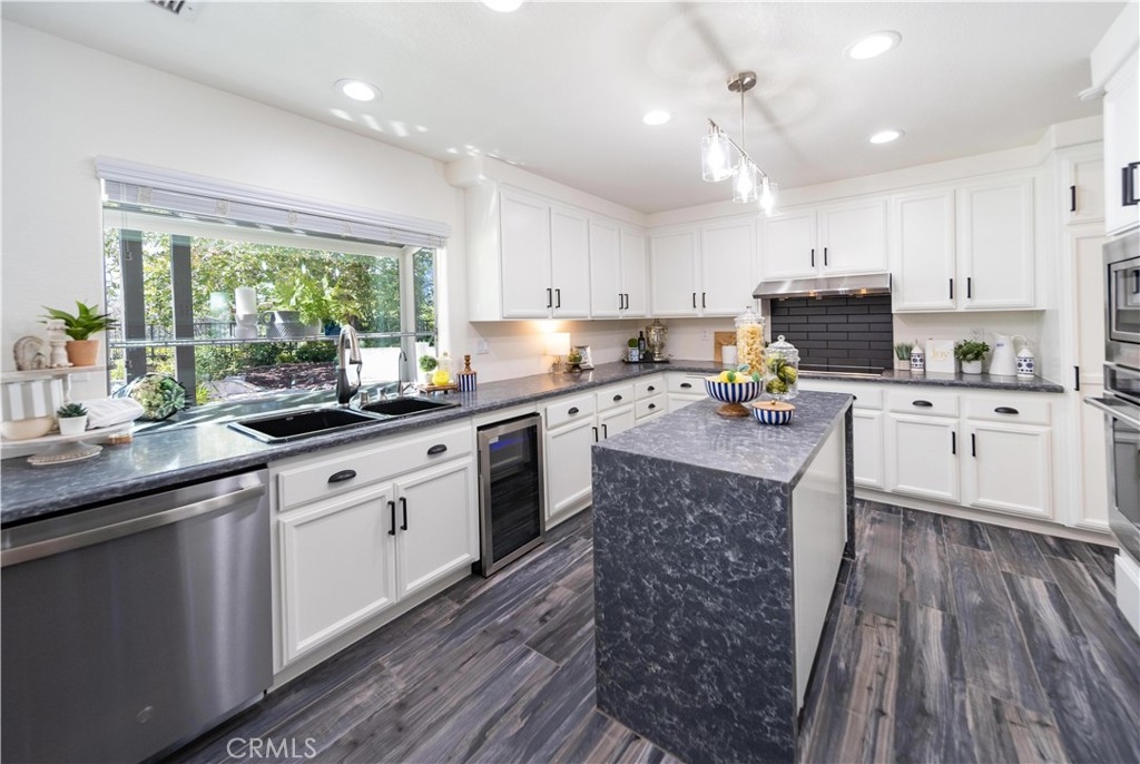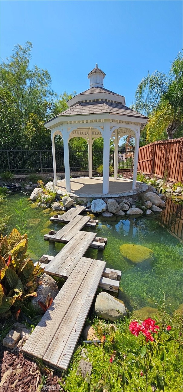 Centrally located in the heart of Temecula, this elegantly remodeled 5-bedroom, 3-bathroom pool home with a 3-car garage offers the perfect blend of style, comfort, and convenience. Inside, you’ll find beautiful tile wood-plank flooring, rich hardwood floors, and brand-new carpet, all accented by fresh paint and modern designer lighting. Every detail has been thoughtfully updated to create a light, welcoming atmosphere. The flexible floorplan includes a main-level bedroom currently set up as a private office, featuring a built-in desk and sliding door to the side yard. With a full bathroom nearby, this space is ideal for remote work, guests, or multi-generational living. Upstairs, the primary suite is a true retreat with a spa-inspired bathroom and a private balcony overlooking the pool and sunsets. One of the upstairs bedrooms is designed as a flex/bonus room, complete with a cozy fireplace, private balcony, and a convenient mini kitchenette with sink—perfect as a guest suite, entertainment lounge, or creative workspace. Additional bedrooms are generously sized, offering comfort and versatility for family or guests. The backyard is where this home truly shines. Set on a large lot with mature trees and lush landscaping, it features a dual waterfall stream that flows around a charming gazebo, creating a tranquil setting to relax and watch the sun go down. A sparkling pool completes the resort-like atmosphere, perfect for summer days, barbecues, and entertaining. All of this, just minutes from Temecula’s top schools, shopping, dining, Old Town, and world-class wineries. This isn’t just a home—it’s the lifestyle you’ve been waiting for.
