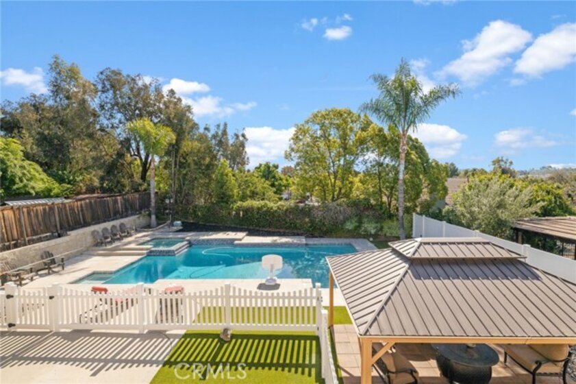 Entertainer’s pool home in the heart of Temecula! This 4-bedroom, 2.5-bath home offers 2,107 sq ft of living space on a generous 8,712 sq ft lot complete with an attached two-car garage. Designed with both comfort and entertaining in mind, the property features a private backyard retreat complete with a pool and spa showcasing an upgraded PebbleTec finish and updated pool equipment. A spacious gazebo, turf, and vinyl fencing complete the outdoor space, creating an inviting setting for year-round enjoyment. Inside, the home is filled with natural light and features a neutral, cohesive palette throughout. The functional layout offers a comfortable flow, complemented by dual pane windows, plantation shutters, granite kitchen countertops, and stone countertops in the primary bathroom. A convenient indoor laundry room is enhanced by a laundry chute from the primary suite. Upstairs, a spacious private balcony off the primary bedroom provides a peaceful place to unwind and take in surrounding views, including local Fourth of July fireworks. Additional highlights include leased solar and a dedicated utility room, offering flexibility for a variety of uses such as a workspace, home gym, or hobby area. Conveniently located near parks, shopping, dining, and Temecula’s renowned wine country, with easy access to major freeways. This home offers a desirable blend of comfort, functionality, and location. Don’t miss this opportunity to own a beautiful pool home in a desirable Temecula location!