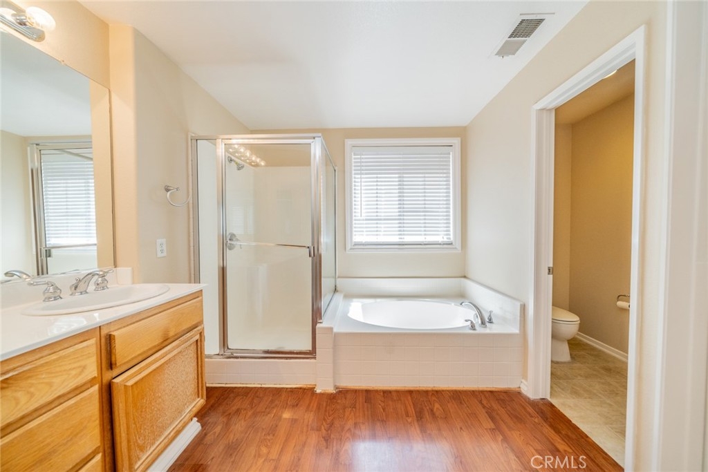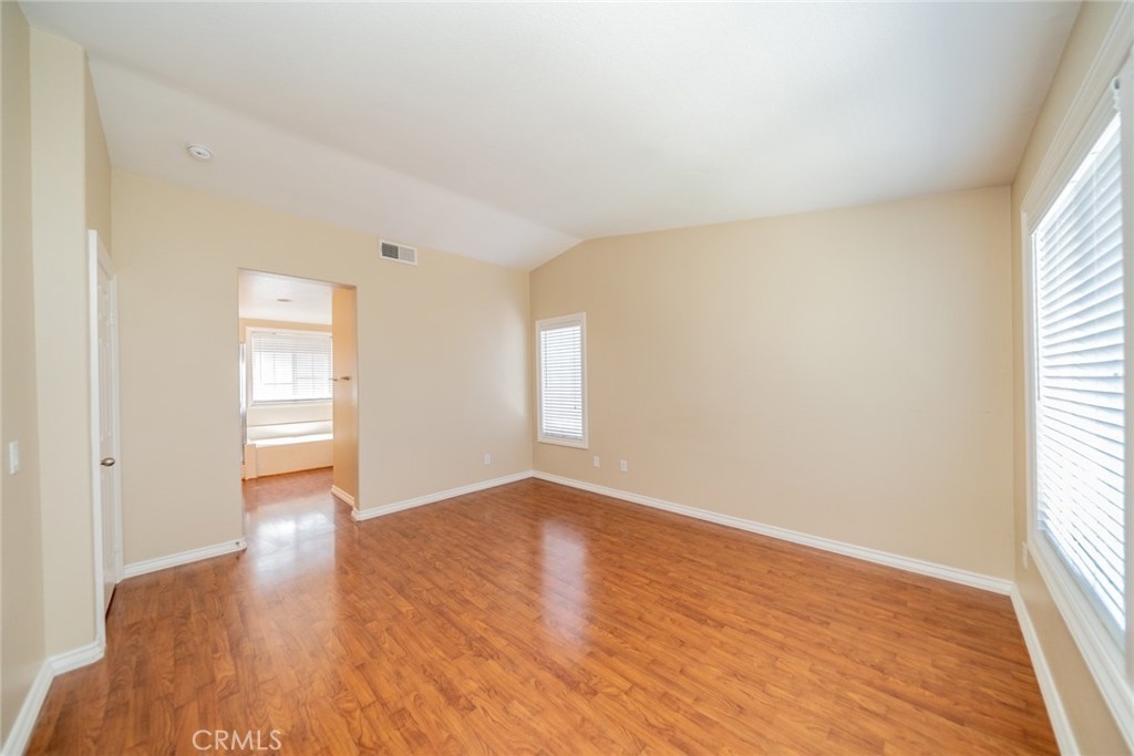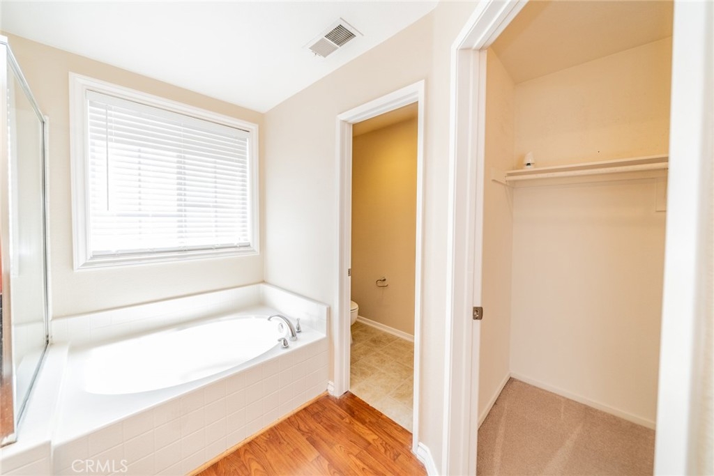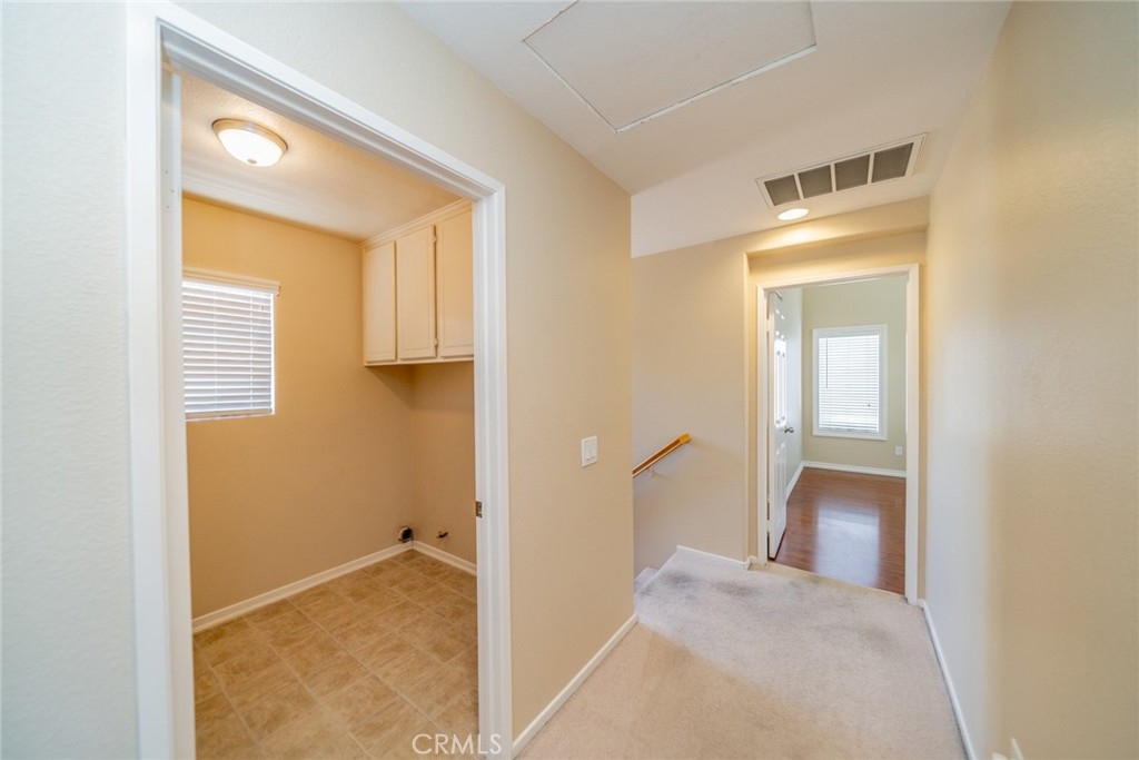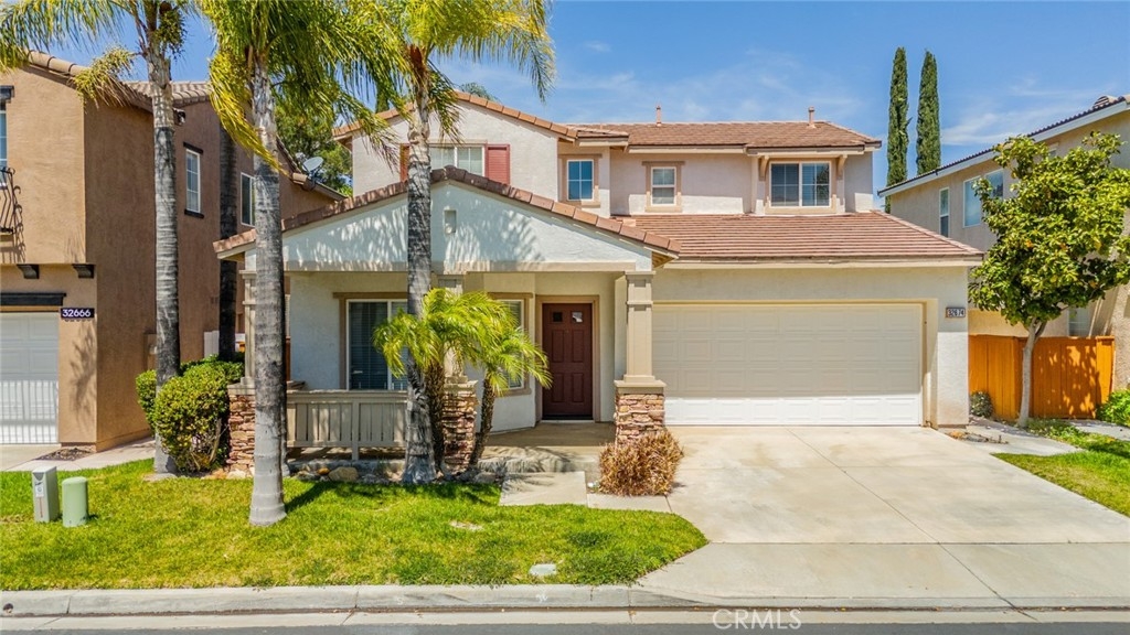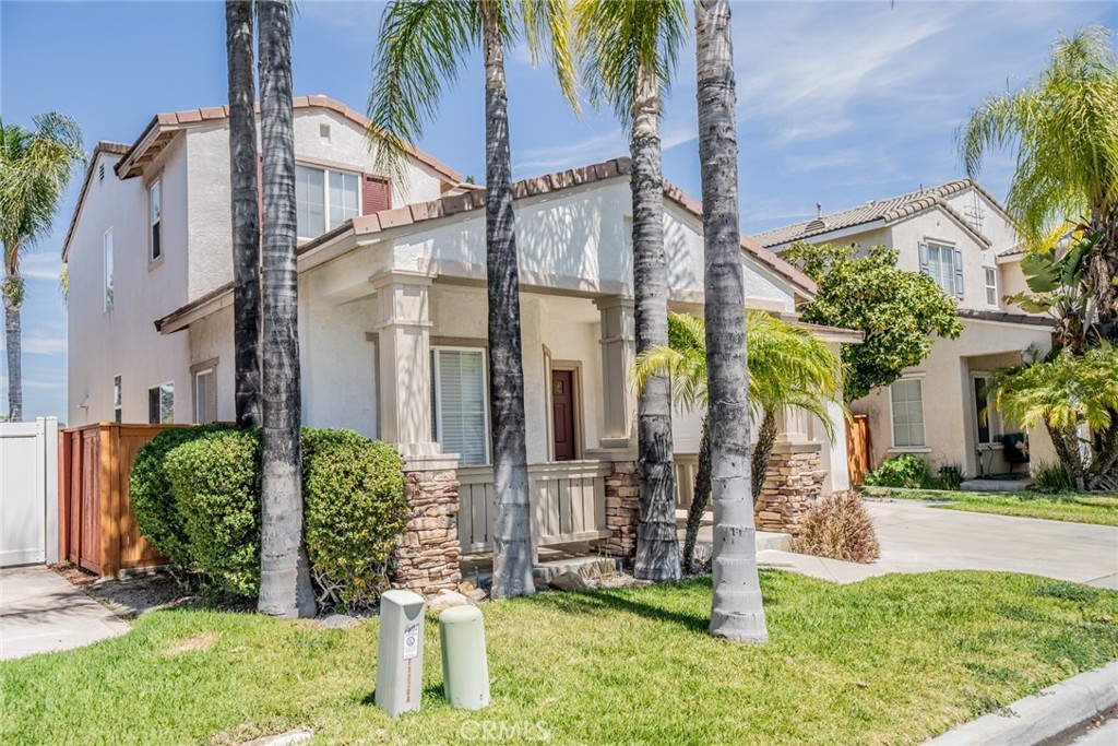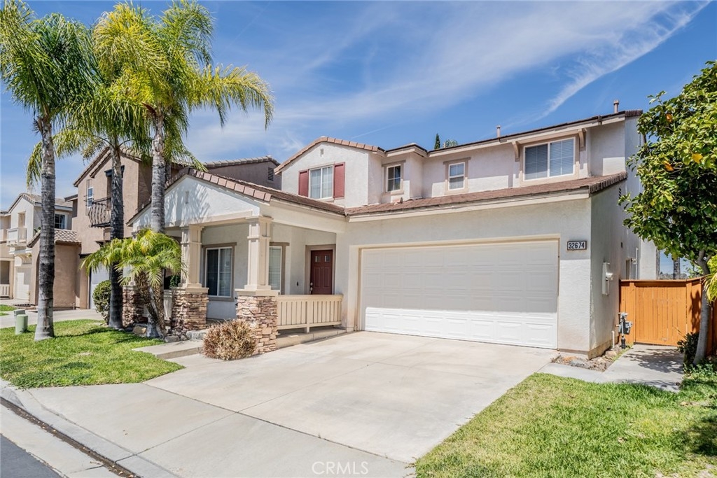Welcome to this home with 3 bedrooms, 2.5 baths, 1,874 sq ft of living space in the highly desired gated community of Vail Creek. It features a private backyard with no homes behind and backs up to an open space with mountain and city light views. You are welcomed with a covered front patio. Upon entry is the living room/dining room combo with laminate flooring, followed by the kitchen with beautiful tile flooring and wide open to the family room with a wall of custom cabinetry and a fireplace. All 3 bedrooms are on the second floor. The primary bedroom with a Vaulted ceiling and laminate flooring has an ensuite bath with dual sinks, a separate tub, a walk-in shower, and a walk-in closet. Two bedrooms share a Jack and Jill bathroom with a tub/shower combo. Convenient second-floor laundry room. The community has low taxes and very low HOA. Near top rated schools, shopping, freeway, and restaurants.