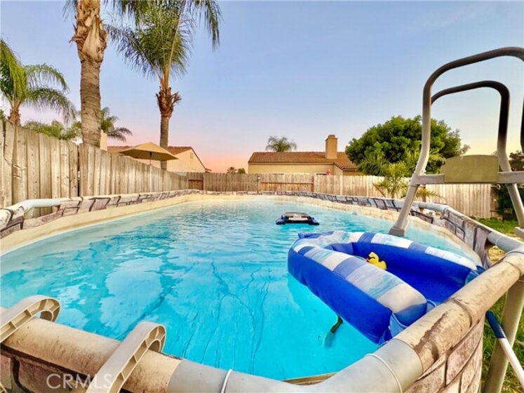 SINGLE LEVEL, CUL-DE-SAC, HUGE YARD, SOLAR & NO HOA! HARD TO FIND VAIL RANCH HOME WITH NO HOA, DOUBLE RV GATE, NEW HVAC SYSTEM AND IN ONE OF BEST AWARD WINNING SCHOOL DISTRICTS IN THE AREA! High vaulted ceilings & hard surface flooring throughout, along with a cozy fireplace (currently wood burning, gas connected) & front covered patio! New doubled paned energy efficient windows let in the natural light abounding in this home! EV Charging in Garage & Solar lease is only 160.00 a month currently with a credit & 20 PANELS, great savings! Kitchen featuring QUARTZ counters, pantry and stainless steel appliances overlooking your lush backyard! Ceiling fans in all rooms along with WHOLE HOUSE FAN and a fully replaced energy efficient HVAC system! Primary bedroom is en-suite with beautiful wood laminate flooring, slider to back yard, high ceilings, full wall closet and new vanity with quartz counter tops and new low flow toilets. Quiet cul-de-sac location with large grassy backyard, oversized slab patio, Pergola, above ground pool, extra shed, 2 car garage and gorgeous hot air balloon sunsets showcasing the beautiful Temecula Valley! Live in the heart of South Temecula, walking distance to Vail Ranch Farmers Market, stores, shopping, golfing, parks, some of the best restaurants & schools! Just minutes from Temecula Wine Country, Red Hawk Golf Course, Pechanga Casino & Old Towne Temecula, this is a superior location!