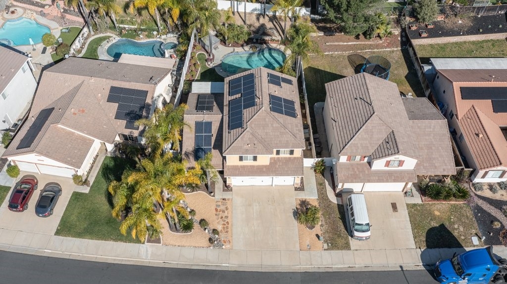 Absolutely stunning 4 bedroom 2.5 bath pool home with a 3 car garage. The details in this house are eye catching. Beautiful luxury vinyl plank flooring and upgraded baseboards throughout the main floor. The kitchen boasts shaker cabinets, pendant lights, a large pantry and granite counters. The primary bathroom was remodeled and has a stand alone tub. 4th bedroom/office has built in cabinets. The office is open no door to it. Could be closed off if desire but shows on title as 4th bedroom. Cased windows. Vinyl fencing around the whole yard. The back yard has a beautiful pool and above ground hot tub. Lattice covered patio with space for seating. Quiet cool whole house fan. There is a solar lease that will need to be assumed. There is no HOA. In the award winning Temecula Valley Unified School District. Minutes from shopping, Pechanga and freeway access. View of Mount Palomar. Low tax rate.