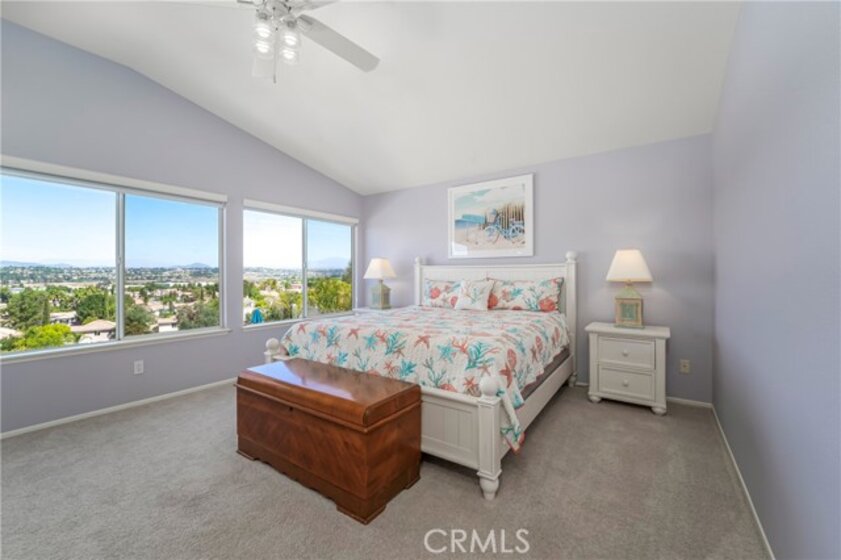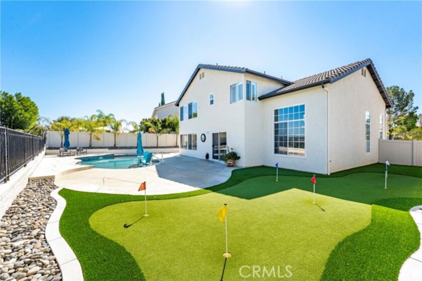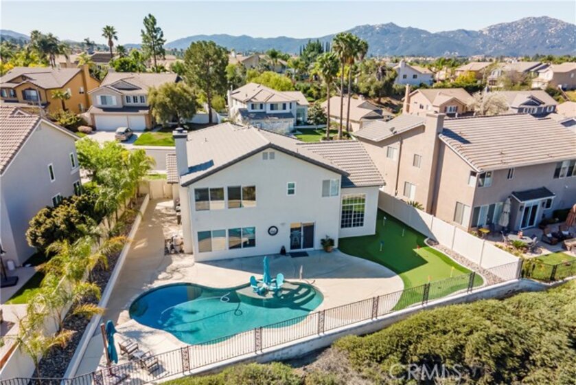Perched high above Vail Ranch Park, this exceptional pool home offers one of Temecula’s most sought-after panoramic “forever” views—with no rooftop obstructions and no noisy streets behind. Both levels of the home and the entire backyard enjoy sweeping vistas of the valley, city lights, rolling hills, and iconic peaks including Mount San Jacinto, San Gorgonio Mountain, Mount Baldy, and the San Bernardino Mountains, plus hot air balloons and snow-capped mountains in winter. The private backyard is an entertainer’s dream featuring a completely remodeled pebble-finish heated pool with Baja shelf, expansive patio, and a 6-hole putting green. Inside offers an open floorplan with gracious rooms, soaring ceilings, 4 bedrooms plus optional 5th/bonus room, 3 baths, including a main-floor bedroom and bath, primary suite has an enormous walk-in closet, dual sinks, water closet, separate shower and soaking tub with dreamy views and a 3-car direct-access garage with storage racks. Extensively upgraded within the past 4.5 years: professional interior/exterior paint, LVP flooring, luxurious carpet, baseboards, custom window coverings, shutters, LED lighting, remote control ceiling fans, refreshed cabinetry with new paint & hardware, and more. Additional highlights include vinyl fencing, front courtyard with pavers and stucco wall, new landscape, new pool heater, newer water heater with recirculating pump, and 220V prewire for future spa. Quiet location near Redhawk Golf Club, Butterfield Ranch Shopping Center, and top-rated Temecula Valley schools including Great Oak High. A rare opportunity to own a truly unobstructed view property with NO HOA, low property tax rate and NO Mello-Roos.