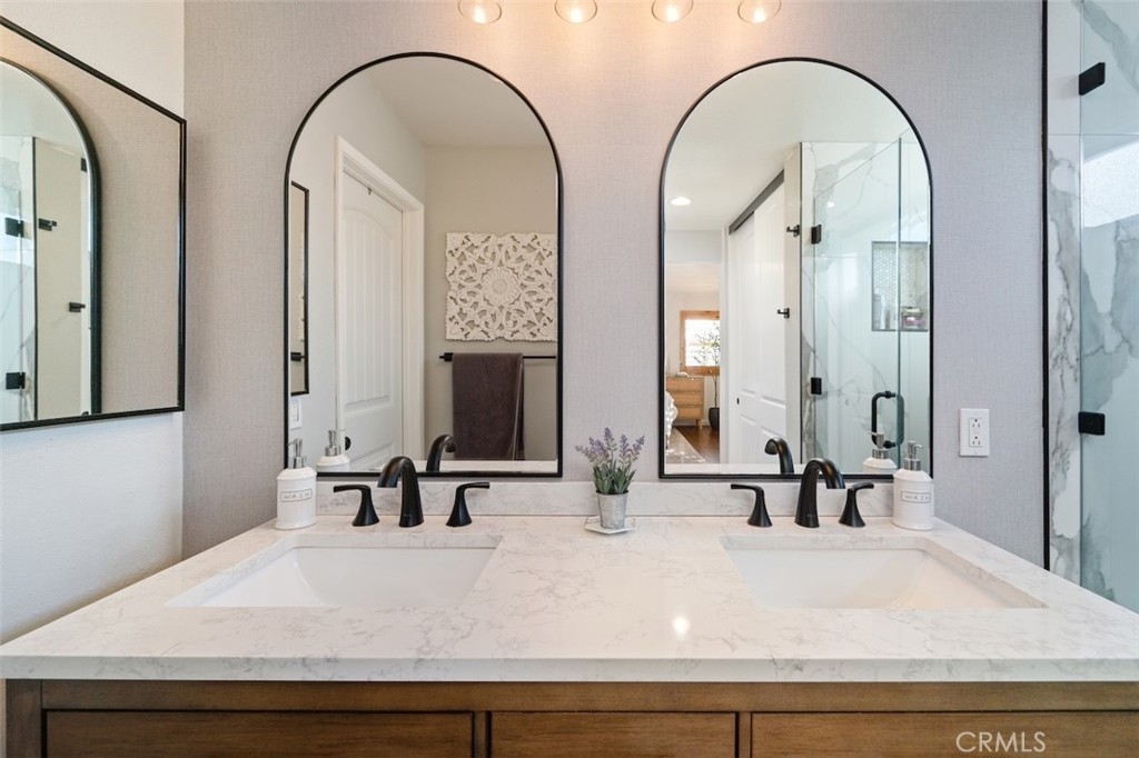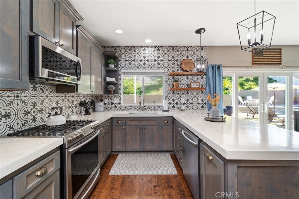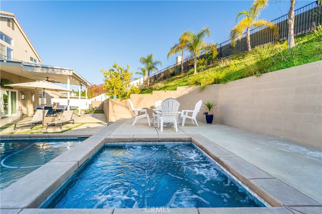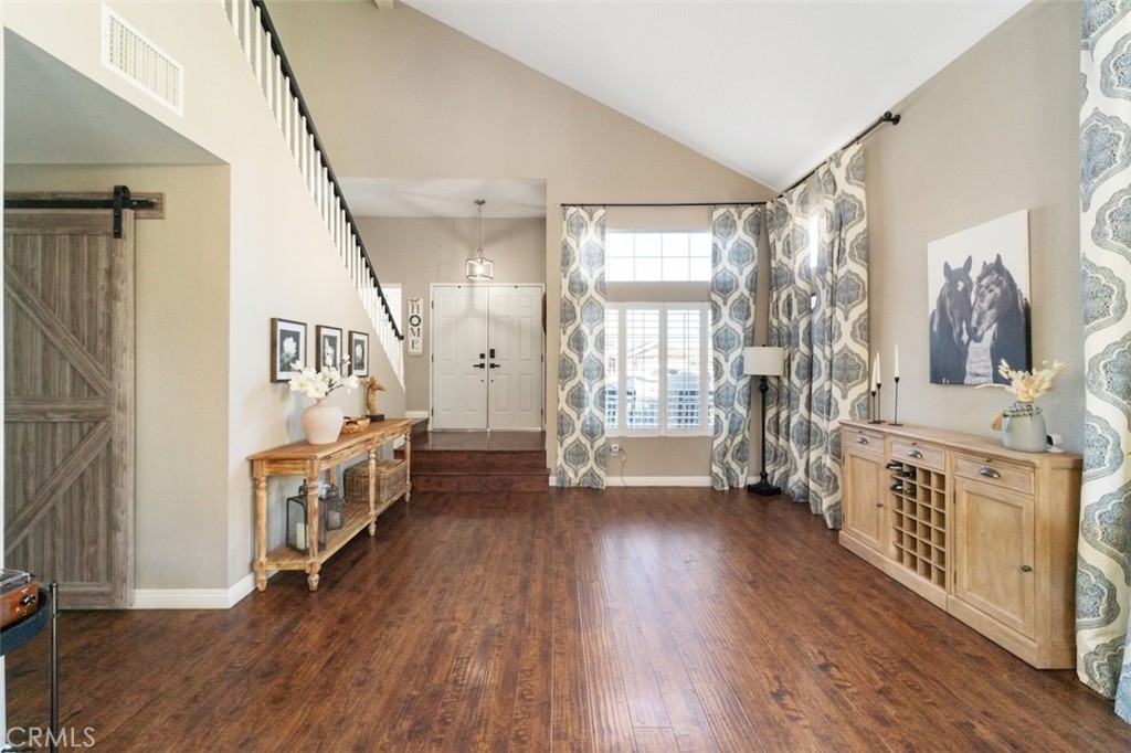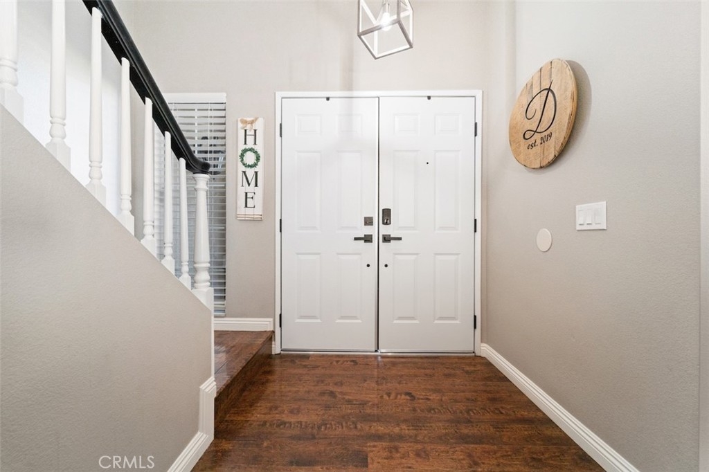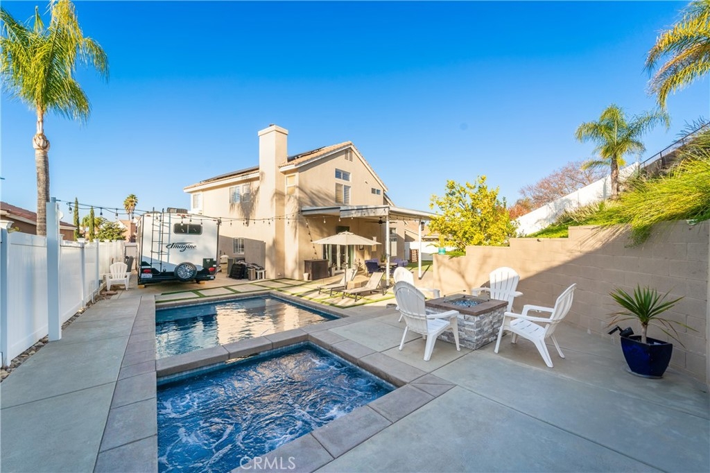 POOL | SPA | SOLAR | RV PARKING | NO HOA | CUL-DE-SAC | DOWNSTAIRS BEDROOM | NEW WATER HEATER | WHOLE HOUSE WATER FILTER | You have A R R I V E D!! Nestled in a peaceful cul-de-sac, this beautifully updated 2-story home offers 4 bedrooms, 3 bathrooms, and a backyard retreat perfect for entertaining. As you enter, you’ll be welcomed by a formal living and dining area with hardwood flooring and soaring high ceilings, creating an open and airy ambiance. The upgraded kitchen features concrete acrylic countertops, a stylish backsplash, and modern cabinetry. Flowing seamlessly into the family room with a cozy fireplace, the space is perfect for gatherings, with double sliding glass doors offering a clear view of the backyard. A downstairs bedroom and remodeled bathroom provide convenience for guests or multi-generational living. The bathroom boasts a new vanity, upgraded flooring, and a walk-in shower conversion. The laundry room, with charming custom barn doors, leads to the attached garage. The two car garage holds plenty of storage, new water heater, a water filter, and epoxy flooring. Upstairs, the primary suite impresses with hardwood flooring, beamed ceilings, and a thoughtfully designed, fully upgraded en-suite bathroom. Two additional bedrooms feature vinyl wood flooring and upgraded closets, and a second bathroom completes the upper level. Step outside to your private oasis! The backyard features a sparkling pool and spa, a wood patio cover, a dedicated dog run, RV parking with hookups, fruit trees, turf, and a drip irrigation system. Additional features include leased solar for energy savings and proximity to shopping, award-winning schools, Pechanga Resort Casino, and easy access to the 15 Freeway. This is Temecula living at its finest—schedule your showing today!