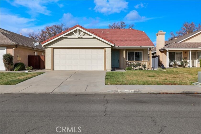 Great opportunity to own this beautiful single story home in South Temecula within the community of Veranda at Bridlevale. First time on the market, wonderfully maintained by original owner. LOW TAXES and low HOA paid quarterly. Perfect for the first time buyer, downsizing, or rental. Exceptionally well located within walking distance or a short 5 min drive to award winning schools, medical offices, restaurants, shops, I-15 freeway and 10 minutes or less to golf courses, Old Town and Wine Country. This popular floor plan with its relaxing front porch features 3 bedrooms and 2 baths, accentuated by vaulted ceilings in an open concept design and abundant windows allowing in loads of natural light. The cooks kitchen offers a large countertop with barstool seating and generous cabinet space. It opens directly to the family room which features a cozy fireplace and direct access to the outdoor patio. The spacious primary suite showcases a high ceiling, roomy walk-in closet and a sliding glass door leading out to the private backyard. The primary bath has a dual sink vanity and a tiled walk-in shower. There are two additional bedrooms that share a guest bathroom with a shower/tub combo. The well maintained and low maintenance backyard has two Alumawood type covered patios and a beautifully planted slope with shady trees behind a privacy wall. No rear neighbors. With concrete walkways on both sides, yard drains and rain gutters you are ready for a wet winter. Invoices from the estate show all upgraded Milgard windows, replaced the heating and air conditioning system (Lennox) with maintenance records. Most recently, vinyl plank flooring, a HVAC flexible duct system, water heater and the ROOF UNDERLAYMENT has been replaced. Don't miss out on this MOVE-IN ready home!