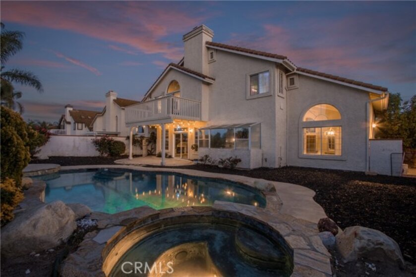 Nestled in the heart of Rancho Vista Estates, Gorgeous Views, Owned Solar, Low Tax, Low HOA and a Beautiful Pool. This exquisite home invites you to indulge in its unparalleled beauty. As you approach, the majestic double doors welcome you into an expansive, light-filled sanctuary adorned with high vaulted ceilings and a stunning grand staircase that commands attention. The rich elegance of the wood floors complements the airy ambiance, creating a harmonious blend of comfort and sophistication.This residence, perfectly positioned on an elevated cul de sac lot, offers not only exquisite interiors but also breathtaking vistas of the city skyline, where, at times, you may catch a glimpse of graceful hot air balloons dancing in the sky. The thoughtfully designed layout encompasses a generously sized bedroom and a full bathroom on the first floor, providing ease and convenience for guests or family. As you ascend to the second floor, you will discover four spacious bedrooms, each a retreat of its own. The primary suite is a veritable oasis, boasting sweeping views from its private balcony and the warmth of a cozy fireplace, creating a perfect setting for quiet evenings or lively gatherings. Enjoy low energy bills with owned solar panels and whole house fan. Low Tax and Low HOA. *There is an Assumable VA Loan at 3.25% interest rate; only with a substitution of entitlement. *Some Images have been virtually staged to showcase the potential of the home*