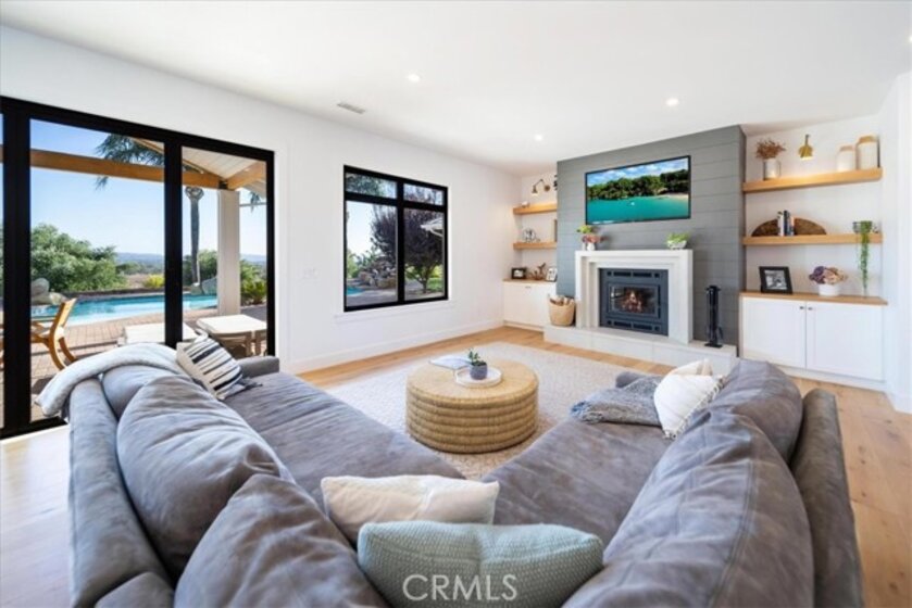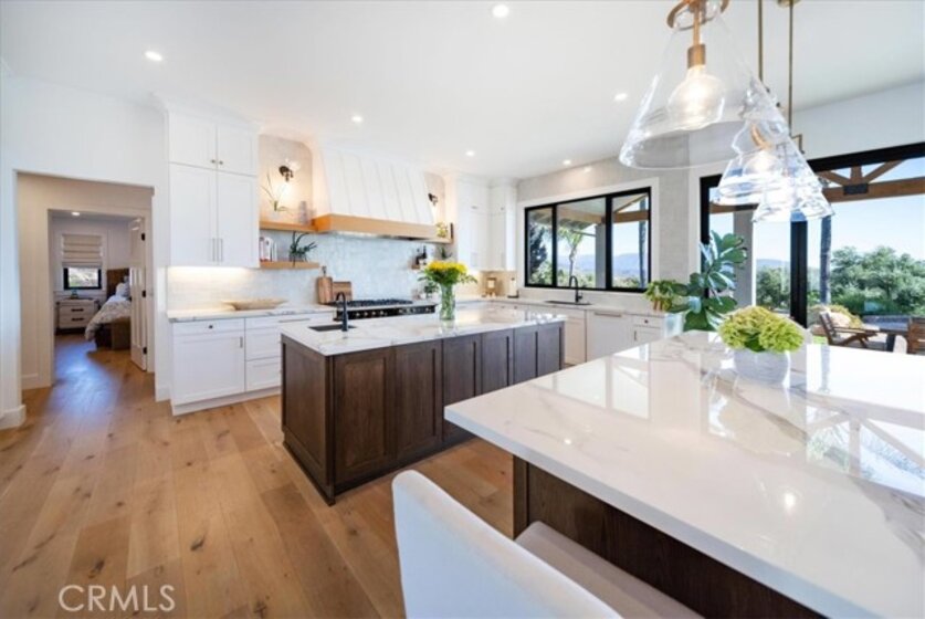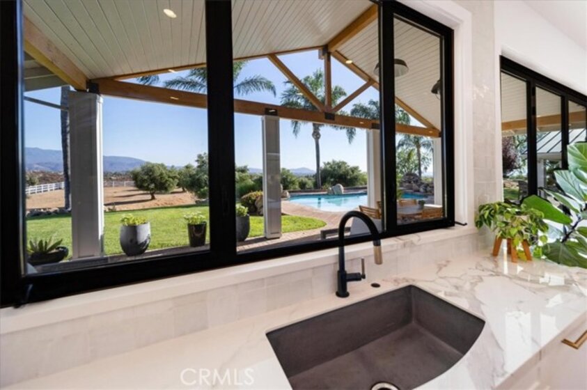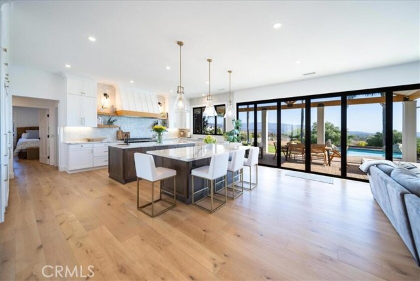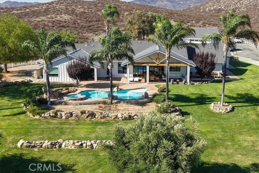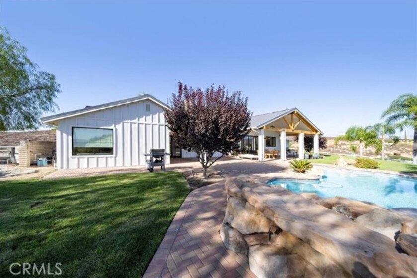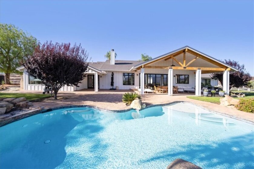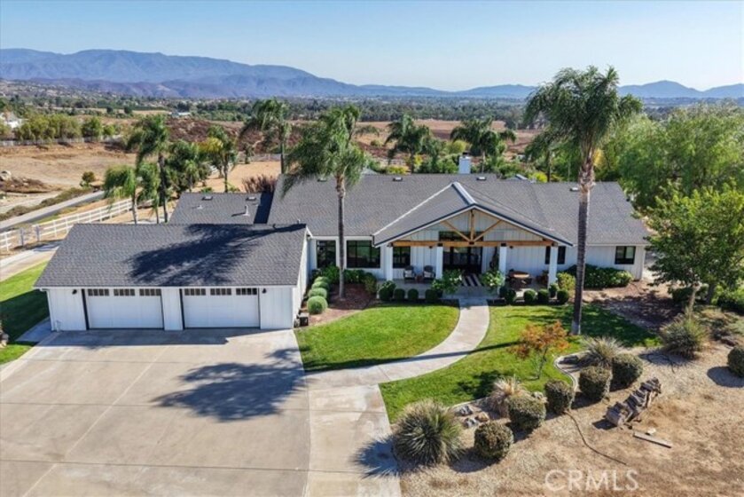 Welcome to 36644 Summitville Street, a stunning single-story estate in the heart of Temecula’s wine country. This beautifully remodeled home offers 3,317 square feet of living space with 4 bedrooms, 3.5 bathrooms, and soaring 10-foot ceilings throughout the main areas. Designed with both comfort and function in mind, the open layout is enhanced by custom high-end glasswork, natural wood beam details, and seamless indoor-outdoor living. At the heart of this remarkable home is a kitchen designed to impress both in style and function. Featuring a stunning Lacanche range as its centerpiece, the space is complemented by custom quartz countertops and dual islands that create the perfect blend of beauty and practicality. A Nanawall collapsible sliding door ads an amazing indoor/outdoor feel. Wide plank, wire-brushed wood flooring brings warmth and character, while a seamlessly integrated hidden refrigerator maintains a clean and refined aesthetic. Every detail has been thoughtfully curated, making this kitchen a true showpiece for both everyday living and entertaining. Set on nearly 5 fully fenced acres, the property provides exceptional amenities and endless potential. A sparkling pool and spa are complemented by a covered patio and private master retreat opening directly to the backyard. Car collectors and hobbyists will appreciate the impressive 1,550 sq ft detached garage with oversized roll-up doors, along with a 2,200 sq ft barn offering space for up to 8 vehicles plus a central pull-through. Both structures feature approximately 12-foot doors and connect seamlessly to the residence by a paved drive. The home was thoughtfully renovated in 2020, with every detail carefully crafted. Everything new including all windows and doors. Additional features include paid for solar (with NEW Tesla inverters,) gated entry, an attached oversized 2 car garage, modern farmhouse architecture, and flat, developable areas ideal for expansion, equestrian use, or creating your dream vineyard. Surrounded by well-maintained neighboring estates, this property combines privacy, functionality, and prestige in one of Temecula’s most desirable settings. Extra Bonus - 220 plug for EV charging in the garage! This is a rare opportunity to own a versatile wine country retreat with unmatched garage and barn facilities, just minutes from world-class wineries, dining, and shopping. Book your private tour today.