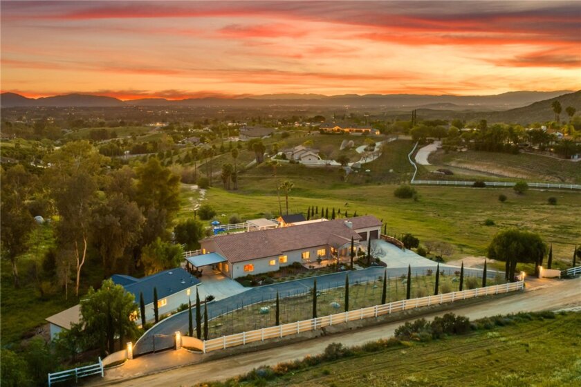 Welcome to a private wine country retreat where beauty, tranquility, and timeless living come together on just over five gated acres in the heart of Temecula’s celebrated vineyard community. Surrounded by sweeping views and open skies, this extraordinary luxury estate invites you to slow down, savor the moment, and live inspired every day. The main residence offers 5 bedrooms and 4 bathrooms, thoughtfully designed with warm engineered wood flooring, classic shaker cabinetry, and elegant quartz countertops that create a refined yet welcoming atmosphere. Sunlit interiors open effortlessly to expansive outdoor living spaces, blending comfort with the natural beauty that defines wine country living. Outside, the estate transforms into a personal resort. A sparkling solar heated pool, outdoor kitchen with built in barbeque and pizza oven, bocce ball court, and playground create endless opportunities for gathering, celebration, and relaxation. A detached office or pool house provides flexibility for work or creative pursuits, while the private 1-bedroom casita offers a peaceful haven for guests and extended stays. Three flourishing vineyards-Chardonnay, Syrah, Albarino and Sangiovese frame the property, offering both scenic chChardonnay, Syrah, Albarino and Sangiovesearm and the romance of vineyard ownership. Just minutes from Temecula’s renowned wineries, fine dining, and entertainment, the home delivers both seclusion and connection. From pool parties to sunset family dinners, this is where memories are made and ultimately legacies left. ADU sqft 944/2nd Outbuilding 155.94sqft