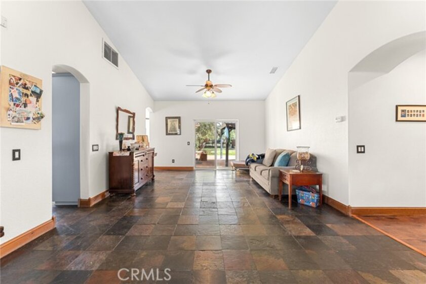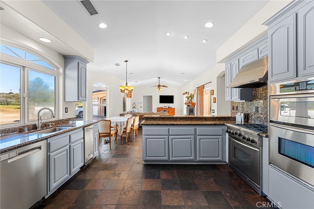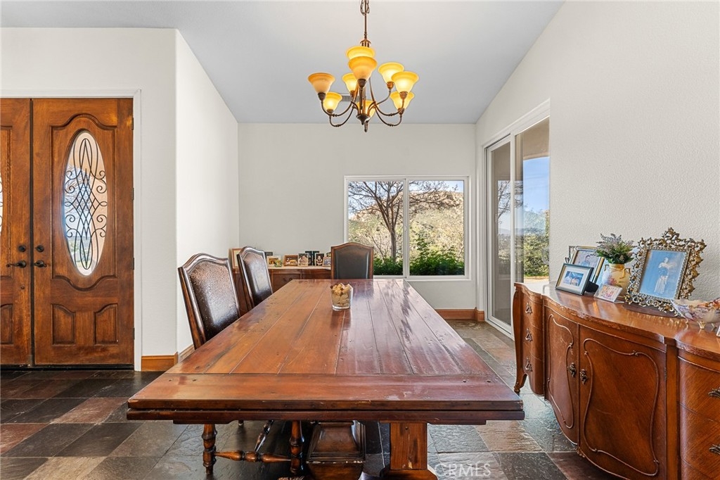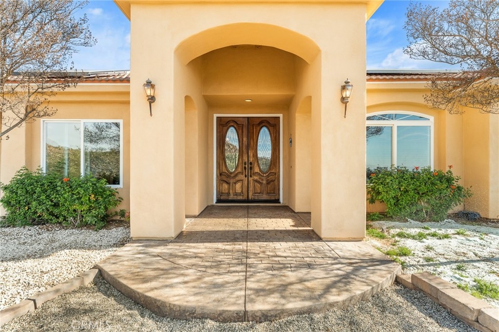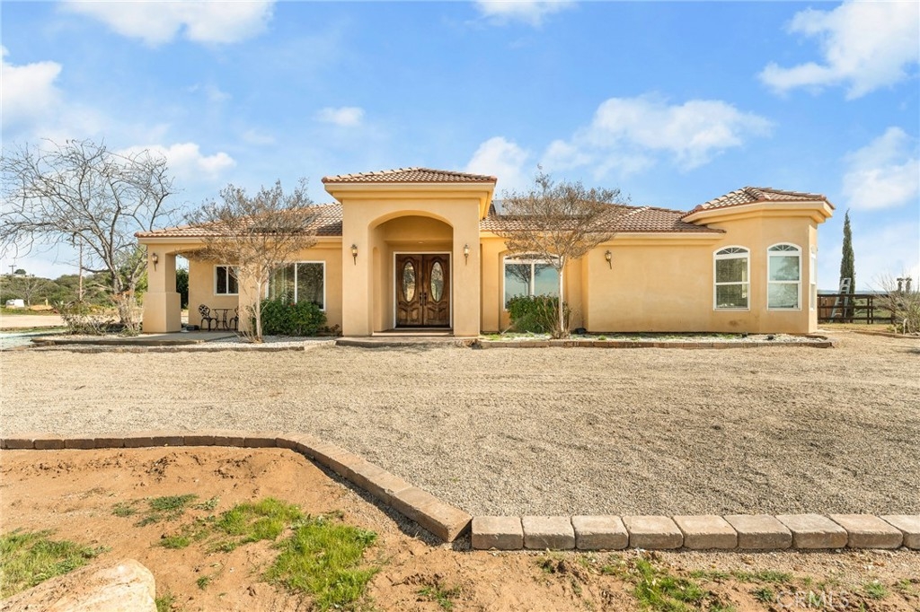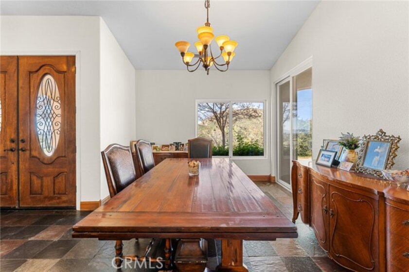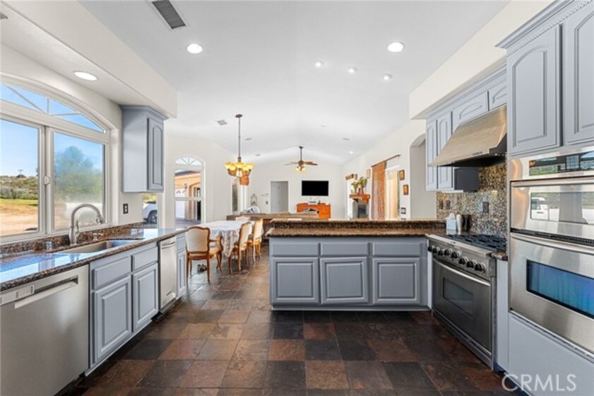 Experience serene country living in Temecula Wine Country at this stunning single-story ranch estate. Nestled within the Oakridge Ranches community, this custom-built home offers privacy, panoramic views, and refined indoor-outdoor living on nearly 10 acres of gently rolling hillside. Constructed to be view centric, each window and door is a portal to breathtaking valley and hillside views. Spanning 2,844 square feet, this thoughtfully designed residence features 4 spacious bedrooms and 2.5 bathrooms, with a functional single-level layout that unites the common areas and provides privacy for the bedroom wing. The kitchen is well appointed with stainless steel appliances, commercial range, double ovens, granite counter tops, and breakfast bar seating. Designed for unforgettable gatherings, the backyard is a true showpiece. The pool and attached pavilion are masterfully integrated into the natural hillside, creating an opulent resort-style experience while preserving the unobstructed panoramic views. At over 40’ long, the pool offers dual baja steps, expansive stained decking, and a raised spa with a cascading waterfall. A swim up bar is adjacent to the attached pavilion. Soaring ceilings with exposed roughhewn lumber shade the outdoor kitchen, fireplace, bar, and entertainment areas. This outstanding build out can accommodate nearly any gathering or simply serve as a restful retreat to enjoy the sunset from. A fire pit lounge and multiple outdoor seating areas complete this private retreat. Additional highlights include a 4-car attached garage with ample space for toys and storage, private well, solar power system, room for horses, and exceptional privacy. Blending natural terrain, a stately residence, staggering views, and an exceptional backyard pool build, this is one extraordinary offering.