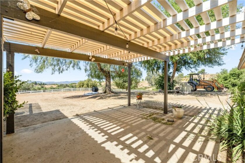 Welcome to a rare prime land opportunity in the heart of Temecula Wine Country, offering just under 5 acres of usable land with two separate fenced areas and breathtaking panoramic views. This single-story ranch-style home features 3 bedrooms, 2 bathrooms, and 1,829 square feet of living space, perfectly blending rural charm with everyday comfort. As you arrive, you’re greeted by an expansive property that immediately sets the tone for a true ranch lifestyle, complete with vinyl fencing and private gated access. Inside, the home offers a bright and open great room layout, highlighted by fresh interior paint and a beautifully remodeled kitchen that serves as the centerpiece for both daily living and entertaining. Designed with equestrian enthusiasts in mind, the property includes a variety of horse amenities such as a barn, tack room, horse stables, and an extra-large riding arena, along with easy trailer access and a second gated entry for added convenience. There is ample space for RVs, trailers, and all your recreational equipment. The outdoor space is equally impressive, offering plenty of room for gatherings, relaxation, and enjoying the surrounding natural beauty. Take in stunning views of the Temecula Valley, with city lights in the distance, and enjoy the unique experience of watching hot air balloons rise in the morning and sunsets paint the sky in the evening. Additional features include a 3-car garage and a spacious indoor laundry room. Ideally located just around the corner from the renowned De Portola Wine Trail, with close proximity to local wineries, Vail Lake, and Lake Skinner, this property offers the perfect balance of privacy, lifestyle, and convenience. Whether you're seeking a horse property, a private retreat, or a place to create your dream estate, this Temecula gem delivers endless possibilities.