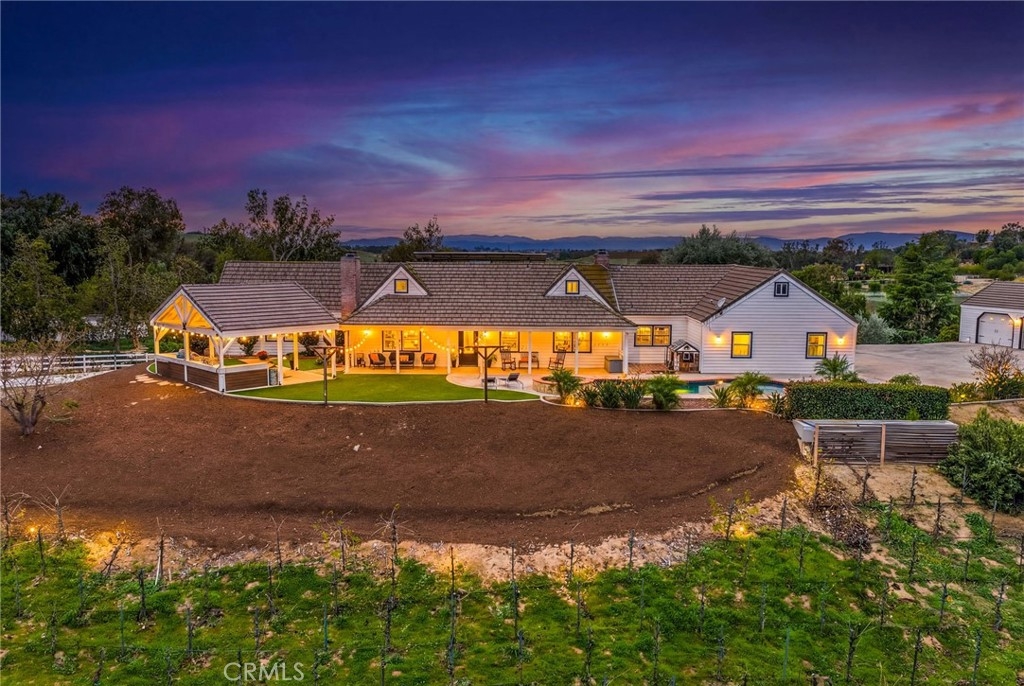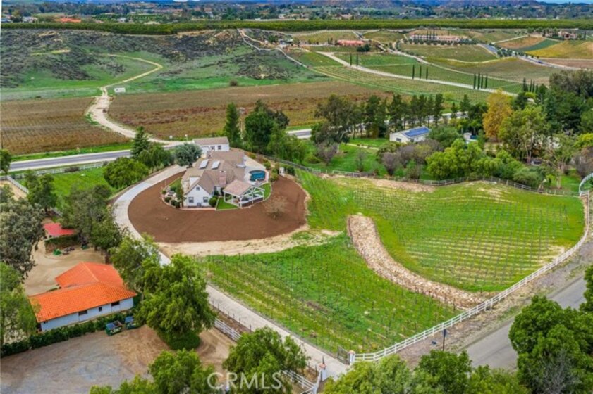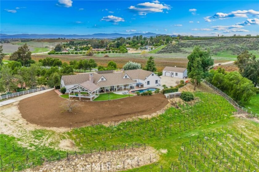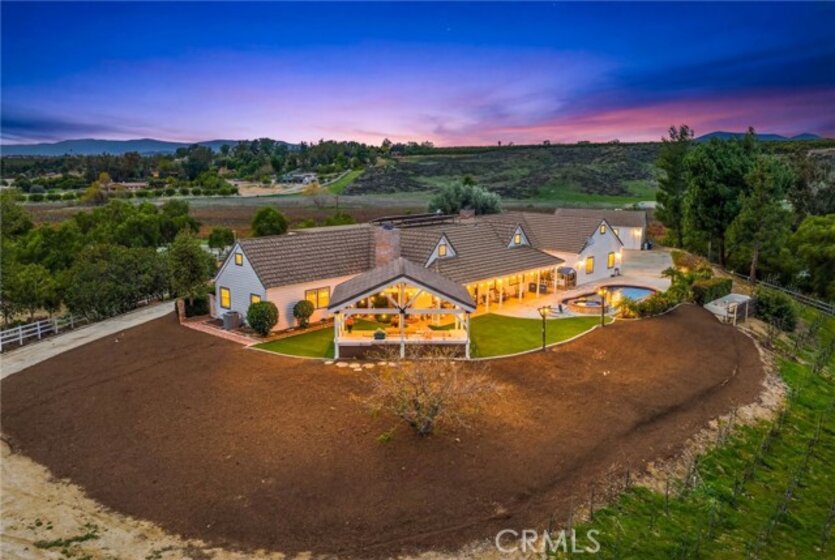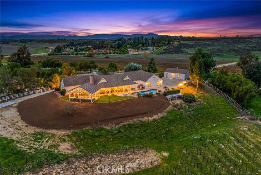 SPECTACULAR MODERN FARMHOUSE ESTATE IN GLENOAK HILLS! Perched on an elevated 3.01-acre lot with breathtaking views, this masterfully upgraded residence at 40333 Chaparral Drive offers the ultimate Wine Country experience. The main home features 4 spacious bedrooms, 3 bathrooms, and a versatile office/loft configuration. The downstairs Master Suite provides luxury and convenience with a spa-like bath and walk-in closet. Inside, you will find hardwood flooring, a stunning wood staircase, and a remodeled kitchen with GE Cafe appliances. The open-concept layout includes a large living room with a cozy fireplace and a separate formal dining room. The grounds are a private resort featuring a sparkling pool and spa, an expansive outdoor kitchen, artificial turf, and a custom putting green. A separate, fully finished detached guest house offers additional living space or rental potential. The property is secured by a gated entrance and features a long paved driveway leading to an oversized 4-car garage with ample storage. BONUS: The house solar system is FULLY PAID FOR. Low HOA and scenic GlenOak Hills community amenities (tennis, clubhouse, trails). From the panoramic valley views to the meticulously manicured grounds, this GlenOak Hills masterpiece is ready to be your private sanctuary. Properties of this caliber—offering paid solar, a guest house, and an oversized 4-car garage—are a rare find in Temecula. Don’t miss your opportunity to own the dream—schedule your tour of this Modern Farmhouse today!