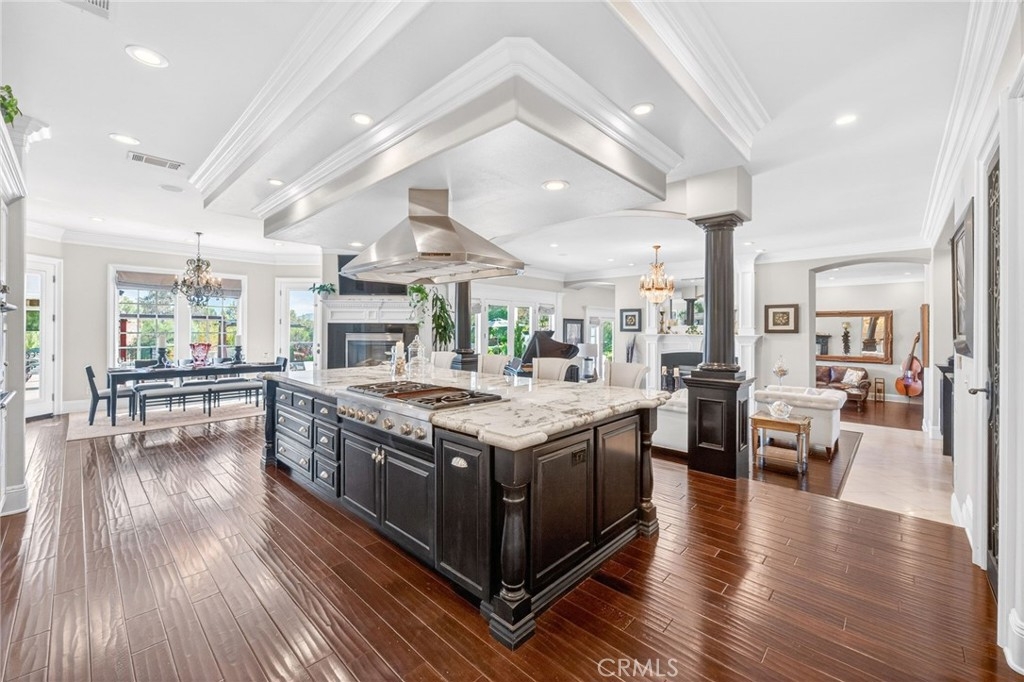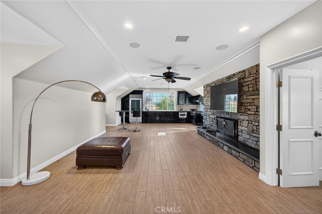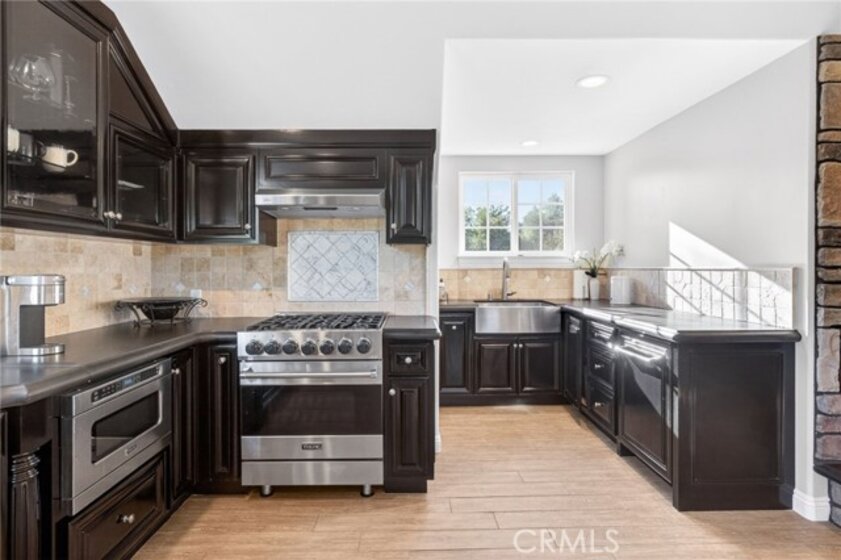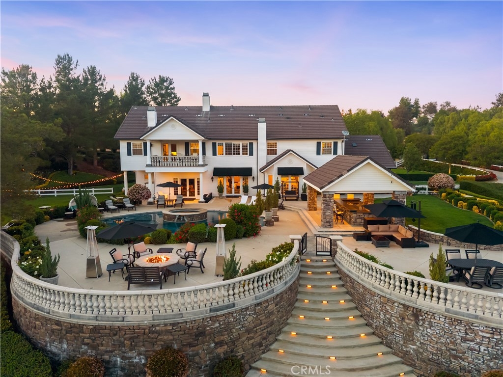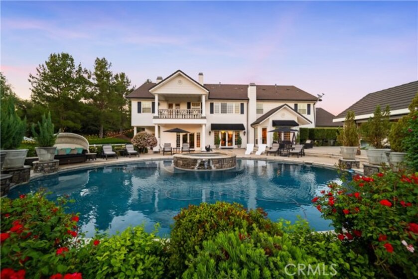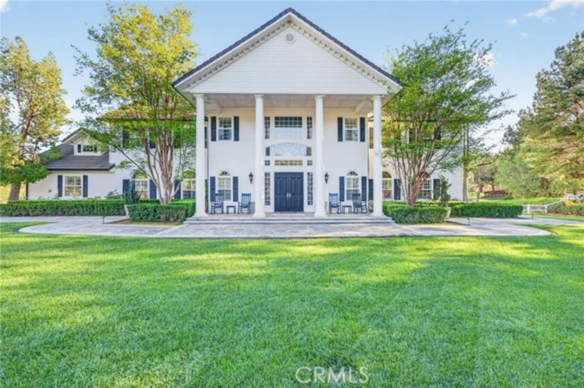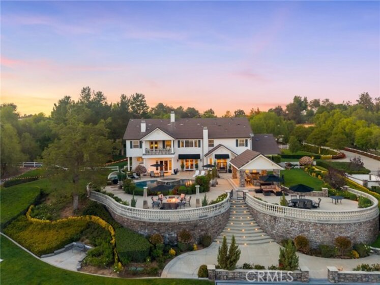 Experience refined country living in this extraordinary luxury estate in Temecula Wine Country, offering approximately 6,887 square feet of thoughtfully crafted living space on five usable acres. The estate features a main home and a guest home with the main home having six spacious bedrooms, including two on the main level, and five and a half bathrooms. The oversized kitchen impresses with a striking large granite island, Thermador double ovens, and a Sub-Zero refrigerator. Hardwood flooring enhances the main living areas, while a carpeted staircase leads to the second level, where hardwood floors continue alongside four additional bedrooms, three bathrooms, a laundry room, and a bonus movie room. Step outside to a true backyard retreat, complete with a resort-style pool and spa, outdoor kitchen, and beautifully landscaped patio. Dramatic, castle-inspired stairways lead to a basketball court, detached garage and pasture with barn and arena. A private ADU guest home sits above the garage, offering a versatile space ideal for guests, extended family, or potential rental income, with convenient RV parking nearby. The expansive, flat acreage also provides ample opportunity for equestrian use or additional outdoor amenities. This exceptional property offers a rare blend of luxury, privacy, and endless potential in one of Southern California’s most desirable settings. For added convenience, RV parking with a dedicated plug is located adjacent to the ADU. This 6 bedroom home is located in Country Road Estates which consists of 128 - 5 acre parcels just on the edge of Temecula Wine Country. The location is super convenient to town and centrally located to some of the best schools Temecula has to offer. Neighboring homes features large acreages, groves and vineyards. Just minutes from highly desirable Linfield Private School and Saint Jeanne De Lestonnac.