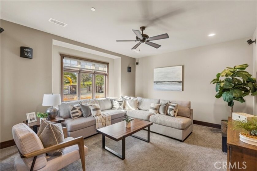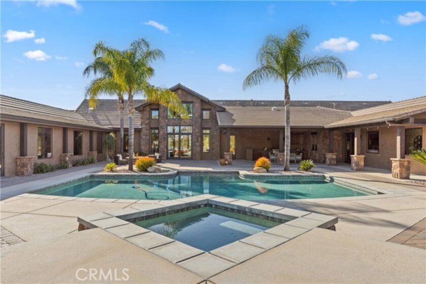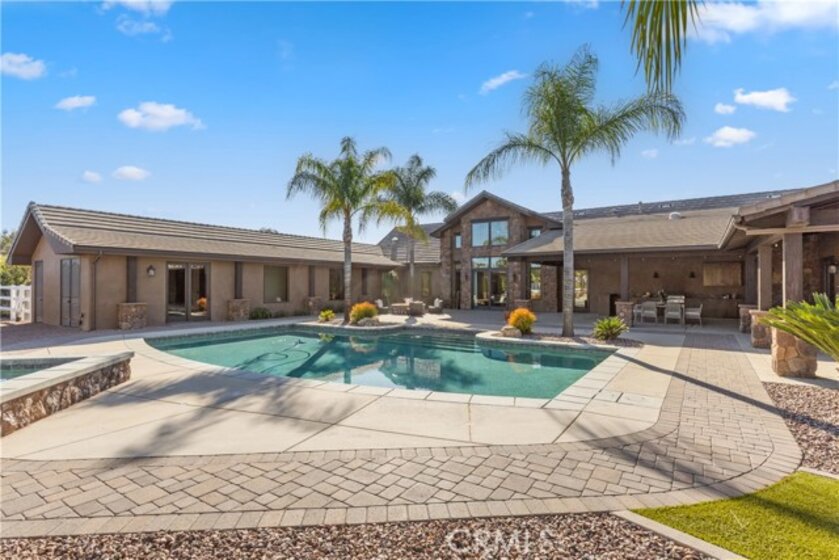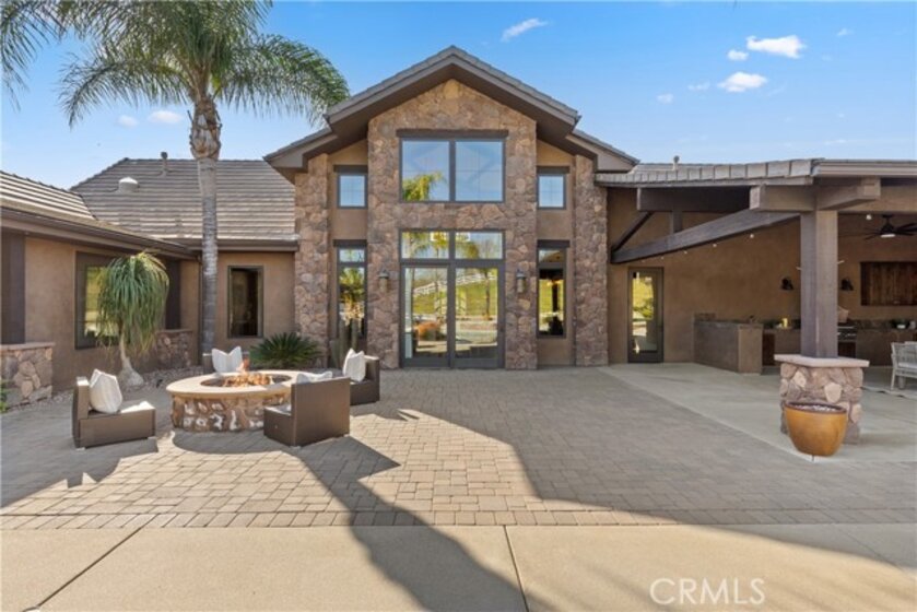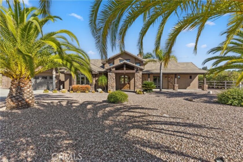 Premier Wine Country Estate with Vineyard & Multi-Generational Design. This exceptional Temecula estate offers 6 bedrooms, 5 bathrooms, and approximately 5,031 square feet of thoughtfully designed living space, perfectly suited for multi-generational living or flexible use. The home is intelligently divided into two distinct wings: the main wing features four oversized bedrooms along with a theater room or office, while the secondary wing functions as a private living suite complete with two bedrooms, a full kitchen, dining and living areas, a shared bath, and direct garage access—ideal for extended family, guests, or potential rental use. The gourmet kitchen showcases a Wolf range, Sub-Zero refrigerator, wine fridge, and rich custom wood cabinetry, complemented by durable commercial-grade wood plank flooring and soaring two-story ceilings that flood the home with natural light. Nearly every room overlooks the heart of the property—an entertainer’s dream featuring a saltwater PebbleTec pool, putting green, gas fire pit, full outdoor kitchen, and approximately three-quarters of an acre of income-producing vineyard. Additional highlights include a luxury lighted chicken coop, raised garden beds, powered storage shed, oversized three-car garage with extensive storage, and a fully finished attic large enough for a future game or bonus room. Fully gated with RV parking and hookups, low-maintenance landscaping, and the rare advantage of city water, natural gas, and sewer—with no HOA—this one-of-a-kind property is just minutes from Temecula Wine Country, shopping, and freeway access. A truly special offering that blends luxury, functionality, and lifestyle.